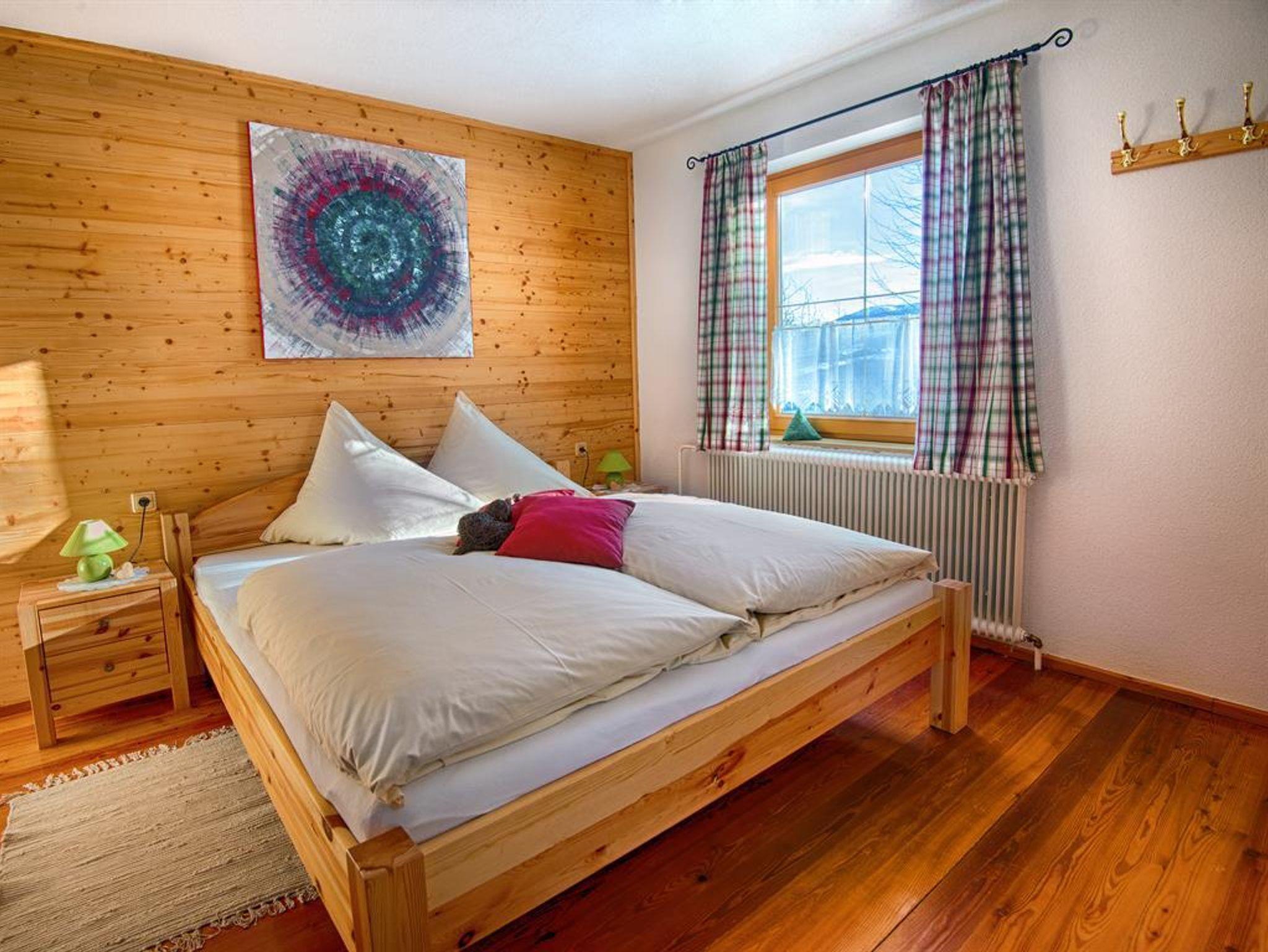 Zwei behagliche Schlafzimmer mit direktem Balkonzugang. Vollholzmöbel, Allergiker geeignet.
