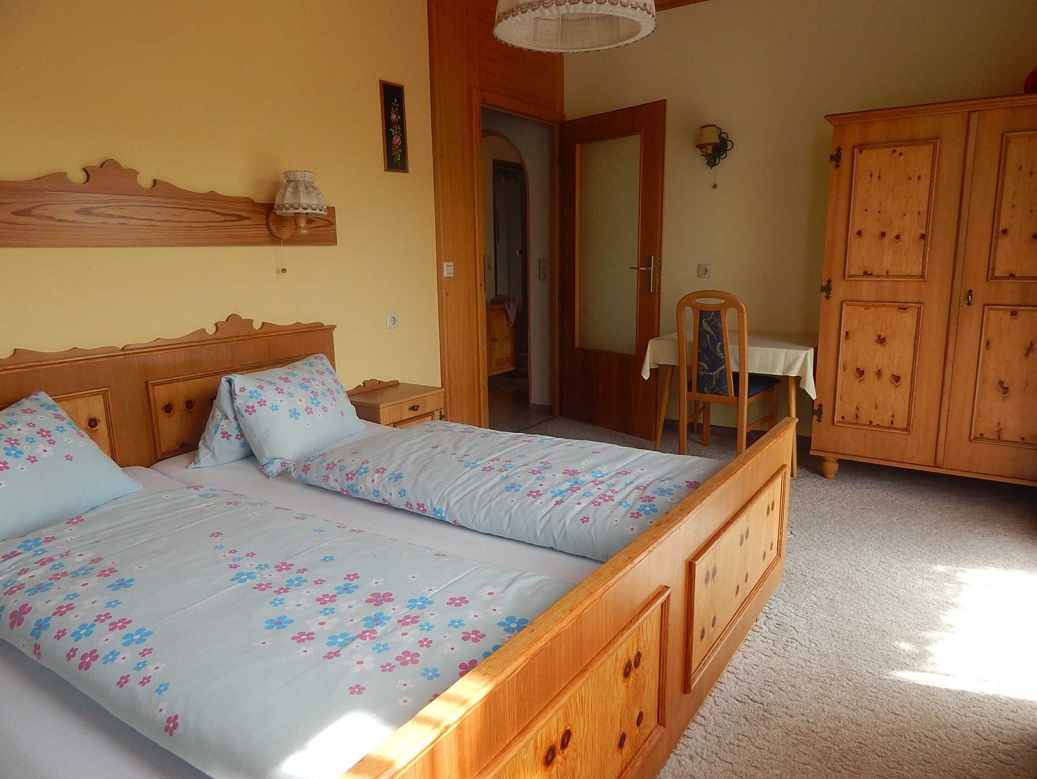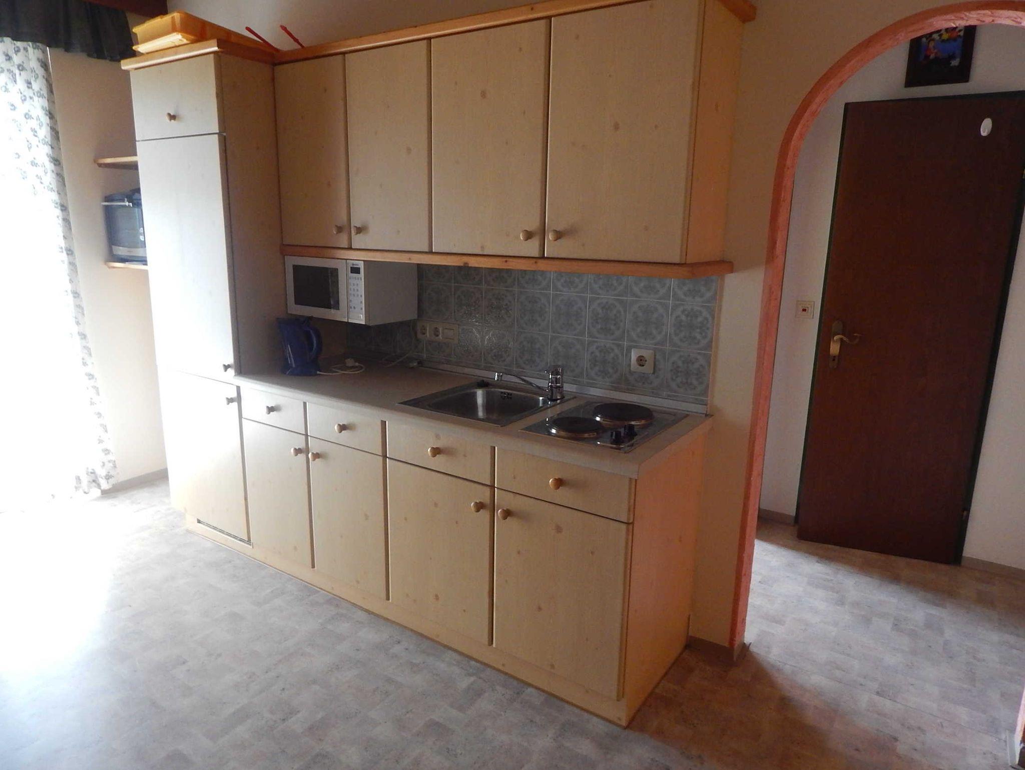 Die Ferienwohnung für 2 Personen besteht aus einem Doppelzimmer mit Balkon, Dusche/WC und einer gemütlichen Wohnküche mit Balkon. In der Küche befindet sich eine ausziehbare Couch für eine 3 Person.