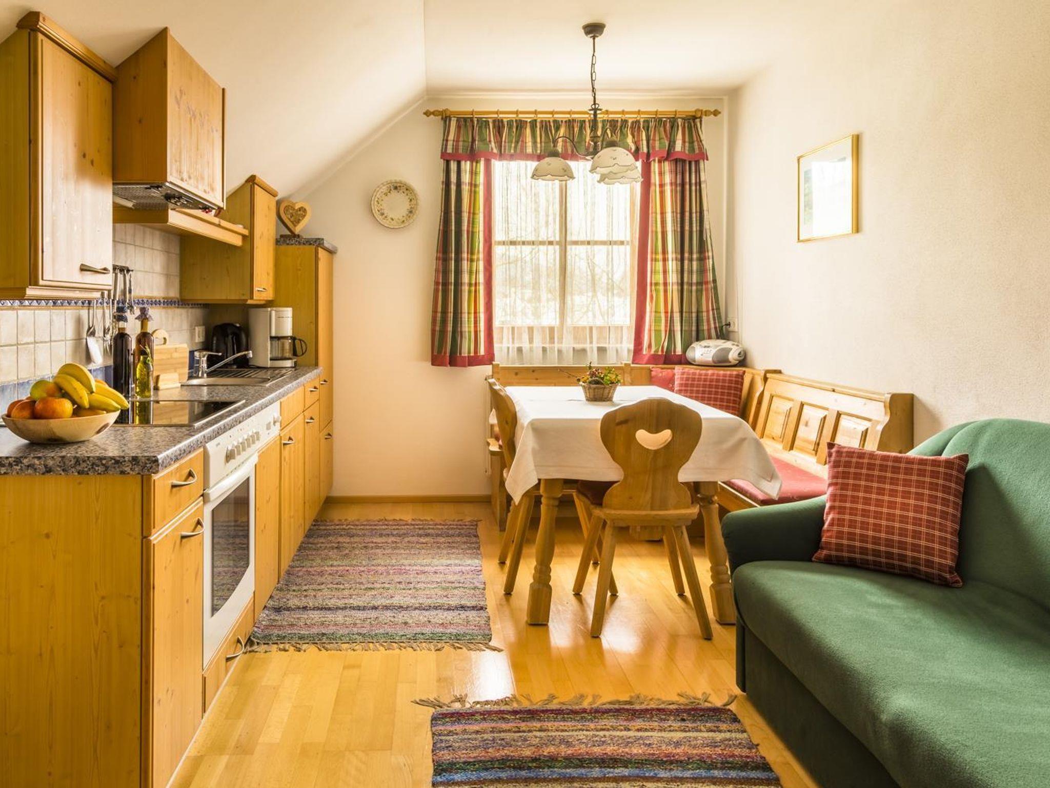 Dieses Apartment ist für 2 Pers. mit gemütlicher Wohnküche mit Sitzecke und allen E-Geräten,ein separates Schlafzimmer mit D/WC, Internetzugang, Kabel-TV,Allergikerausstattung, Parkettböden ,Radio,herrliche Aussicht, ruhig gelegen