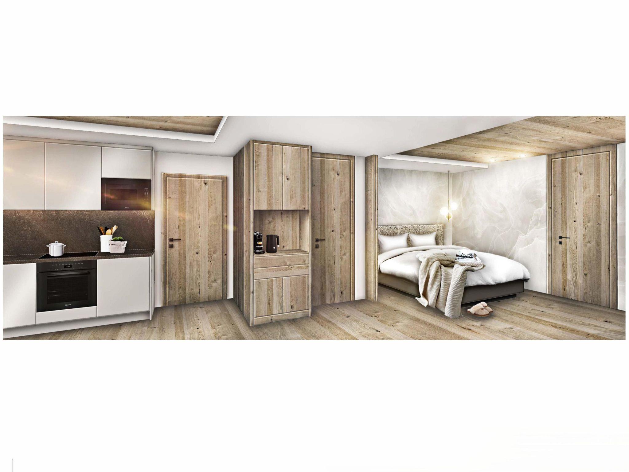 - Schlafzimmer mit Doppelbett für erholsame Träume (kann mit einer Schiebetüre abgetrennt werden, separate Betten sind möglich)