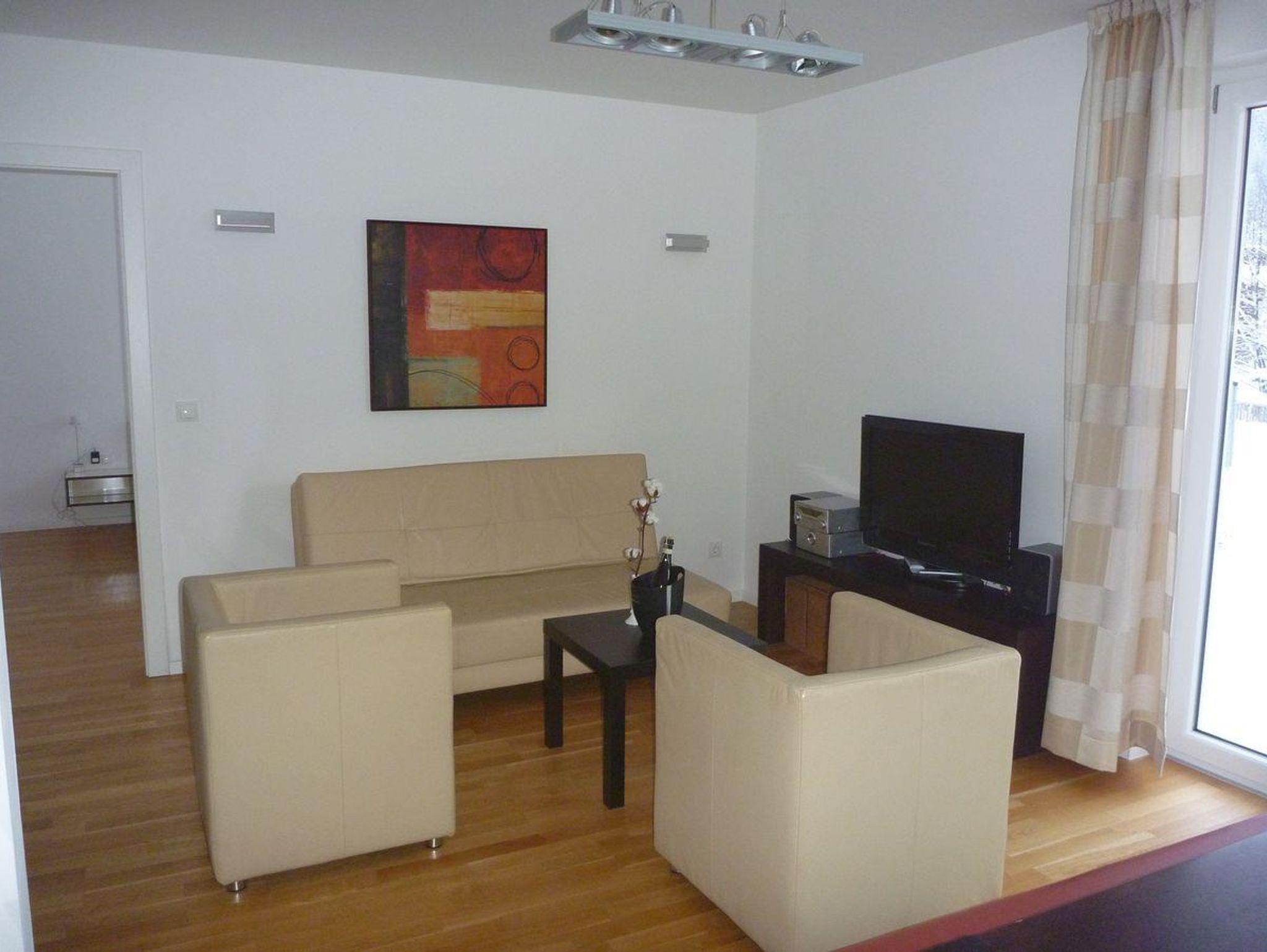 Dich erwartet ein Apartment mit 2 Schlafzimmern, Wohnküche und 2 Badezimmern.