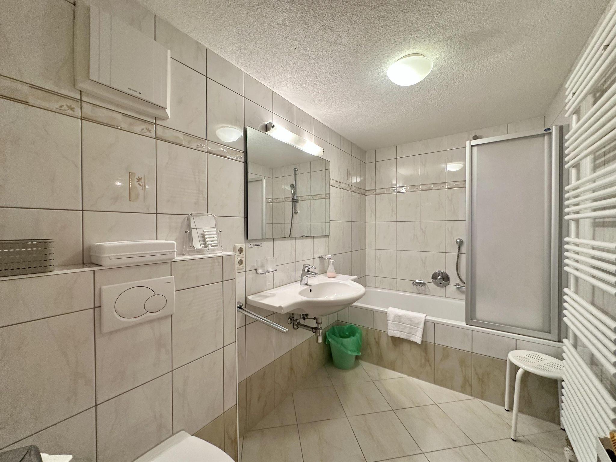 Ausgestattet mit 2 Doppelzimmern mit Doppelbett. Die komplett eingerichteten Wohnküche (Kaffeemaschine, Wasserkocher, Geschirrspülmaschine, Minibackofen, Mikro) mit Sitzgelegenheit für 4 Personen und je ein privates Bad mit einmal Badewanne/WC einmal DU/WC, HD - Flatscreen-TV, Radio, Telefon, Haartrockner und Südbalkon mit grandioser Aussicht auf die Bergwelt. Auch hier sehen Sie den Wintersportlern zu!