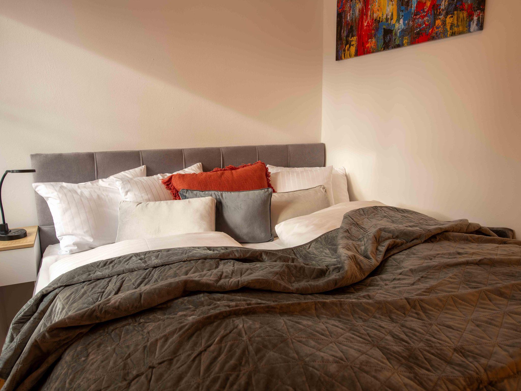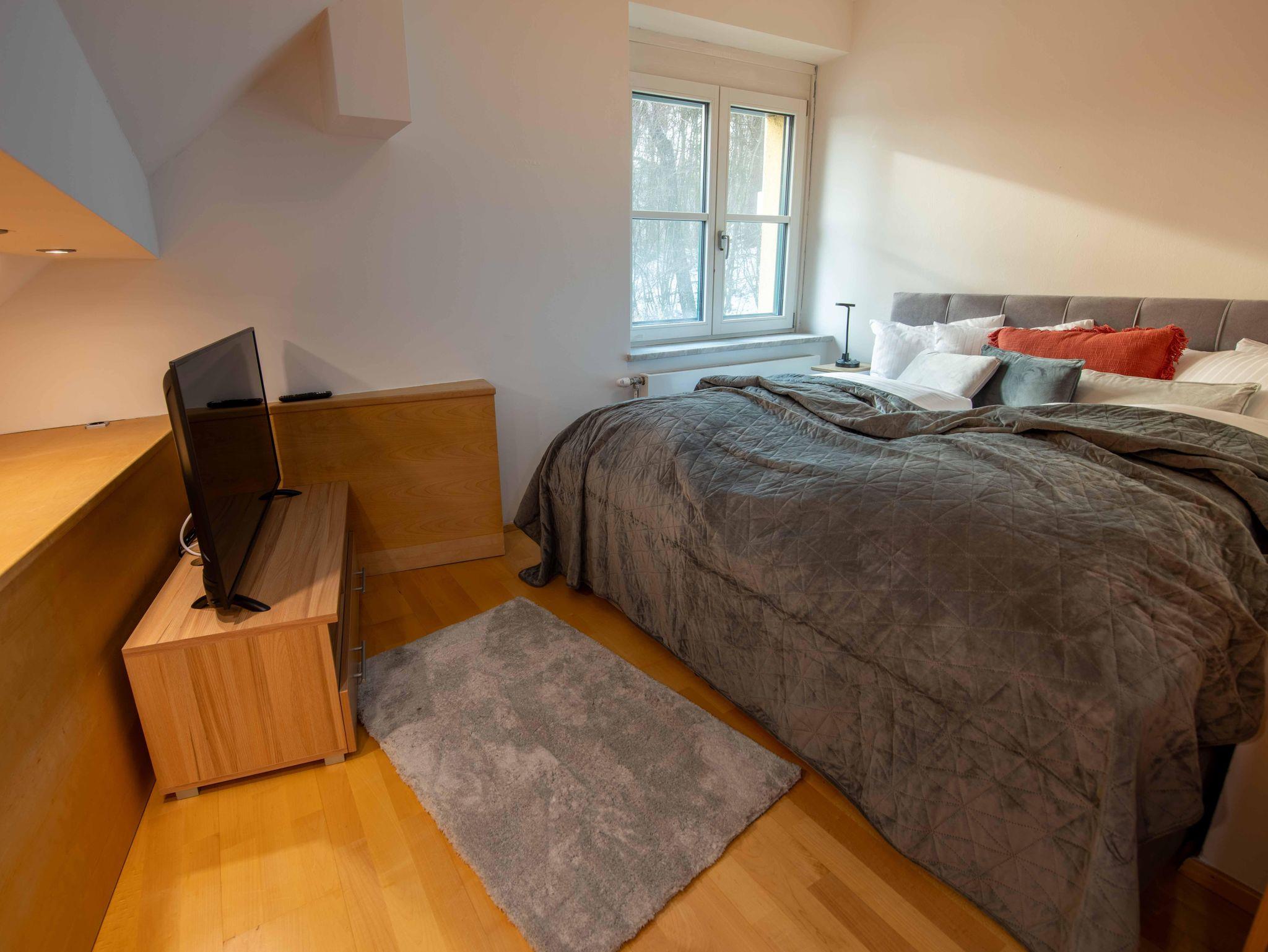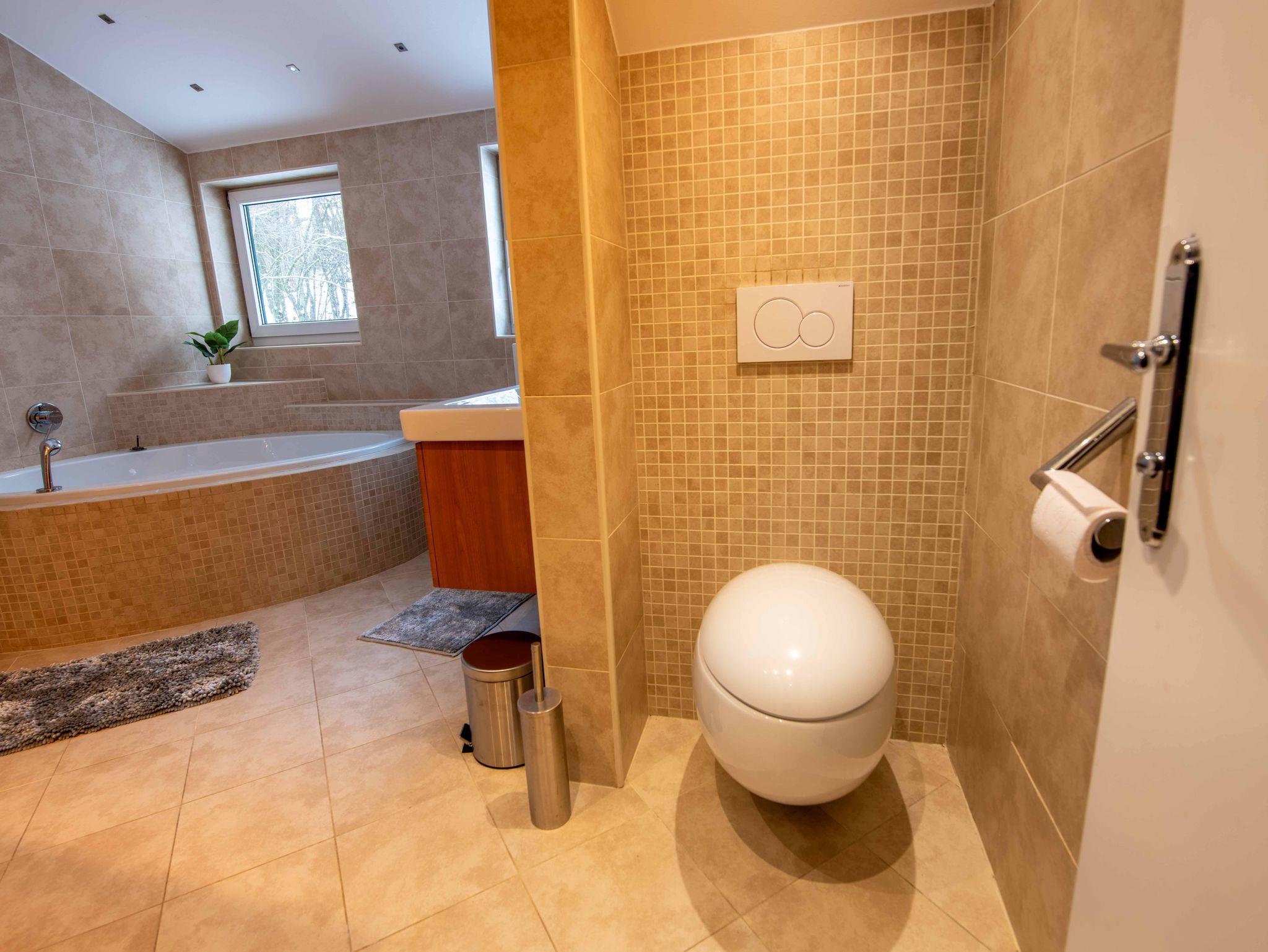 Die Unterkunft bietet exklusiven Wohnkomfort mit 4 getrennten Schlafzimmern mit hochwertigen Doppelbetten, einem Zusatzbett im Master Bedroom sowie einer Schlafcouch. Zwei moderne Badezimmer, zwei separate WCs, eine voll ausgestattete Küche mit großem Essbereich, Waschmaschine, Trockner, TV in allen Zimmern und kostenloses WLAN sorgen für höchsten Komfort. Highlight: die private Innensauna für entspannte Wellnessmomente.