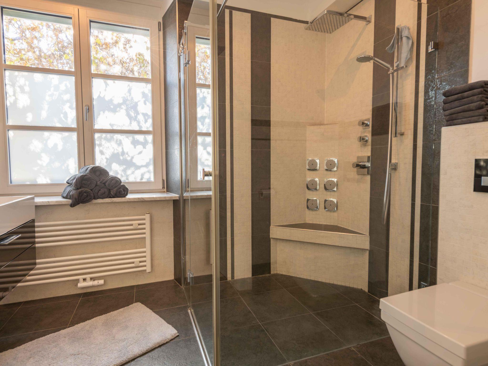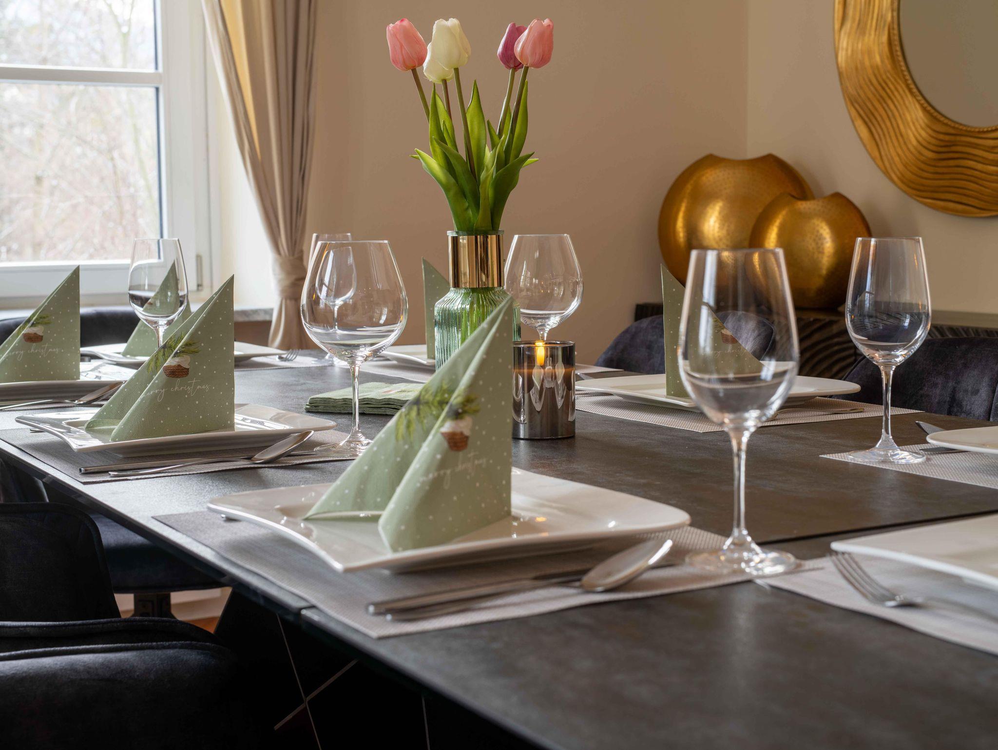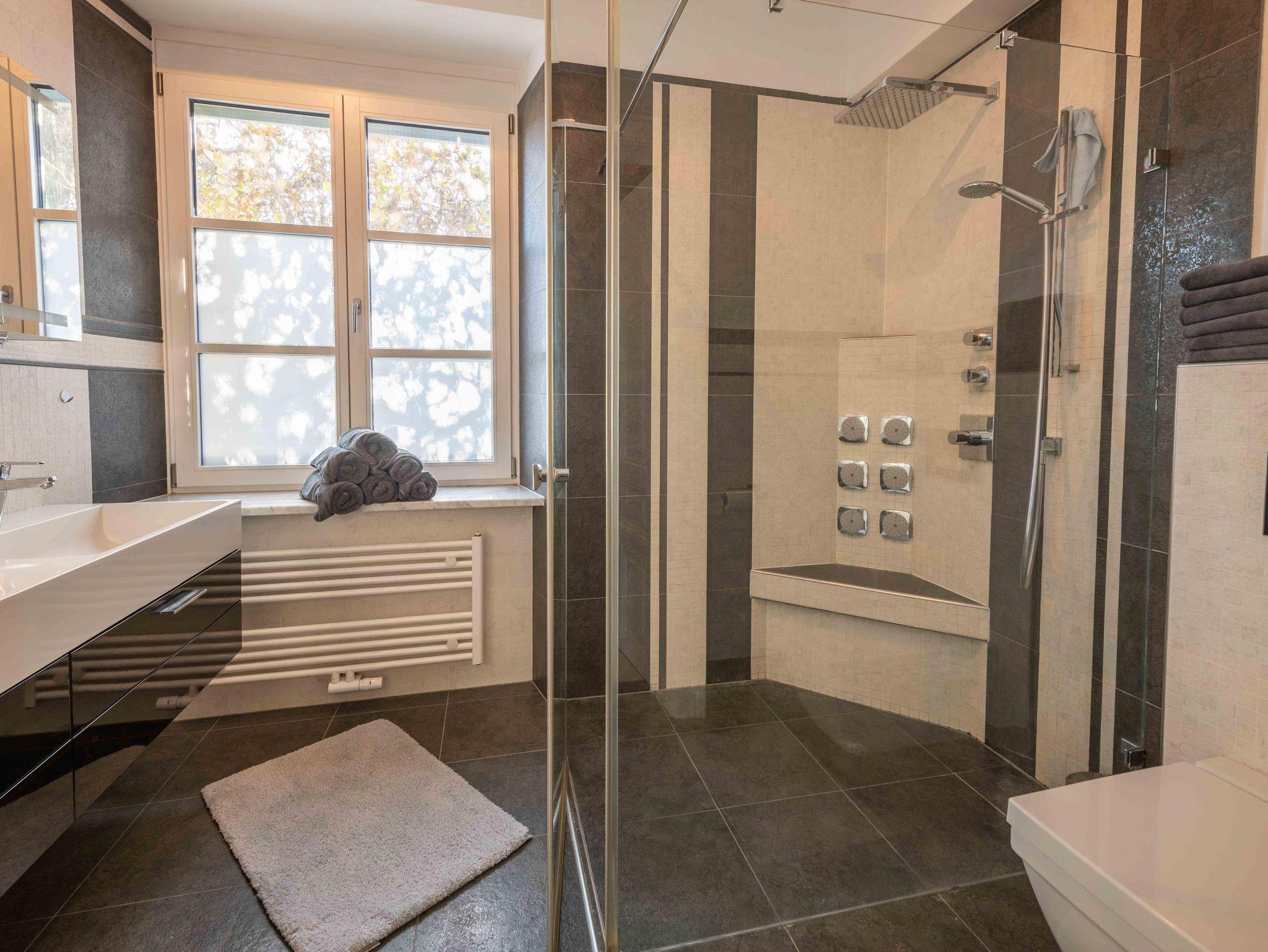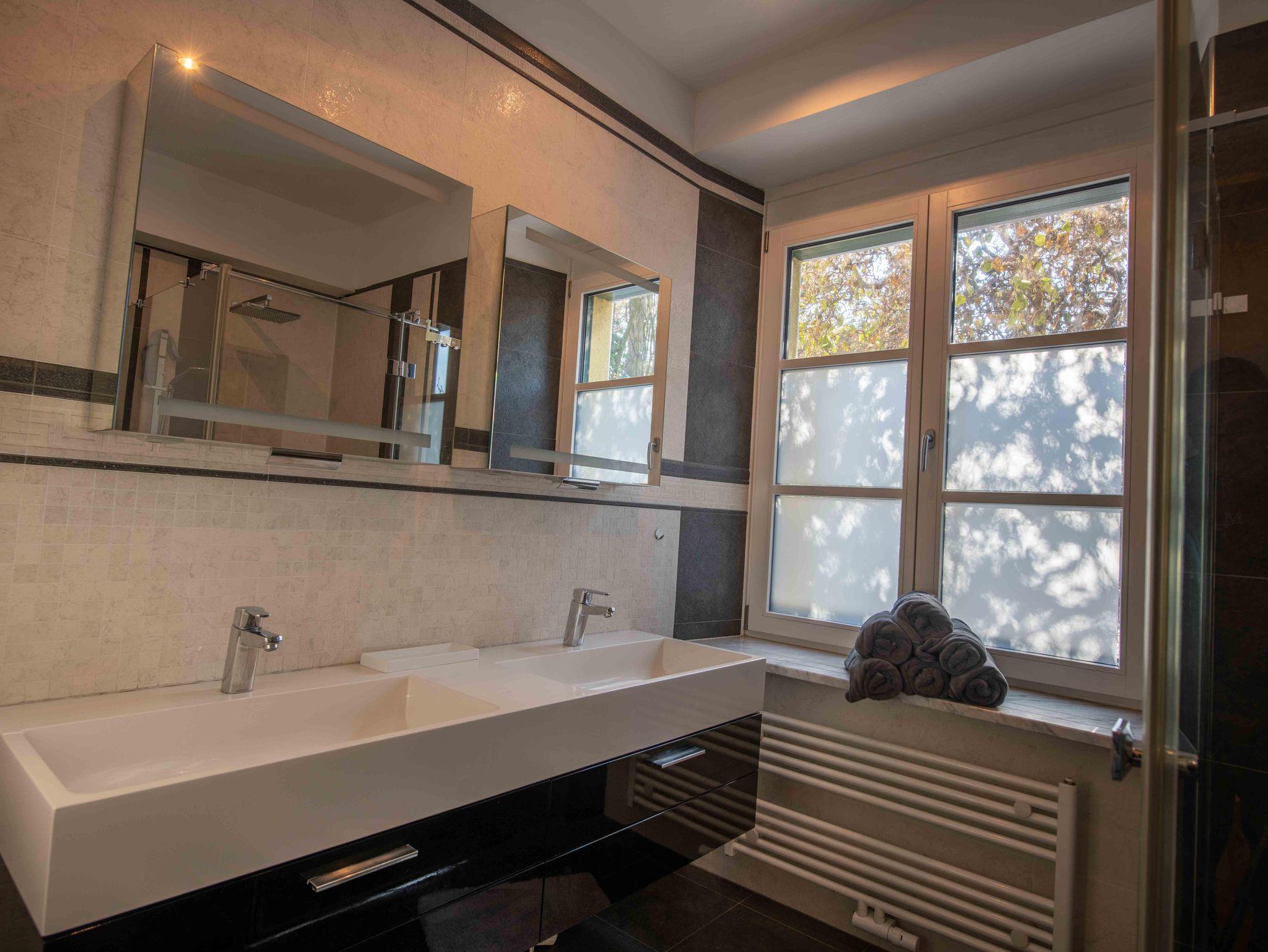 Die Unterkunft bietet exklusiven Wohnkomfort mit 4 getrennten Schlafzimmern mit hochwertigen Doppelbetten, einem Zusatzbett im Master Bedroom sowie einer Schlafcouch. Zwei moderne Badezimmer, zwei separate WCs, eine voll ausgestattete Küche mit großem Essbereich, Waschmaschine, Trockner, TV in allen Zimmern und kostenloses WLAN sorgen für höchsten Komfort. Highlight: die private Innensauna für entspannte Wellnessmomente.