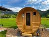 Entspannungsmöglichkeiten bieten eine Fasssauna und Liegestühle. In unserem Aufenthaltsbereich neben den Sanitäranlagen finden Sie eine großzügige Sitzbank, einen Kühlschrank mit Getränken und eine Kaffeemaschine.