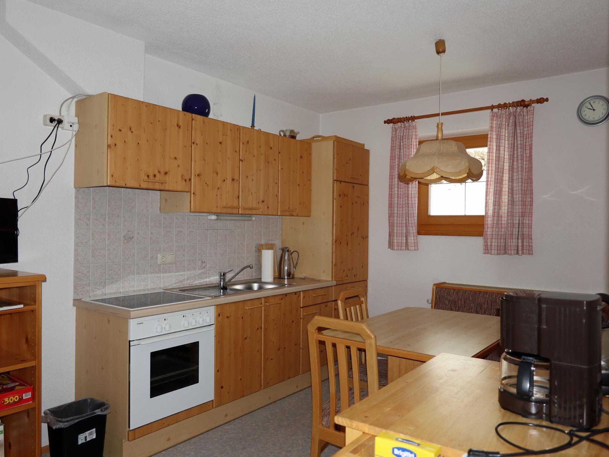 Küchenausstattung: Elektroherd und Kochfeld mit 4 Cerankochplatten, Kühlschrank mit Gefrierfach. Kaffeemaschine, Wasserkocher, Toaster. Nur in Ferienwohnung 2 zusätzlich: Mikrowelle, Spülmaschine. Gefrierschrank statt -fach.