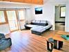 Alle Ferienwohnungen verfügen über eine vollausgestattete Küchenzeile, einen Wohn-Essbereich, Balkon mit Panoramablick, Schlafzimmer mit Zirbenbett sowie ein Bad mit Regendusche und WC.