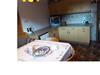 Unsere Ferienwohnung für zwei bis fünf Personen besteht aus einem Dreibettzimmer (ein Doppelbett und ein Einzelbett) und einer gut eingerichteten Küche sowie einer Garderobe, Dusche, WC und Balkon.