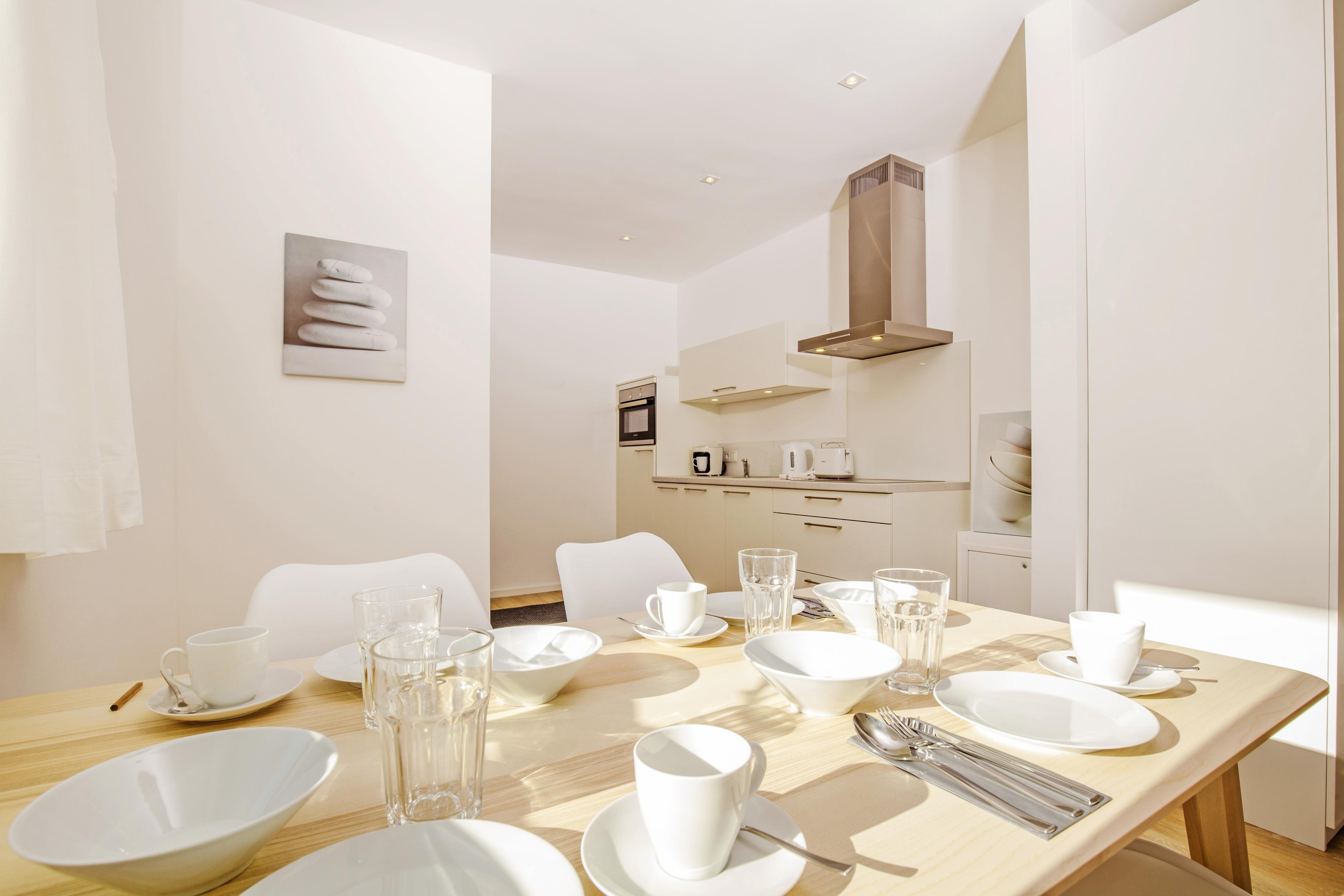 Auf Wunsch kannst Du Dir vor Ort einen Thermomix ausleihen oder den Kühlschrank vor Deiner Anreise bereits nach Deinen Wünschen befüllen lassen. Brötchen Service gibt es auf Anfrage.