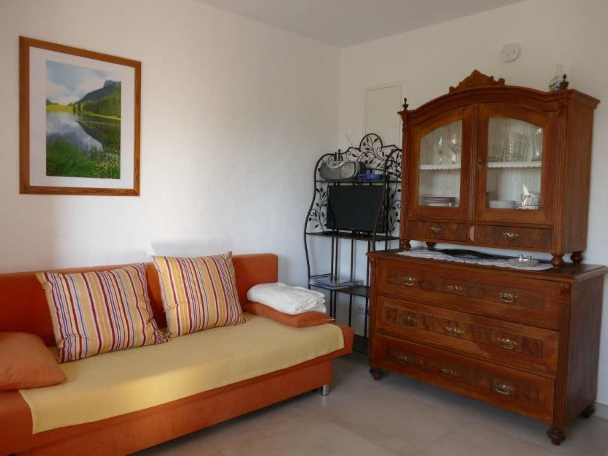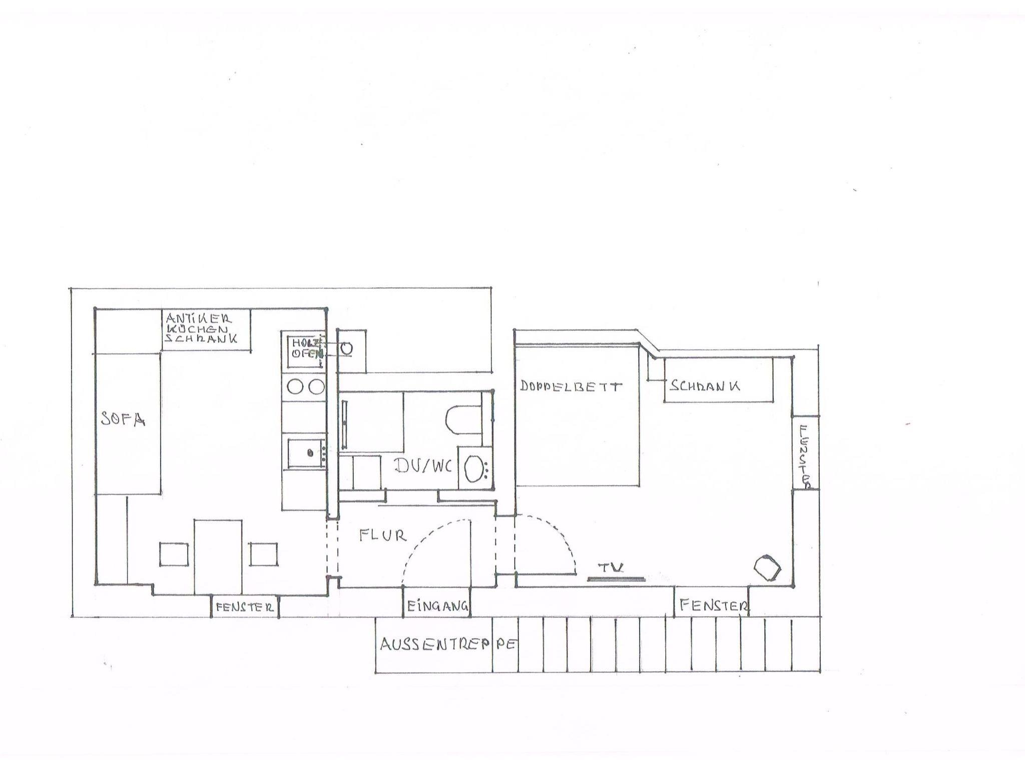There is also a wood-burning stove in the eat-in kitchen. A fridge with freezer compartment, a 2-burner hob and a dishwasher are available. The fold-out couch can be used comfortably for a third person. A TV, radio and free WLAN are available.