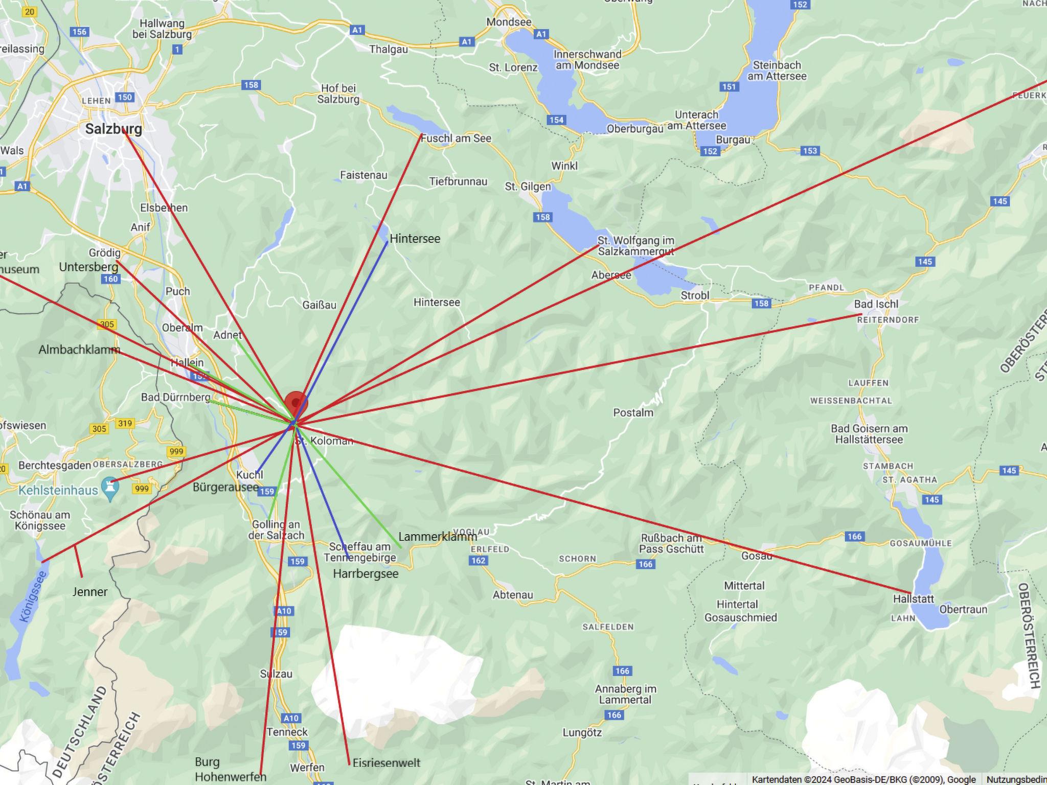 Favourite excursion destinations: Salzburg, Berchtesgaden with NT Park Königsee, Fuschlsee, Eisriesenwelt and Werfen Castle, Hallein, Hallstadt, the Untersberg railway in Grödig, Lammer and Almbachklamm gorges, Römerbrücke bridge with Taugl torrent, nearby bathing lakes, Seewaldsee nature reserve...