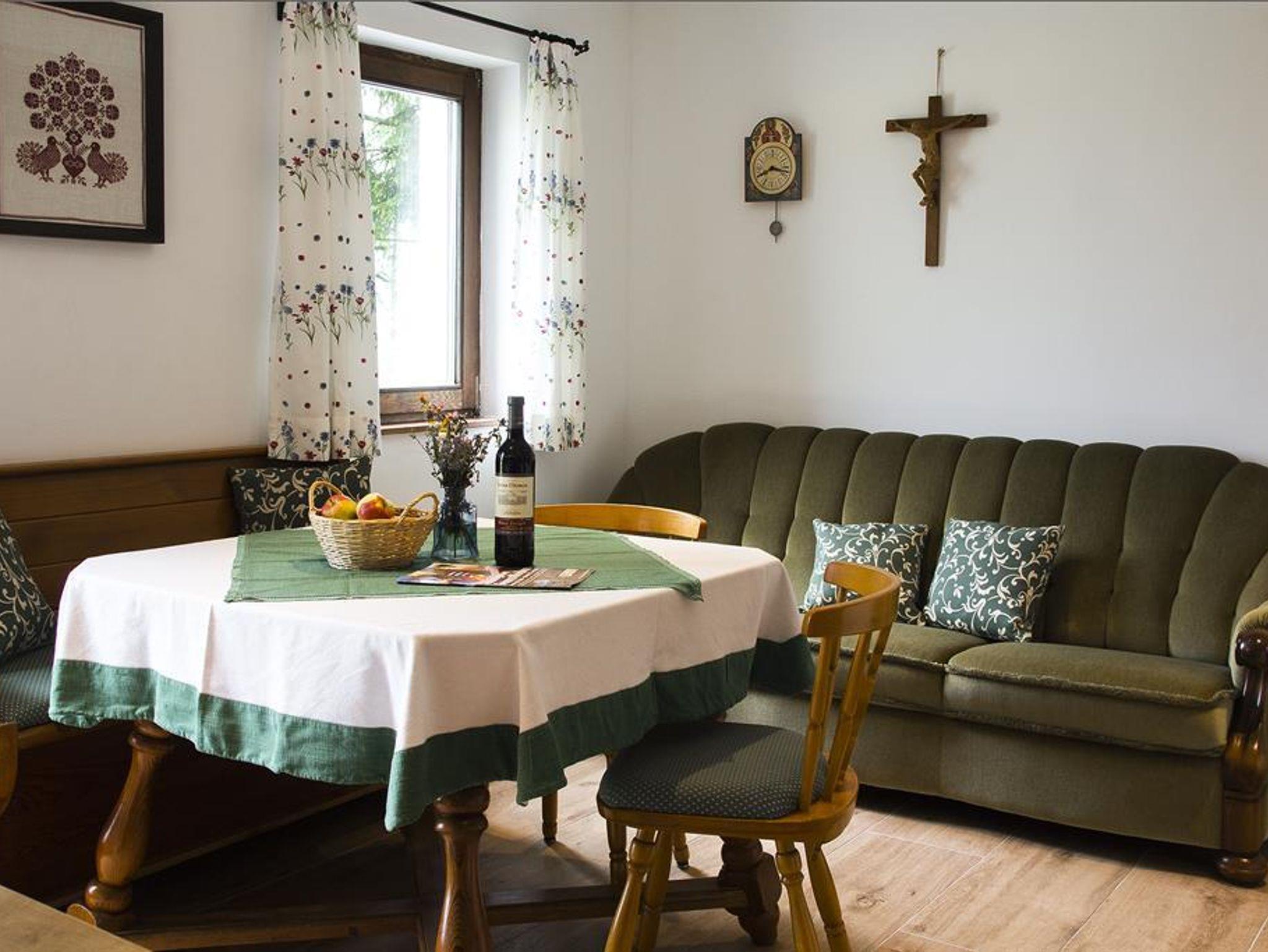 Gemütlich eingerichtete Ferienwohnung für 4 Personen im alpinen Stil mit ausgezeichneter Aussicht in die umliegende Bergwelt. Bettwäsche und Handtücher stellen wir Ihnen zur Verfügung. Einrichtung: vollausgestattete Küche mit Geschirr, Besteck, Kochgeschirr, Wasserkocher, Kaffeemaschine, Kühlschrank mit Tiefkühlfach, Backrohr, Spülmaschine, Badezimmer mit Dusche und WC, 2 getrennte Schlafzimmer (1 Schlafzimmer mit Doppelbett, 1 Schlafzimmer mit Stockbett). Satelliten-Flachbild-TV Das WLAN nutzen Sie kostenfrei. Unsere Ferienwohnung hat eine möbelierte Terrasse, wo Sie ungestört sein können. Es gibt einen großen Garten.