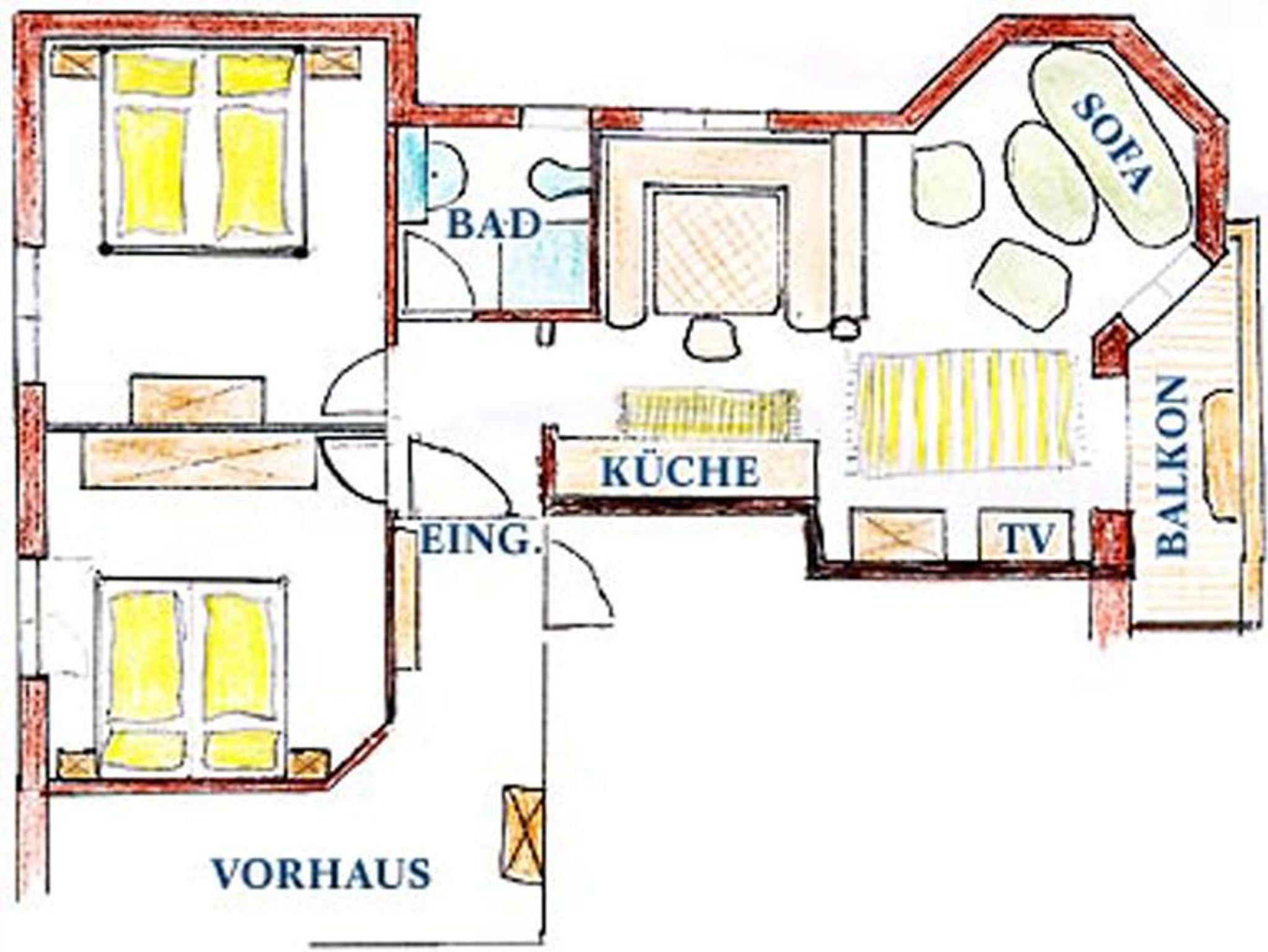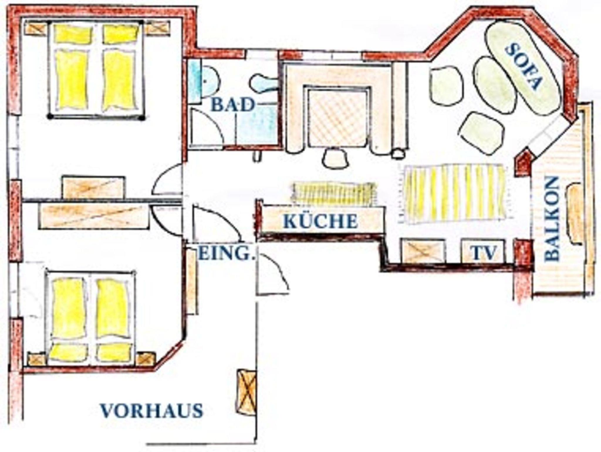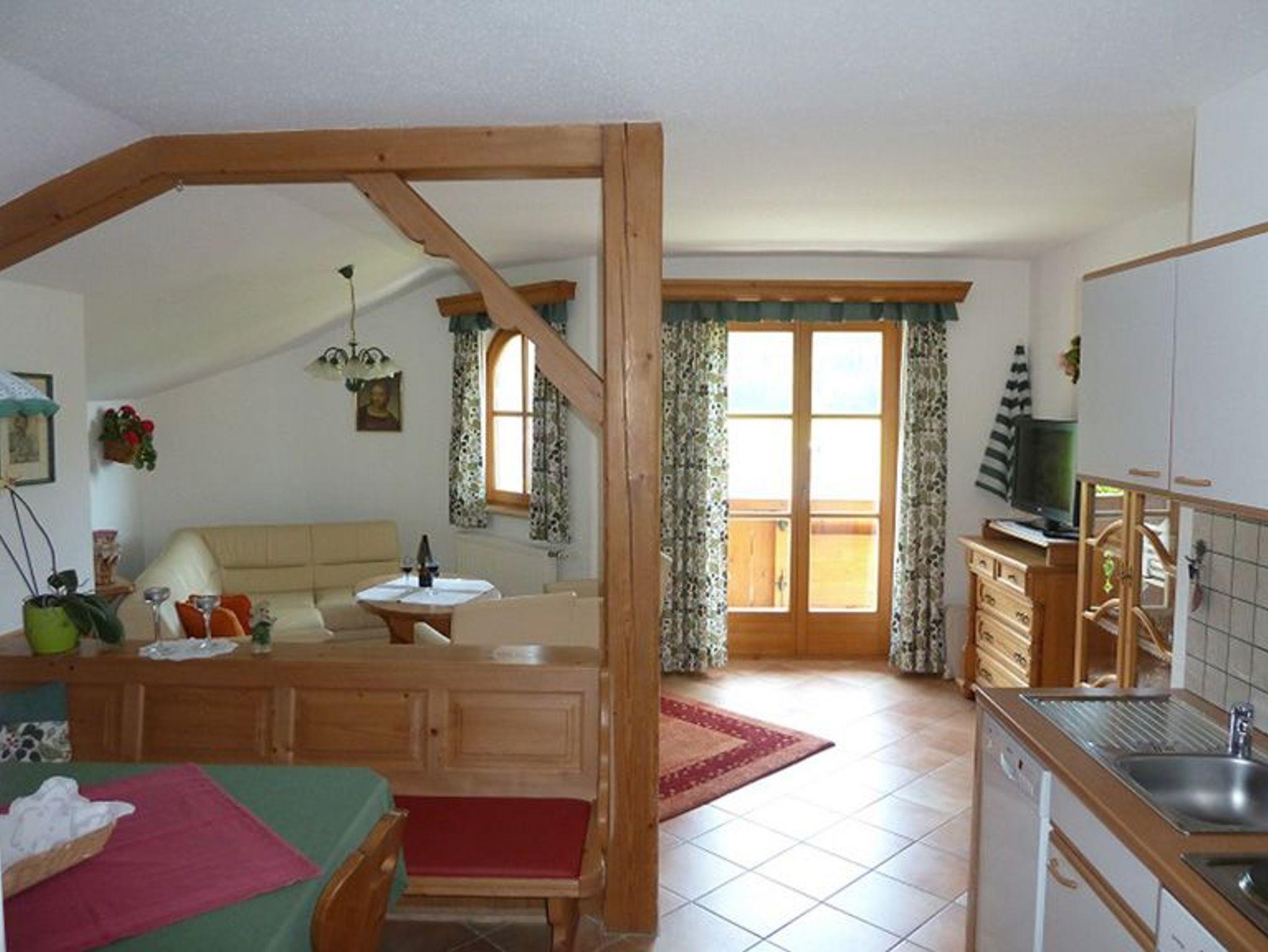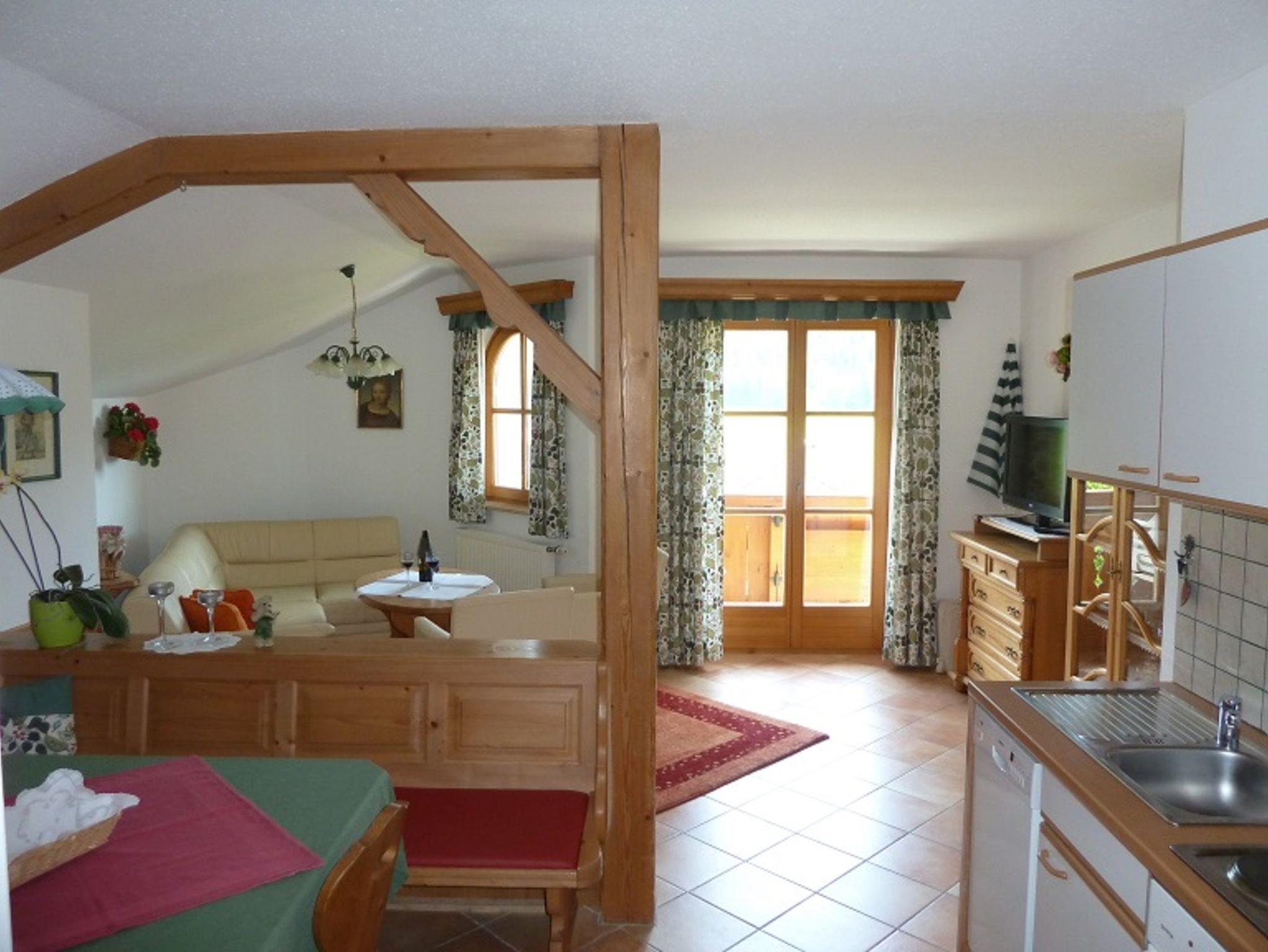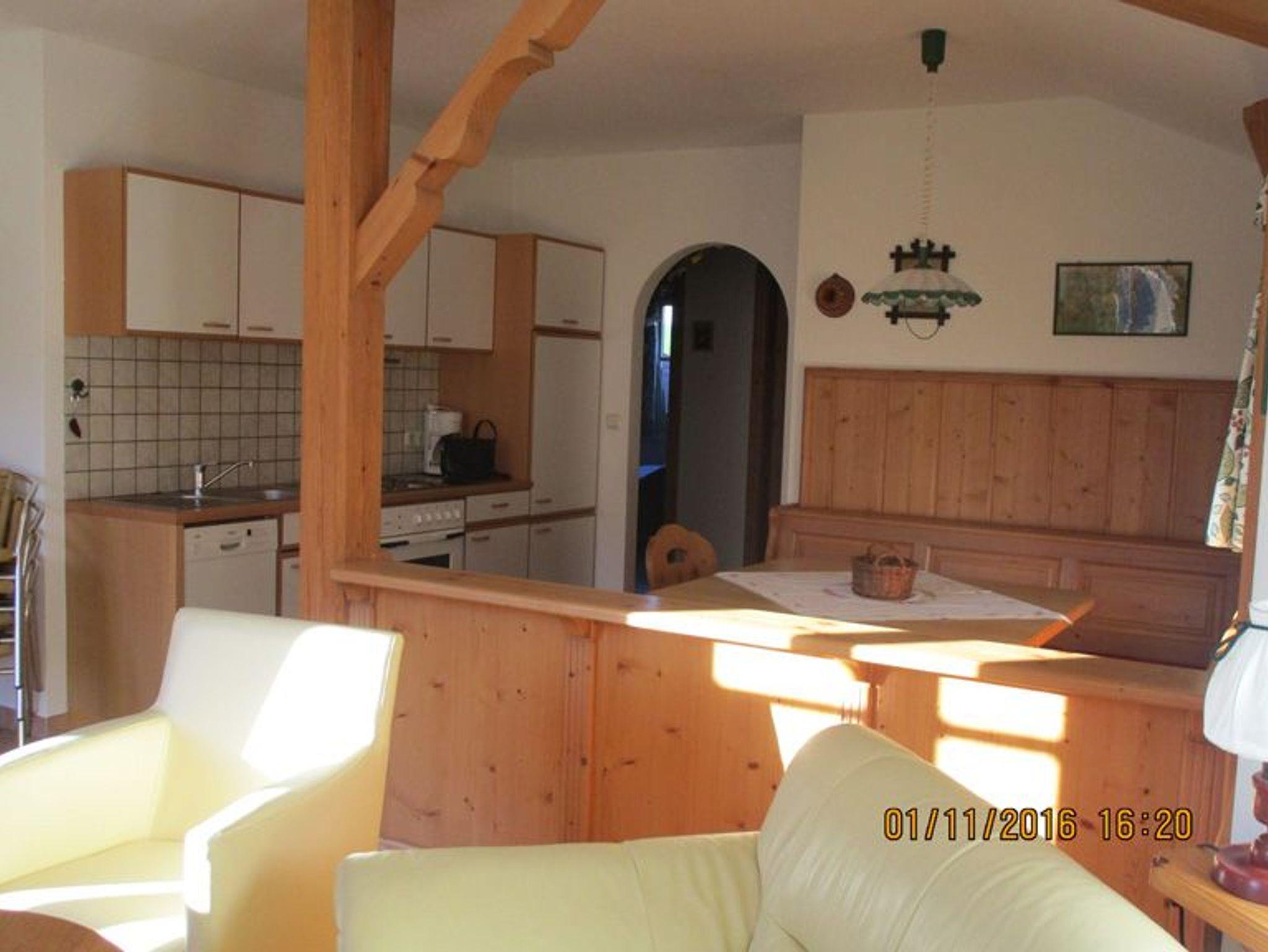 Eine sonnige, helle Wohnung (80 m²) mit 2 Schlafzimmern, Wohnküche mit Essecke, Geschirrspüler, Raumteiler, Ledergarnitur im Wohnzimmer, Vorraum, Dusche/WC, Balkon südseitig, SAT-TV und WLAN. Für 2 bis 6 Personen. Sehr gemütlich mit Vollholzmöbel! Ruhige Lage mit Blick auf die Berge.