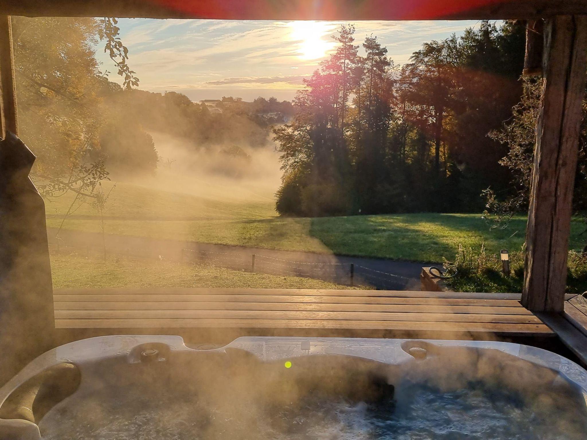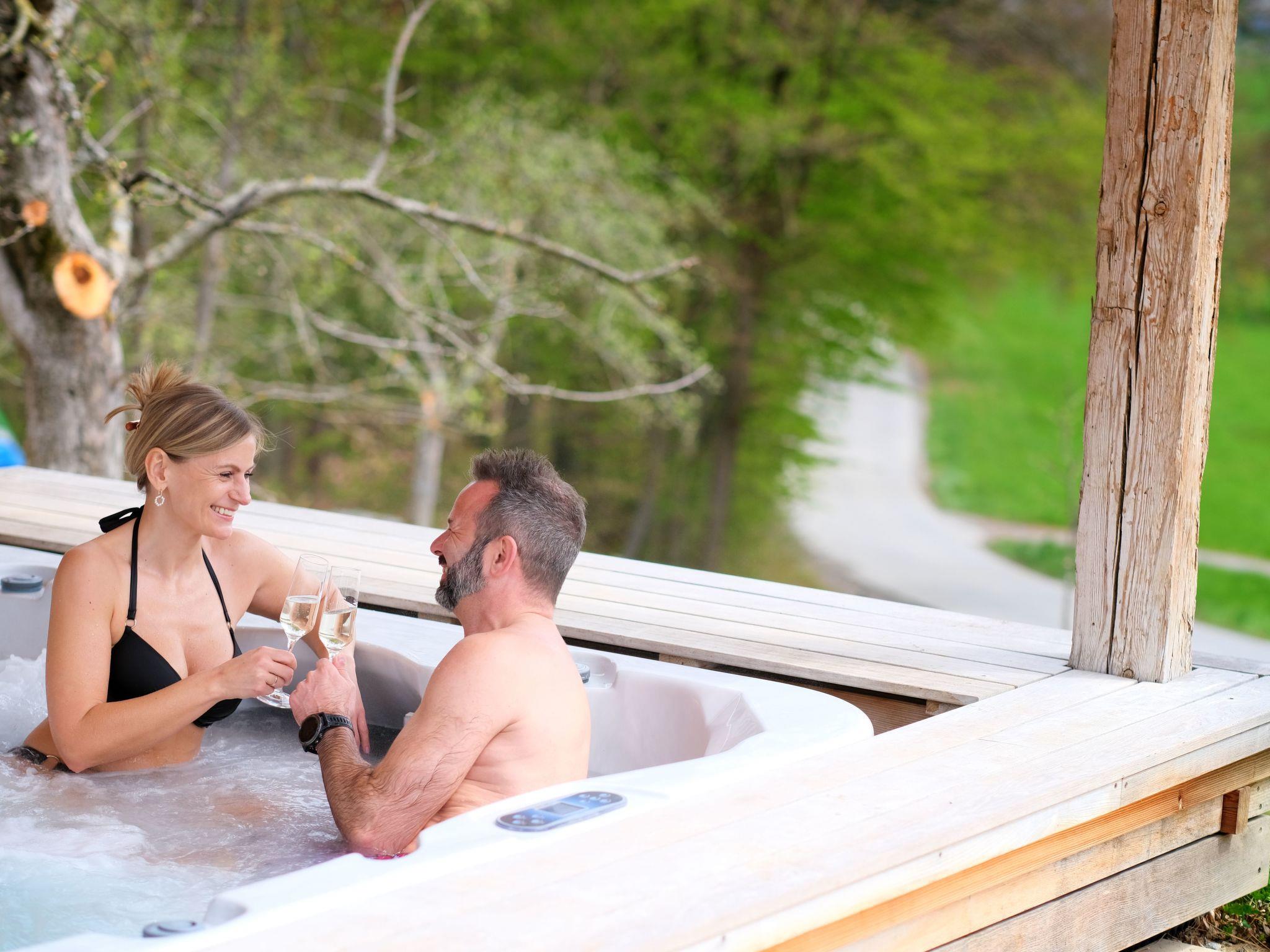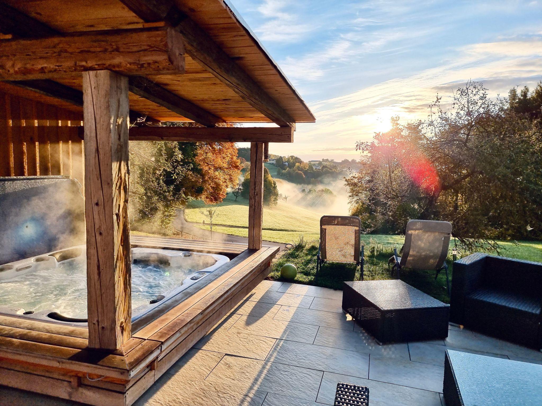 Our farm is situated on a hill with a wonderful view and beautiful, unspoilt countryside. Sauna and whirlpool are available for the guests of our 5 flats, in addition there are 2 barbecues, places to linger on our large property, hammocks in the sheep pasture and much more. We have our own sheep and chickens, which you are of course welcome to visit!