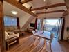 The flat has a spacious living room with a great view, equipped with a dining table, cosy couch and fully equipped kitchen - there is also a sleeping area above (mainly for young people). There is also a separate bedroom and a large bathroom. From the large terrace you have a great view and you can also see our sheep and chickens!