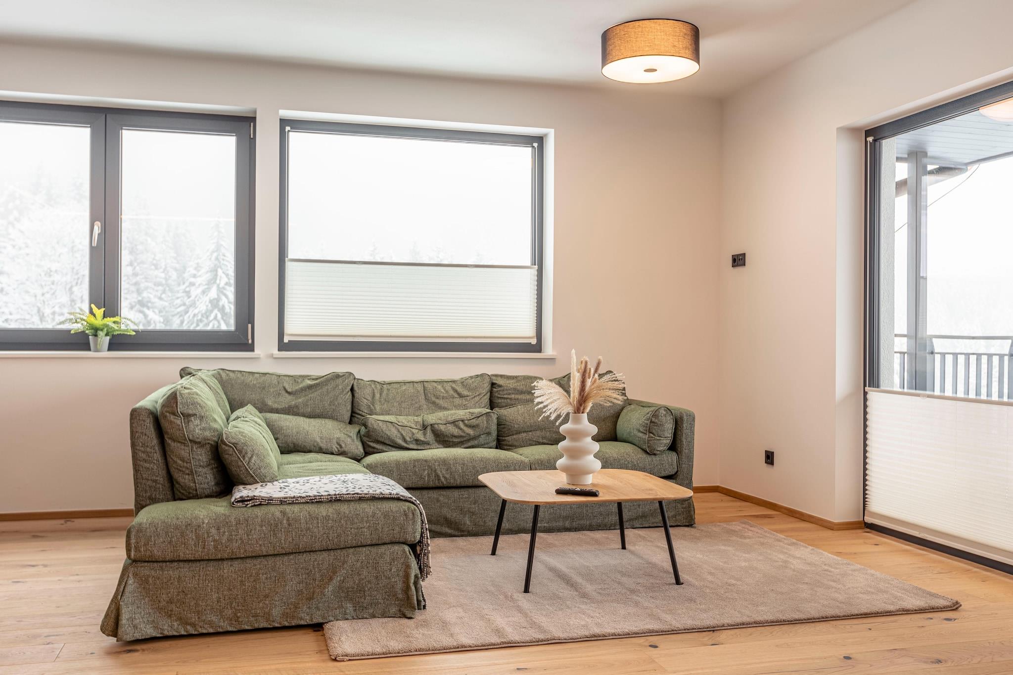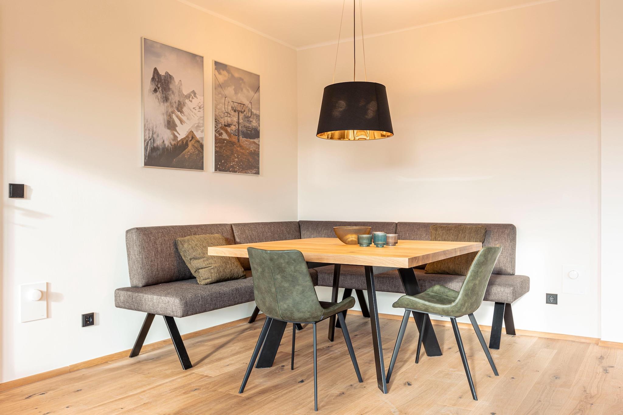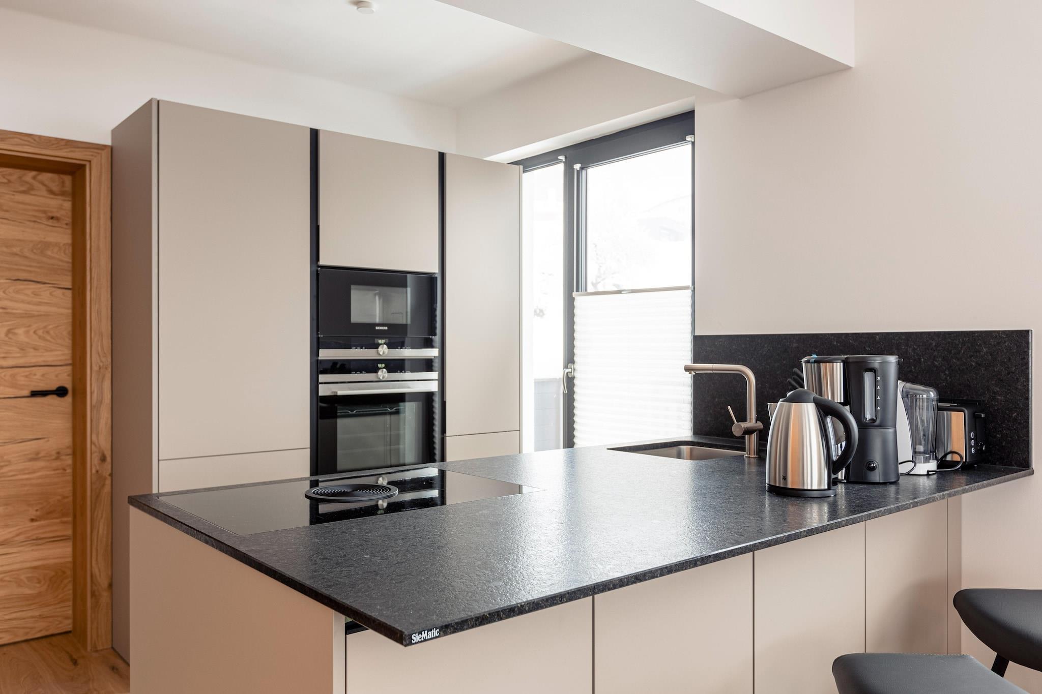Op til 6 personer føler sig godt tilpas i det generøse 111 m² store boligareal. Den eksklusive penthouse-lejlighed for op til 6 personer & infinity-pool har tre soveværelser med komfortable boxspring dobbeltsenge og tre badeværelser med bruser og toilet (hårtørrer tilgængelig). Den rummelige opholds-/spisestue er udstyret med et komfortabelt opholdsområde og fladskærms-tv, hvorfra du enten kan få adgang til altanen eller terrassen, afhængigt af beliggenheden. Beliggende i landsbyens centrum og kun få meter fra pisterne, er Premium Chalet #56 et ideelt tilflugtssted for både vintersportsentusiaster og dem, der søger fred og ro. Hohetauern Guest Card er inkluderet i dit ophold og giver dig yderligere fordele og rabatter for at gøre dit ophold endnu mere behageligt. Det smagfulde køkken i taglejligheden er fuldt udstyret, med bestik og (madlavnings)fade, glaskeramisk kogeplade, ovn, køleskab med fryser og opvaskemaskine. Faciliteterne omfatter også brødrister, kedel og kaffemaskine. Et lille ALPS RESORTS startsæt bestående af opvasketabletter, opvaskemiddel (prøve), svamp, affaldspose, renseklud og viskestykke er tilgængeligt til din ankomst.