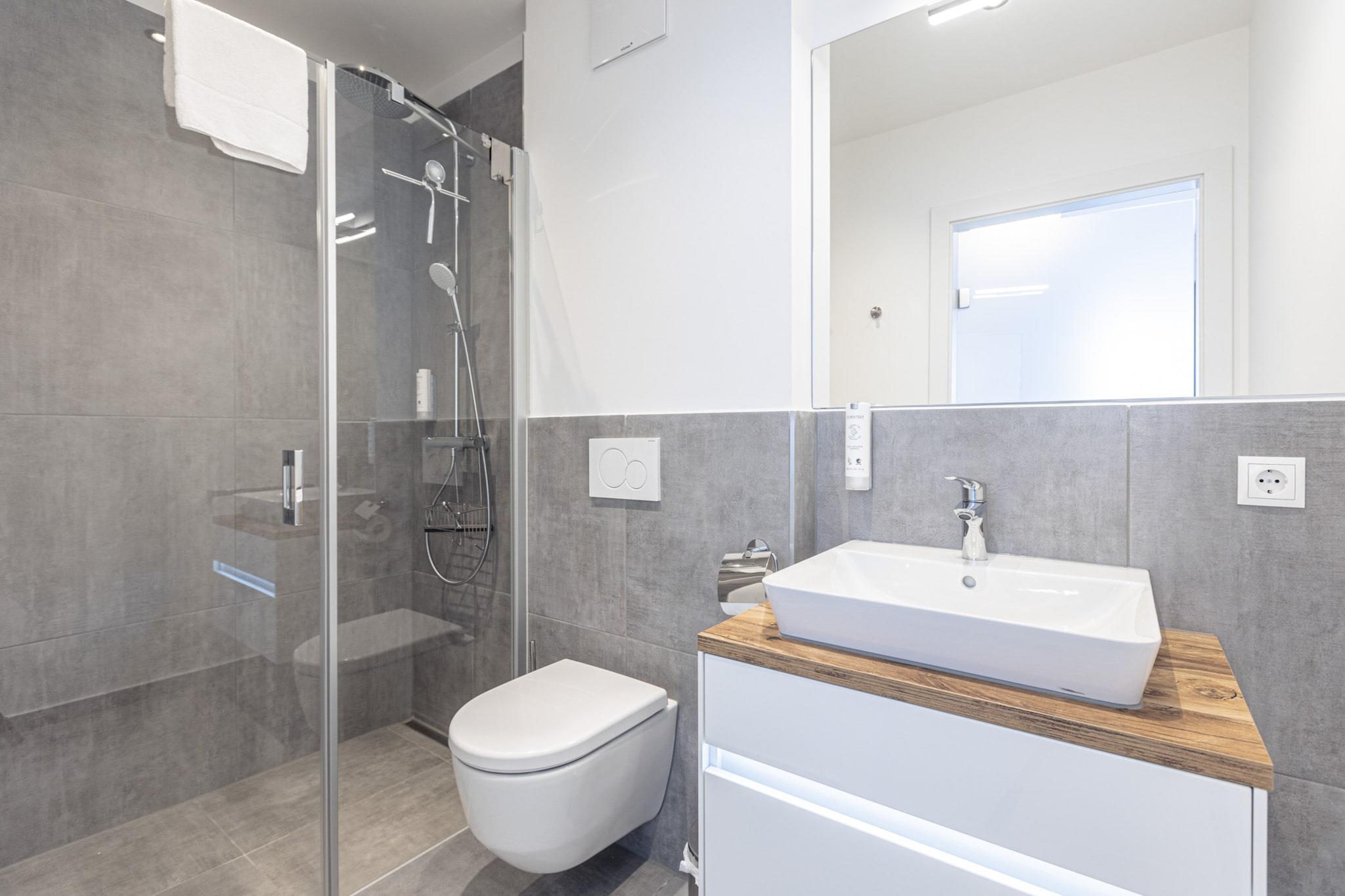 Velkommen til vores stilfulde 74 m² Superior lejlighed, designet til at give den ultimative komfort for op til 6 gæster. Dette moderne tilflugtssted har to indbydende soveværelser, der hver er indrettet med luksuriøse dobbeltsenge med boxspring, hvilket sikrer en god nattesøvn. Lejligheden har to velindrettede badeværelser, hver udstyret med bruser, toilet og hårtørrer for din bekvemmelighed. Den rummelige stue og spisestue i åbent plan byder på rigelig plads til afslapning og socialt samvær. Et hyggeligt opholdsområde supplerer et fladskærms-tv, og en komfortabel sovesofa giver ekstra soveplads til to gæster. Afhængigt af din lejligheds beliggenhed kan du få adgang til enten en privat balkon eller terrasse, perfekt til at nyde den omkringliggende udsigt. Lejlighedens stilfulde tekøkken er fuldt udstyret til at imødekomme alle dine kulinariske behov. Det inkluderer bestik, køkkengrej, en keramisk kogeplade, ovn, køleskab med fryseboks og en opvaskemaskine. Yderligere bekvemmeligheder såsom en brødrister, elkedel og kaffemaskine Der er også et lille startsæt med en opvaskemaskine, prøveopvaskemiddel, svamp, affaldsposer, rengøringsmidler og et viskestykke til at hjælpe dig med at finde sig til rette. For dem, der rejser med kæledyr, er hunde velkomne. Superior lejlighed efter anmodning (mod betaling). Gæsterne har også adgang til gratis trådløs internetadgang. Bemærk venligst, at alle billeder er eksempelbilleder, da hver lejlighed er individuelt indrettet. Derudover er TennengauPLUS-kortet inkluderet, som giver adgang til forskellige lokale rabatter og tilbud. Vær opmærksom på poolens åbningstider: - Vinter (01.10 - 30.04): 16.00 - 19.00 - Sommer (01.05 - 30.09): 10.00 - 18.00