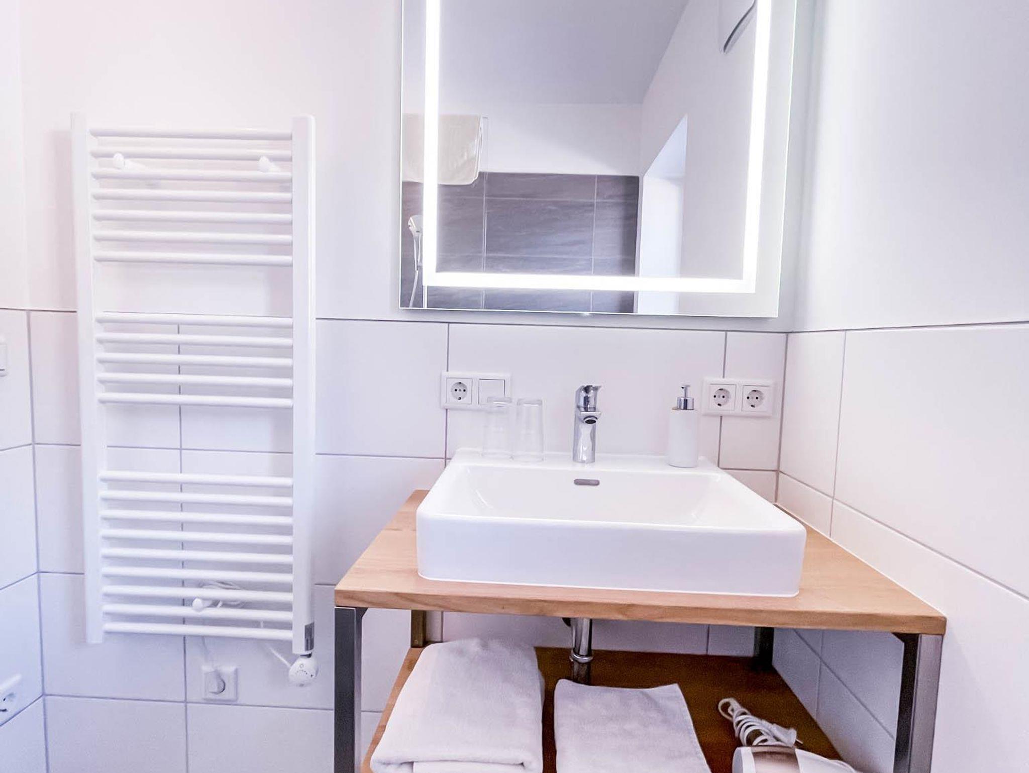 Das Badezimmer verfügt über eine Badewanne (ebenfalls mit tollem Ausblick) und Fön, das WC ist extra.