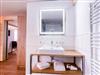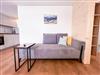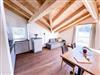 Erholsamen Schlaf bietet das Boxspring-Doppelbett im kuscheligen Schlafzimmer. Die Couch im Wohn-Essbereich kann als Schlafmöglichkeit für eine weitere Person gerichtet werden und ist mit einem Vorhang vom Schlafzimmer geteilt. Das halboffene Badezimmer grenzt an das Schlafzimmer und verfügt über Dusche und Fön, das WC ist extra.