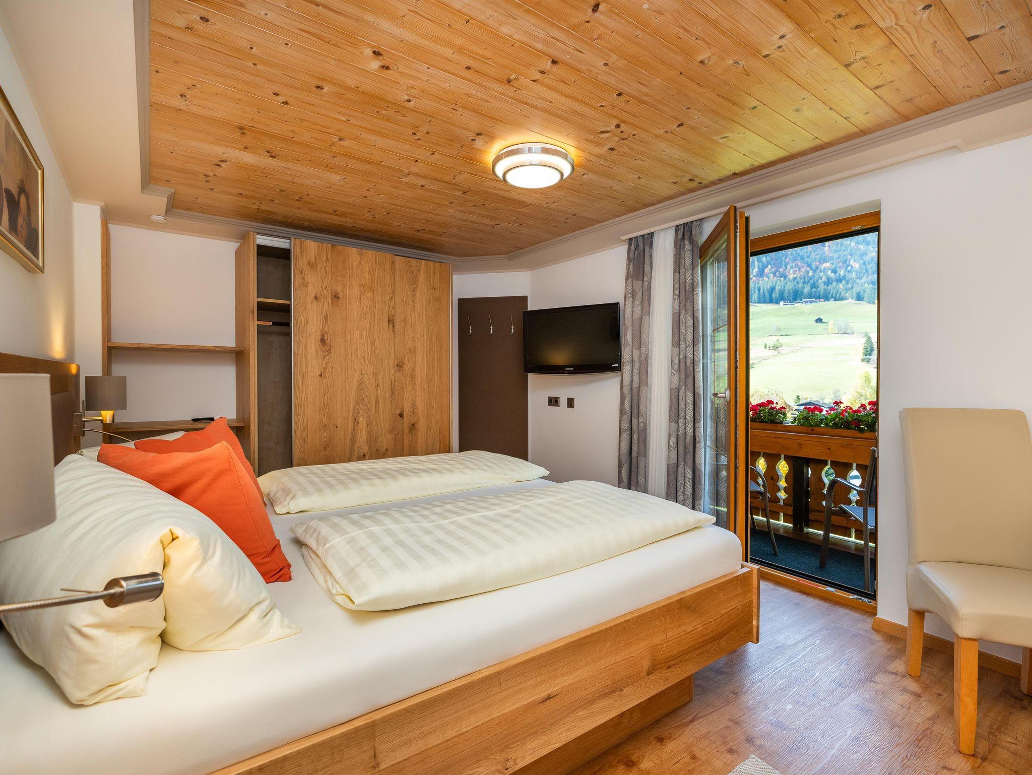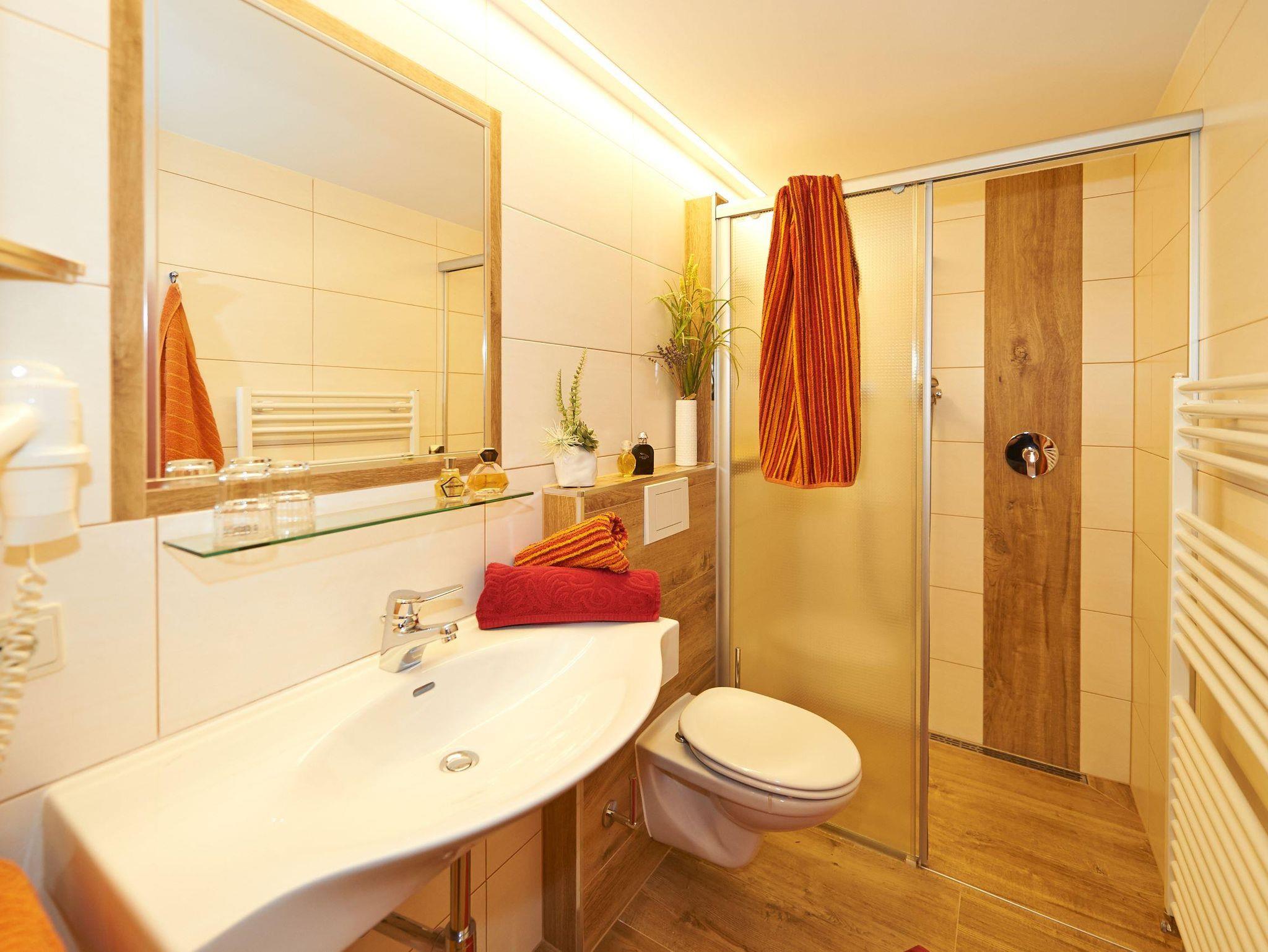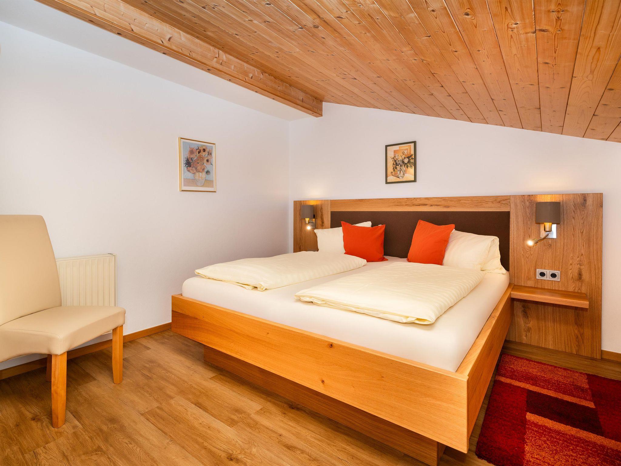 Unsere Giebelwohnung bietet Ihnen bis zu drei getrennte Schlafzimmer, jeweils mit eigener Dusche und WC. In der Wohnung, die komfortabel und komplett eingerichtet ist, befindet sich ein Flat-Sat-TV, Gratis Internetanschluss, Parkettboden und Balkon. Bettwäsche und Handtücher sind vorhanden. Frühstück ist auf Wunsch gegen Aufpreis jederzeit buchbar.