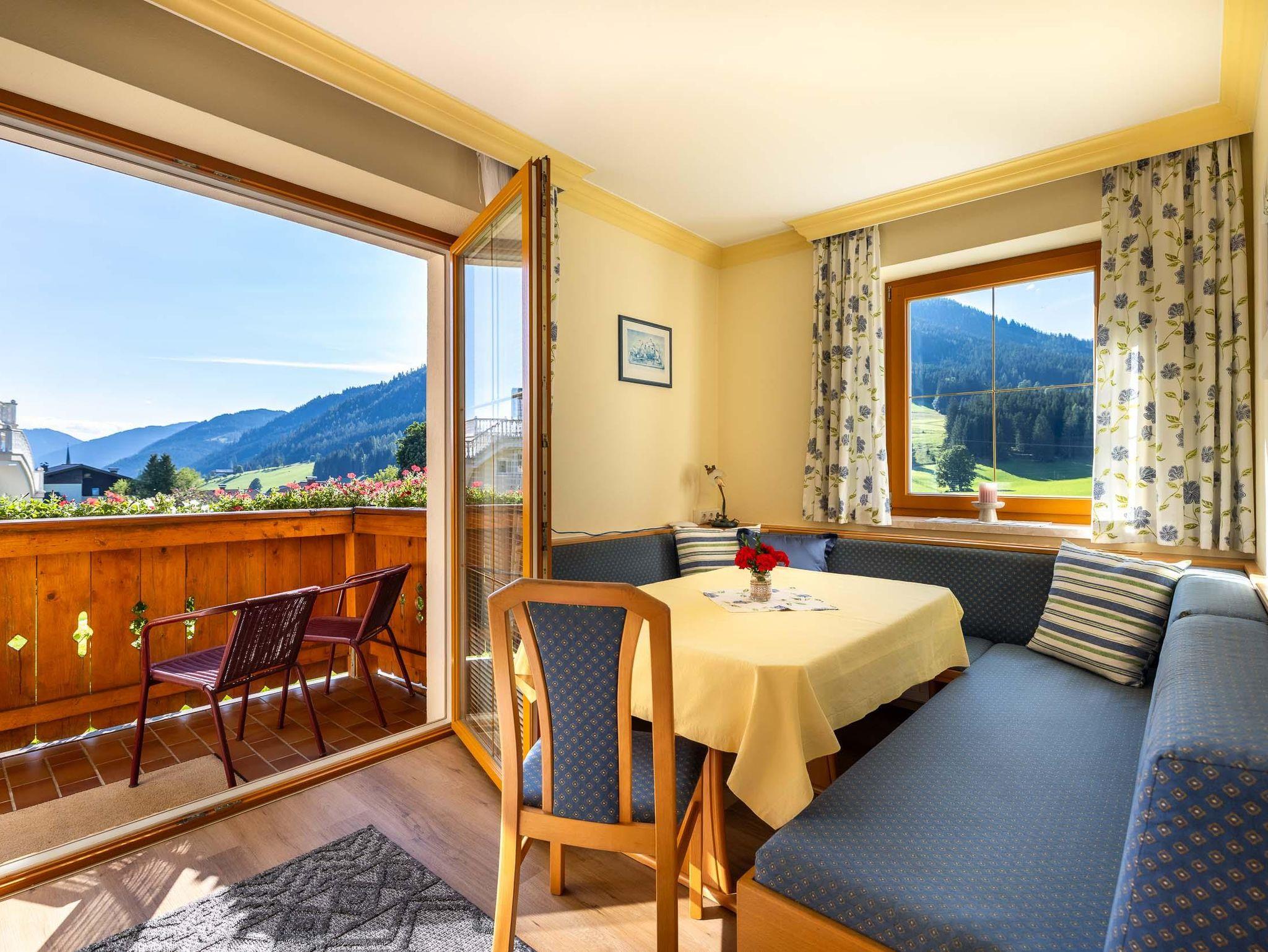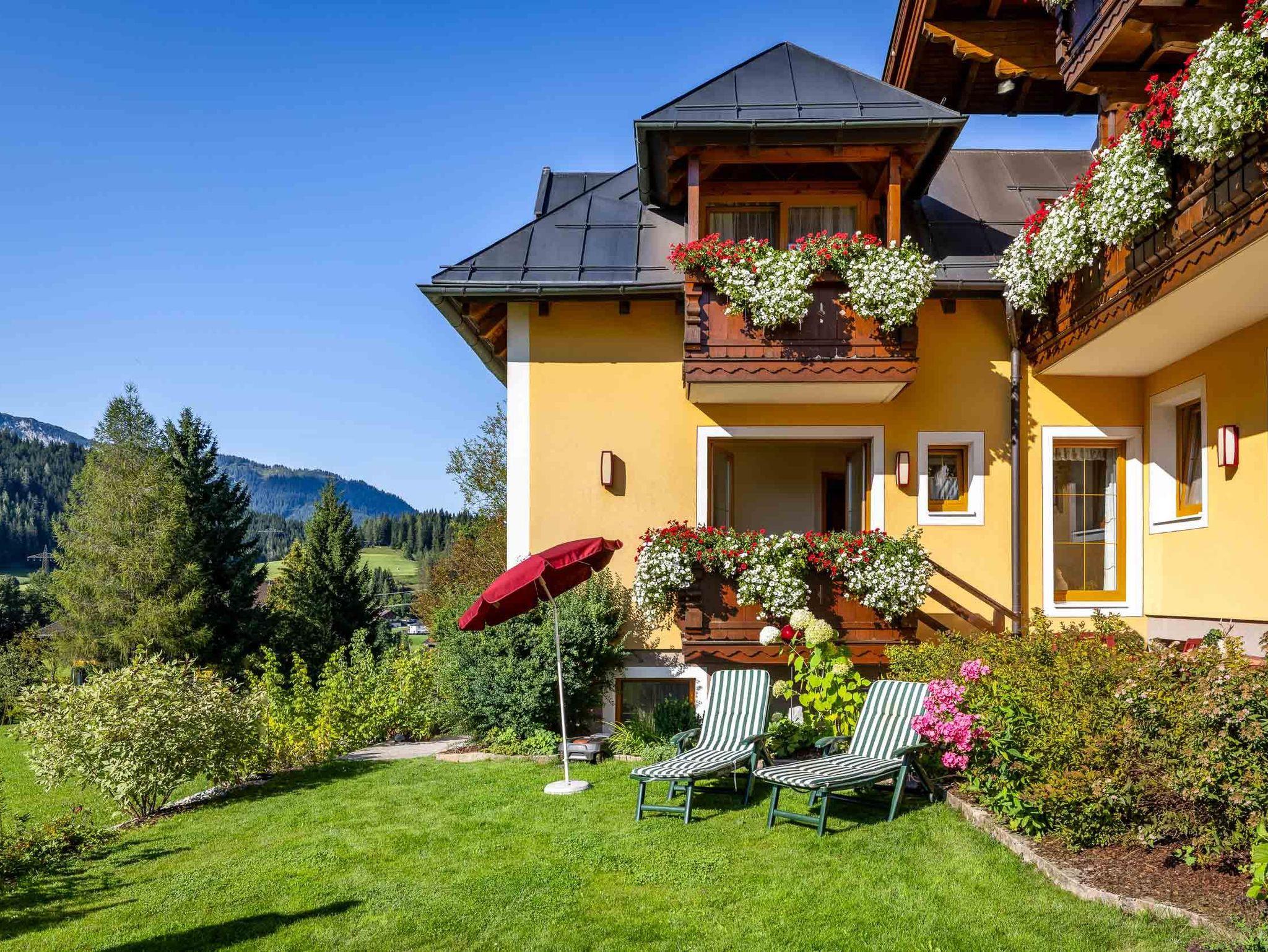 Urlaub soll die schönste Zeit im Jahr werden - wenn Sie Ihren Urlaub inmitten intakter Natur mit Zeit für sich und Ihre Lieben planen und einfach einmal aus dem Alltag raus wollen, dann fühlen Sie sich bei uns sicher wohl! Unser Haus Elisabeth liegt in zentrale, sonniger und ruhiger Lage mit herrlichem Ausblick. Wir sind vom Landesverband mit dem Prädikat 4 Edelweiß ausgezeichnet worden, das heißt für Sie, dass wir Ihnen schöne Zimmer mit Frühstück und 4 komfortable Ferienwohnungen anbieten können, die garantiert vielfältige Kriterien erfüllen, um Ihren Urlaubsaufenthalt so angenehm wie möglich zu gestalten! Ein Frühstücksraum, Nichtraucherraum, Balkon, Sat-TV, Parkplatz sowie freier Internetzugang in allen Ferienwohnungen und im Aufenthaltsraum stehen Ihnen weiters zur Verfügung. Kinder finden auf der großen Liegewiese vor dem Haus und dem nahen Kinderspielplatz genügend Platz zum Toben und Spielen! Zahlreiche lohnende Ausflugsziele, wie Dachstein, Burg Hohenwerfen, Mozartstadt Salzburg uvm können vom Haus Elisabeth aus leicht und bequem erreicht werden, im Winter locken die Loipen direkt vorm Haus oder die Skiverbände Skiregion Dachstein-West und die Salzburger Sportwelt Amadé mit herrlichen Pisten.