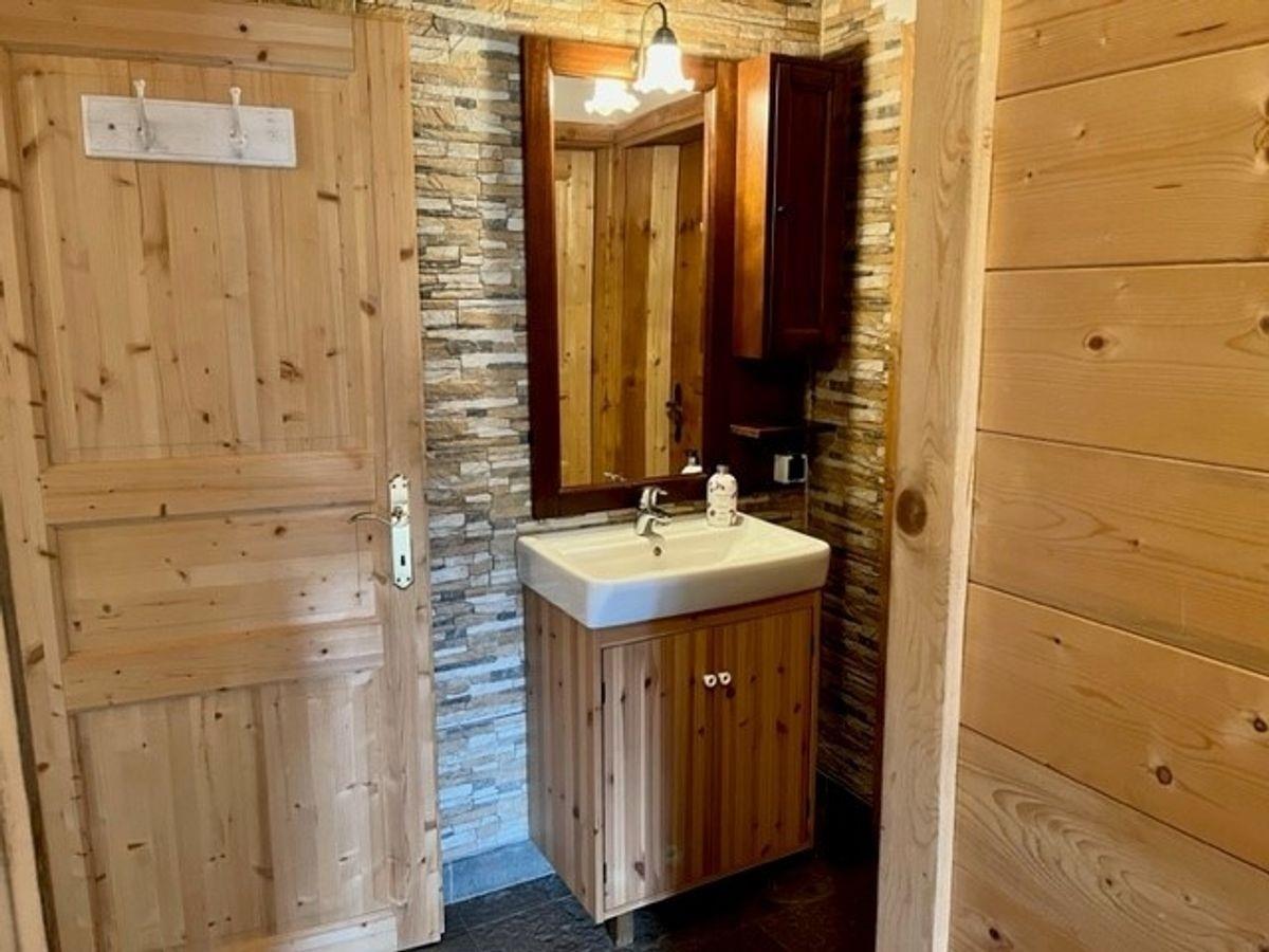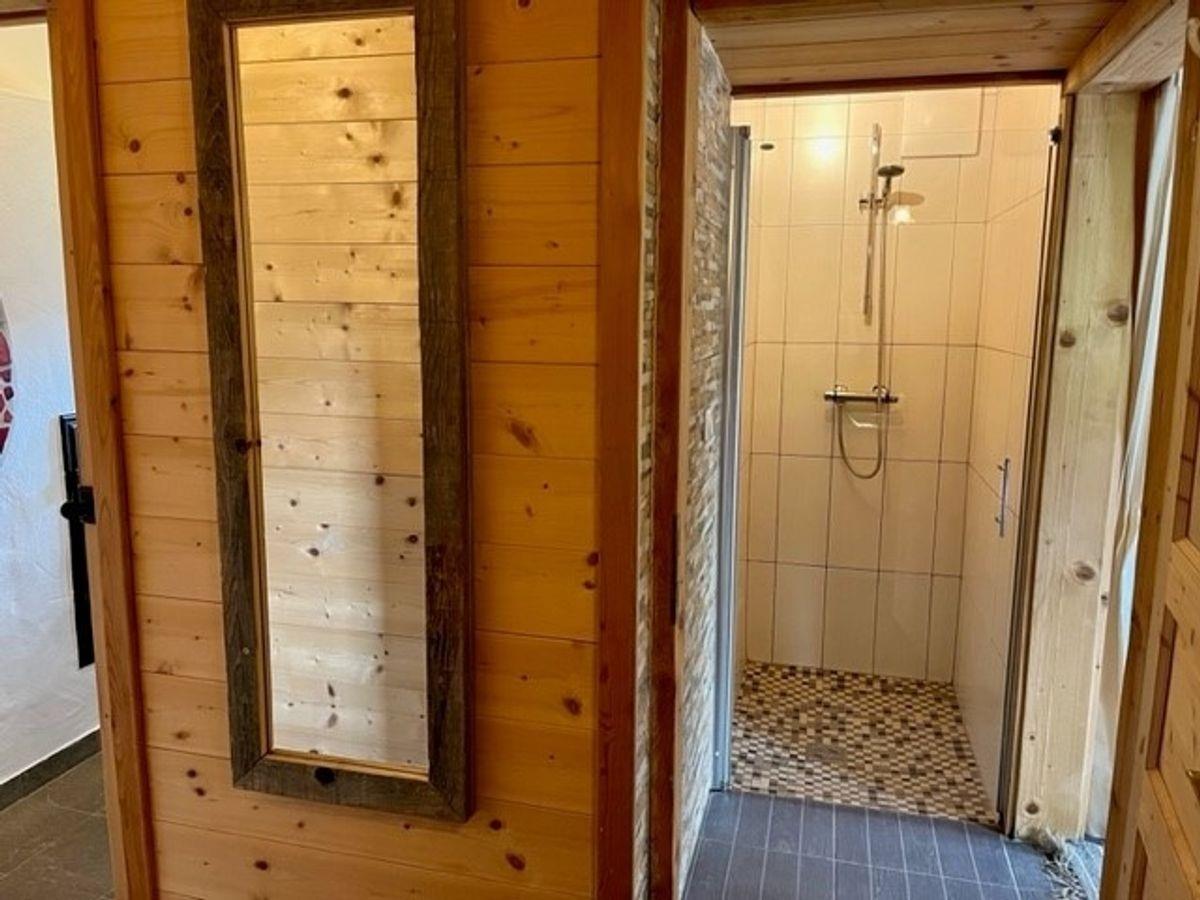 Das Badezimmer ist mit Dusche, Waschbecken und WC ausgestattet. In der urigen Wohnstube mit Küchenbereich – inklusive E-Herd mit Backofen, Kühlschrank, Mikrowelle und Nespresso-Maschine – genießt du gesellige Stunden am massiven Esstisch oder auf der bequemen Couch.