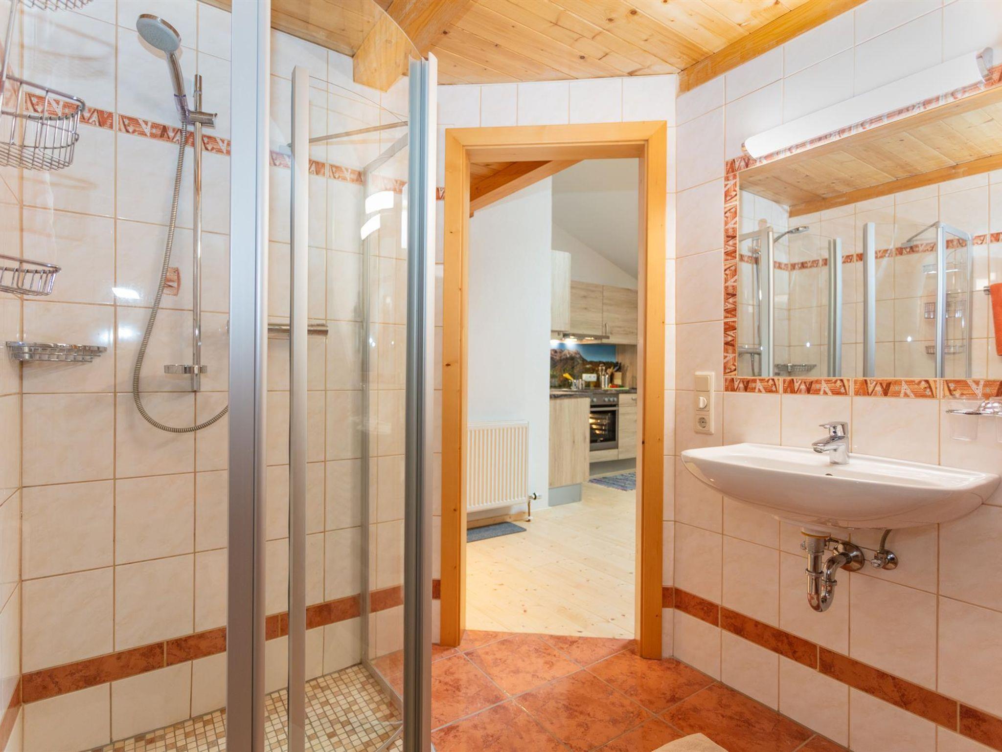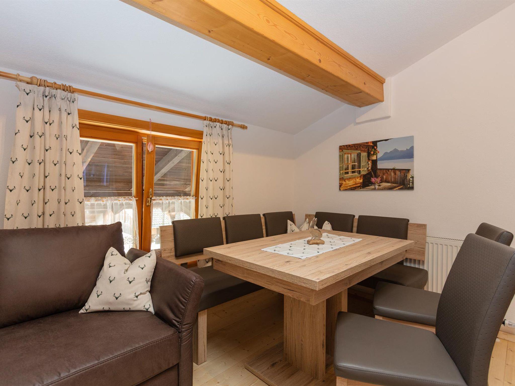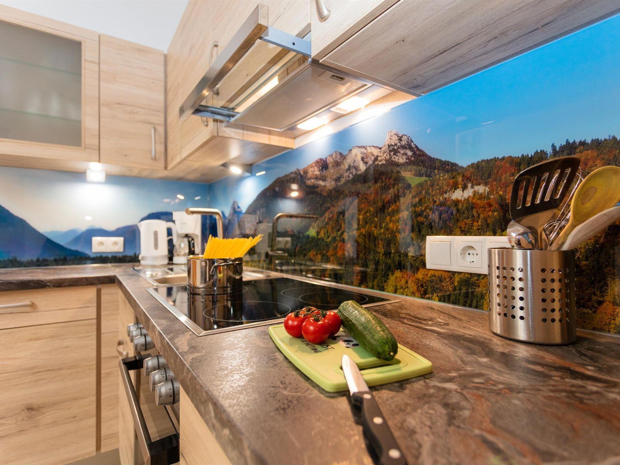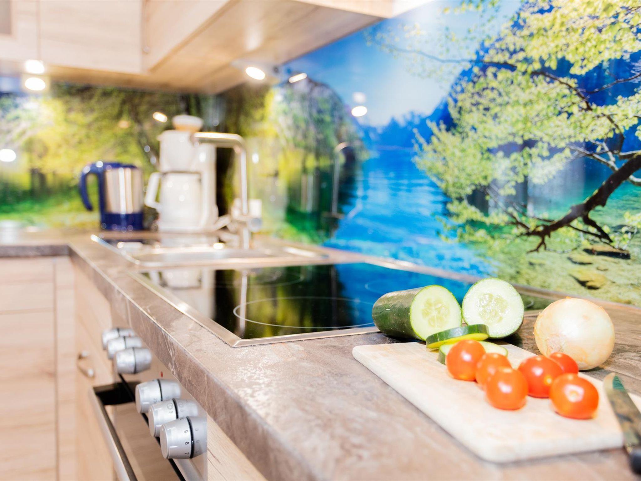 Die gemütliche Wohnung mit Almhüttenflair liegt im 2. Stock, sie hat eine Wohnküche mit Kühlschrank, E-Herd, Geschirrspüler, ausziehbare Ledercouch gemütlicher Sitzecke. Über die Treppe geht es rauf auf die Galerie, wo sich der Schlafbereich befindet.