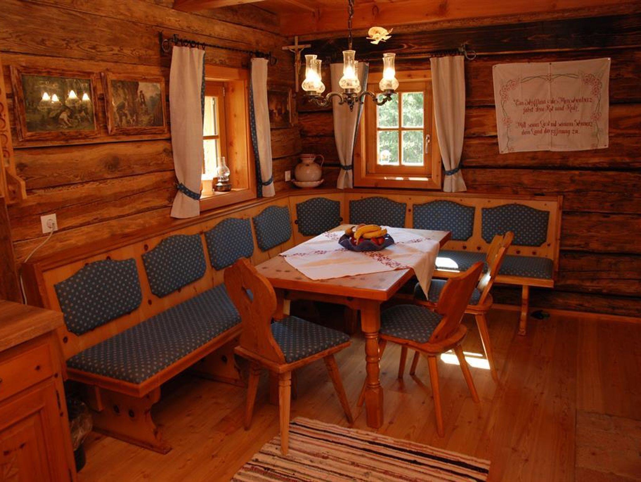 Erholung auf 1680m - komfortables & gemütliches Ambiente Im Erdgeschoss befindet sich eine gemütliche Hüttenstube mit Sitzecke und Relaxliege, Küchenteil, Warmwasser,Abwasch und Holzofen. In unmittelbarer Nähe zu dem einzigartigen, aus Zirbenholz angefertigten Doppelzimmer befindet sich eine Innentoillete , ein kühler Lagerkeller sowie der Badebereich mit einer original finnischen Sauna mit Holzofen und Dusche. Für kuschelige Wärme sorgt eine, von der Hüttenstube befeuerte Zentralheizung. Über dem Vorraum mit Garderobe kommen Sie zum Ausgang mit überdachter Terrasse mit mehreren Sitzplätzen, wo Sie die herrliche Fernsicht über eine einzigartige Bergwelt genießen können. Das Obergeschoss ist mit einem Doppel- und einem Vierbettzimmer ausgestattet. Eine Photovoltaikanlage bietet genügend Strom für den Alltag. Zusätzlich sorgt ein Grillplatz und Brunnen vor der Hütte für die entsprechende Romantik. Die Müllnerhütte ist eine Selbstversorgerhütte und ist mit einem PKW auf eigene Gefahr erreichbar. Bettwäsche, Geschirrtücher & Handtücher etc. sind mitzubringen.