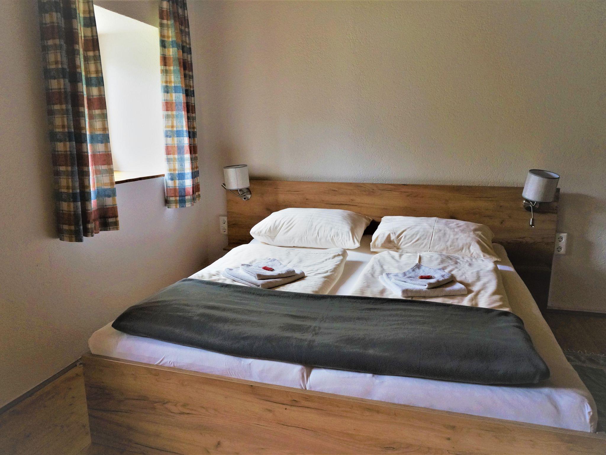 Enzian: Doppelzimmer, DU/WC, gemütlichen Wohnraum mit großem Schlafsofa für zwei Personen, Essecke, TV und Küchenzeile, extra Holzofen, Garten mit Sitzgelegenheiten.