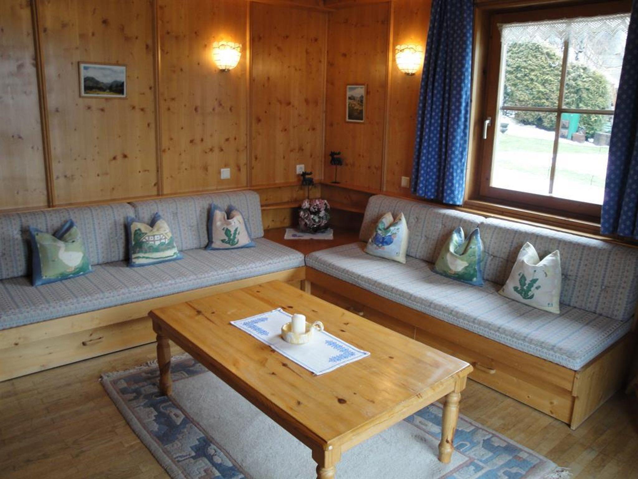 Appartement2 im OG mit Balkon u. Garten ca. 90 m² für max. 8 Personen: 1 grossräumige WohnKüche (mit Geschirrspüler, Kaffeemaschine) 1 gemütliches Wohnzimmer in Zirbe (Schlafmöglichkeit), 2 Schlafzimmer, 2 Bäder, 2 Duschen, 2 WC's. Vorraum mit Garderobe. Kostenloser WIFI Anschluß, TV.