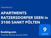 Dieses hochwertig und mit allem ausgestatteten Apartment befindet sich im Norden der niederösterreichischen Landeshauptstadt St. Pölten und nur einen "Steinwurf" entfernt von dem einzigartigen Naherholungsgebiet und Badeparadies "Ratzersdorfer Seen" mit seinem vielfältigen Sport- und Freizeitangebot.