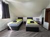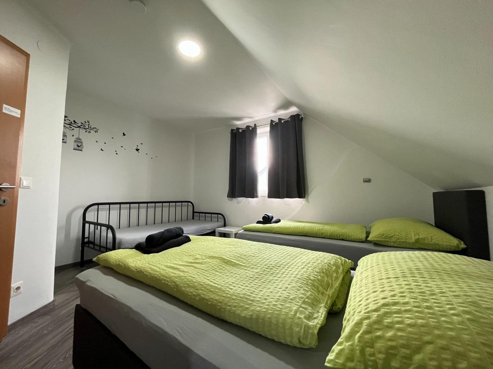 Im Apartment befinden sich ausschließlich hochwertige Einzelbetten (6 Boxspringbetten) sowie 2 stabile Gästebetten aus Metall(90 x 200 cm). Die Boxbetten können jeweils zu einem großen Kingsize-Bett zusammengestellt werden ohne "Besucherritze".
