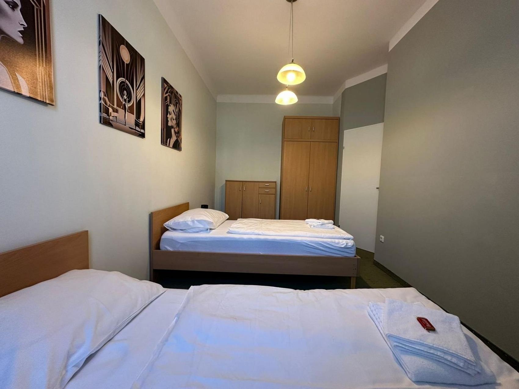 Ihr Hotel-Apartment Nr. 016 im Erdgeschoss mit eigenem Wohnungseingang im Hotelhof hat 2 Schlafräume und eine große Wohnküche mit Duschbad und separatem WC. Es stehen insgesamt 4 Einzelbetten zur Verfügung, welche auch ganz bequem zu je 2 großen Doppelbetten (Kingsize) zusammengeschoben werden können. Ideal für 2 befreundete Paare oder Familie mit 2 Kindern und auch für Langzeitaufenthalt oder als Dienstwohnung hervorragend geeignet.