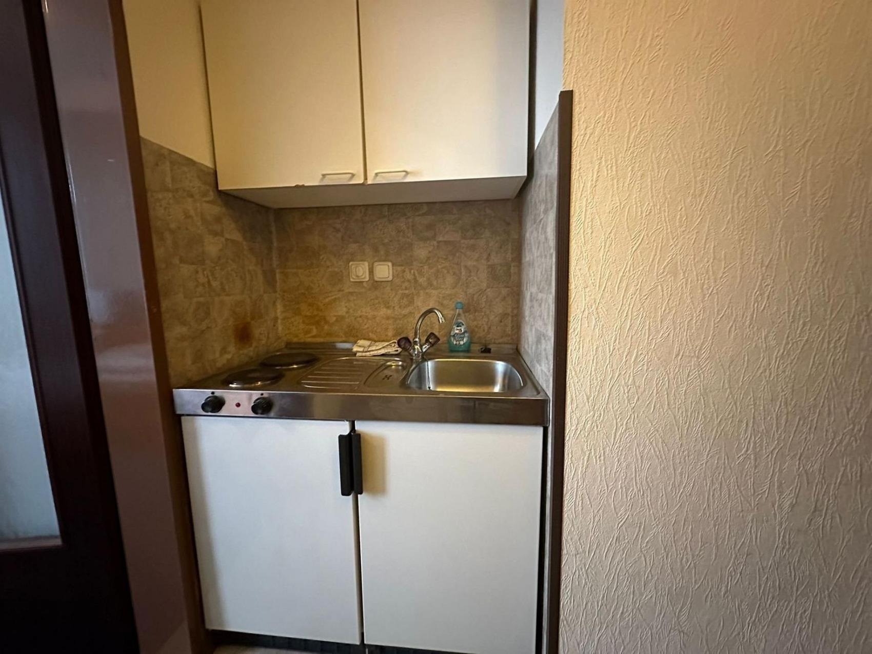 Ihr Einzelzimmer Nr. 111 im 1. Stock mit einem Vorraum ist ausgestattet mit einem Einzelbett, Schreibtisch TV, WLAN, Duschbad/WC sowie einer Miniküche. Das Pensionszimmer befindet sich zur verkehrberuhigten Seitenstraße, Die schalldichten Fenster sorgen zusätzlich für eine angenehme Nachtruhe.