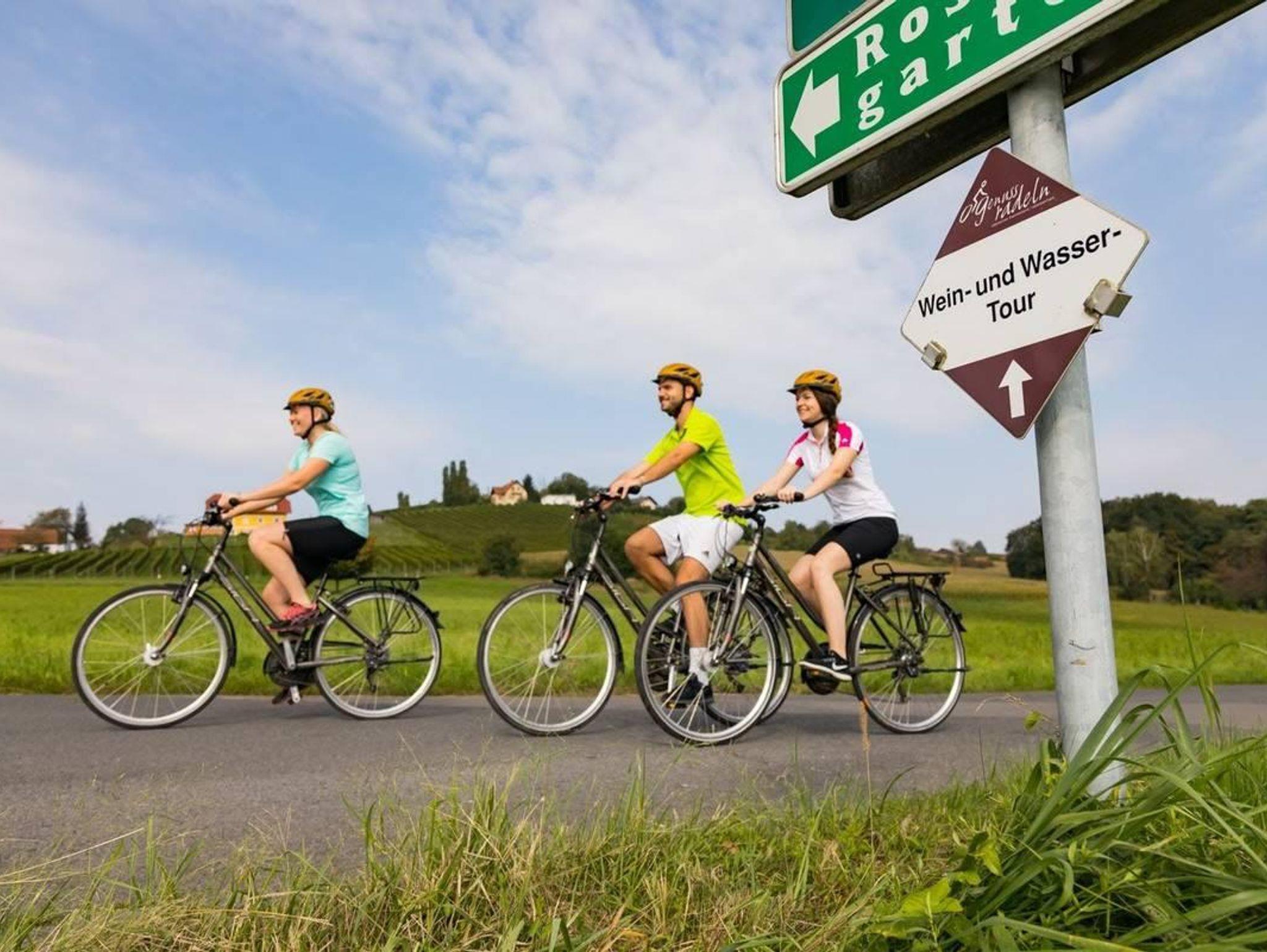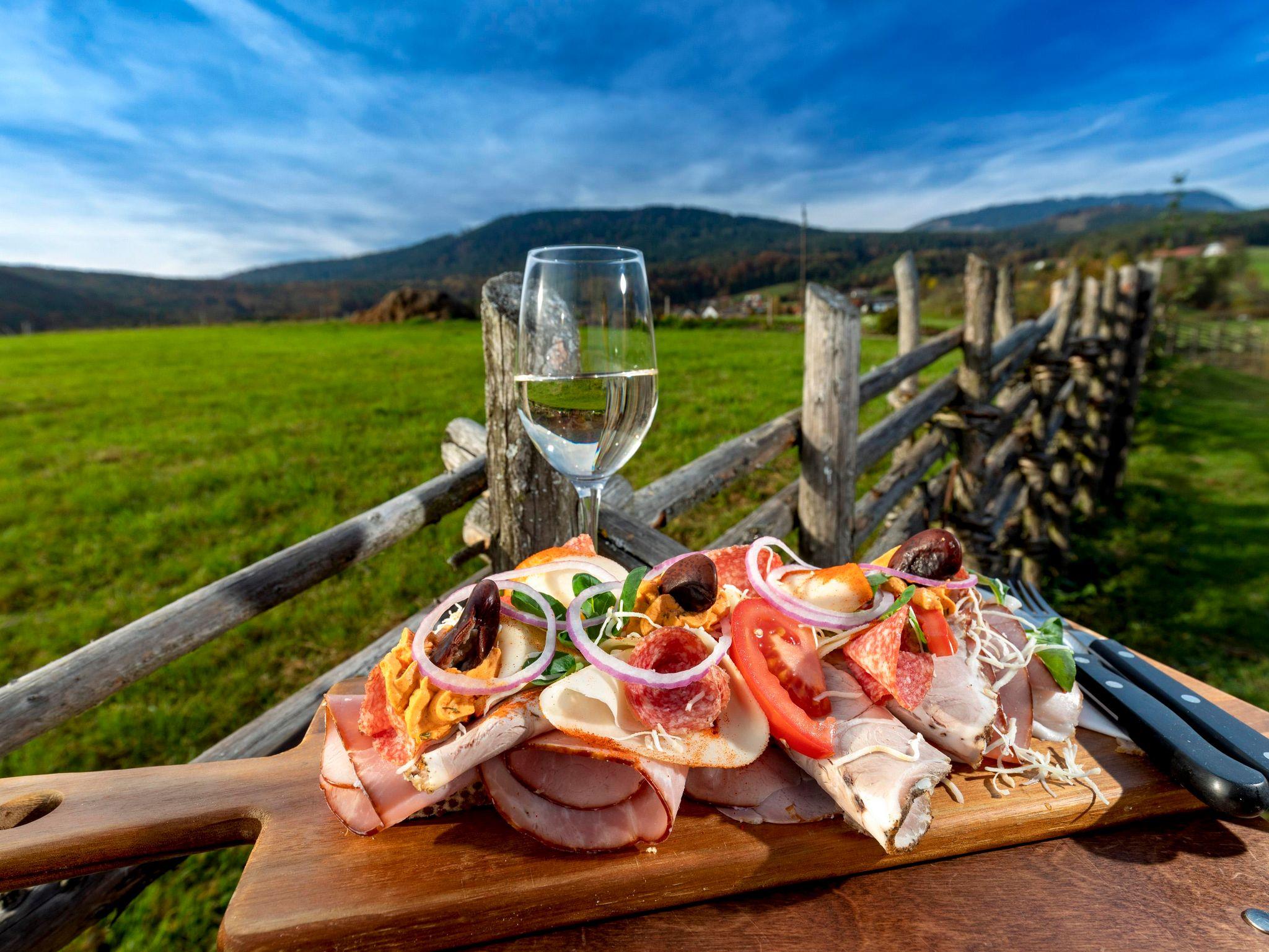 Wir bieten Buschenschank gleich nebenan, eine Fasslsauna, ein beheizbares Schaffelbad, einen Naturbadeteich und einen E-Bike Verleih an.