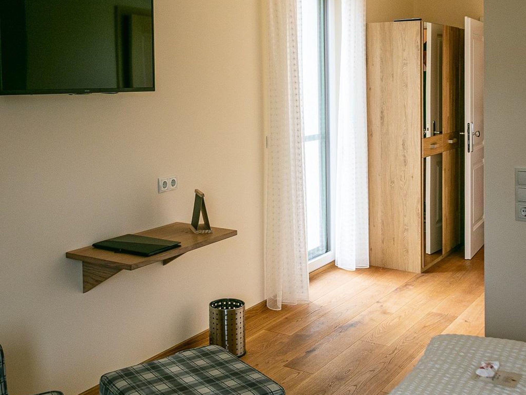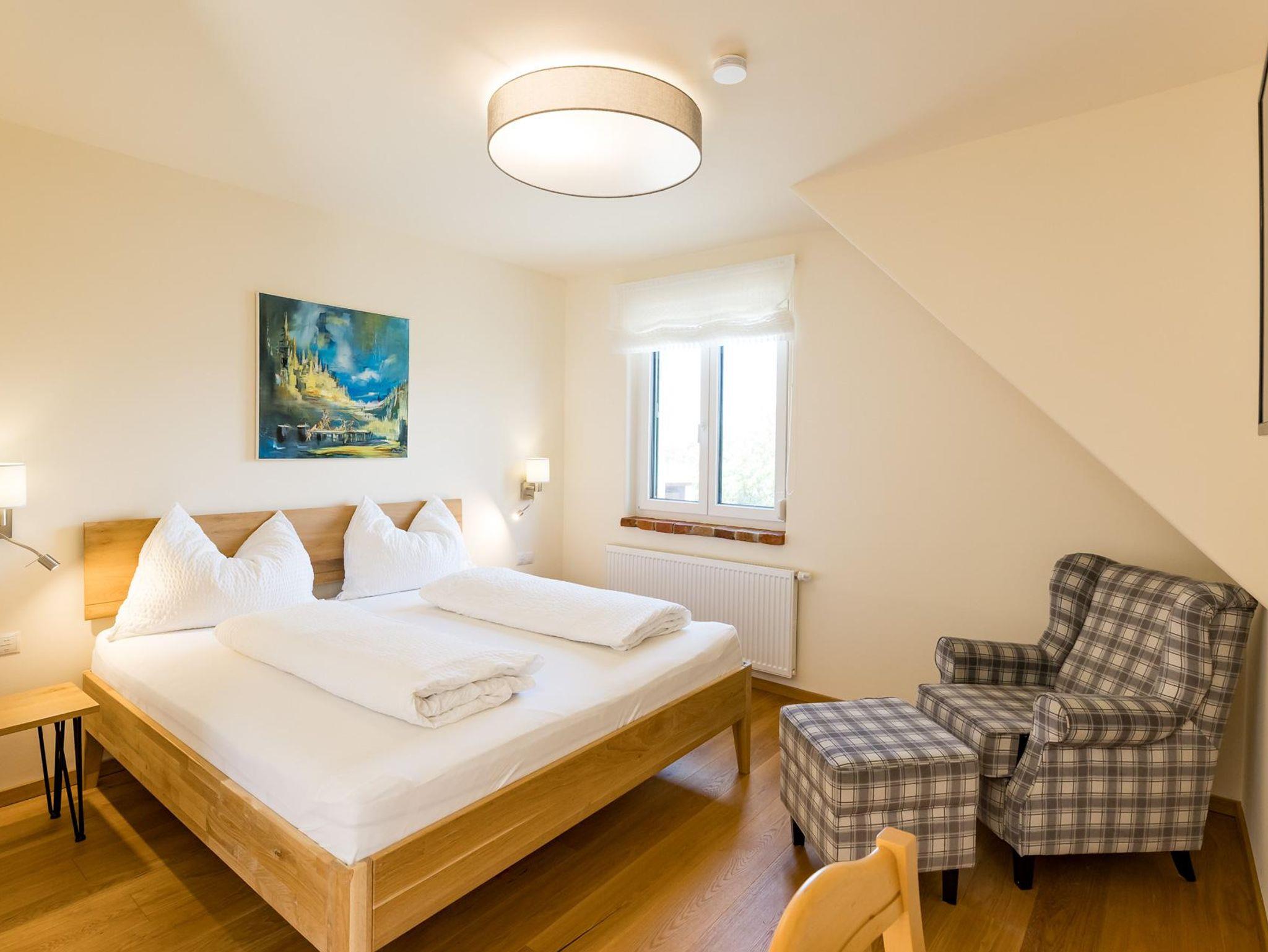Das Zimmer befindet sich im 1. Stock und verfügt über ein Doppelbett, eine Sitzmöglichkeit, Fernseher, kostenlosem W-LAN sowie Badezimmer mit getrenntem WC.