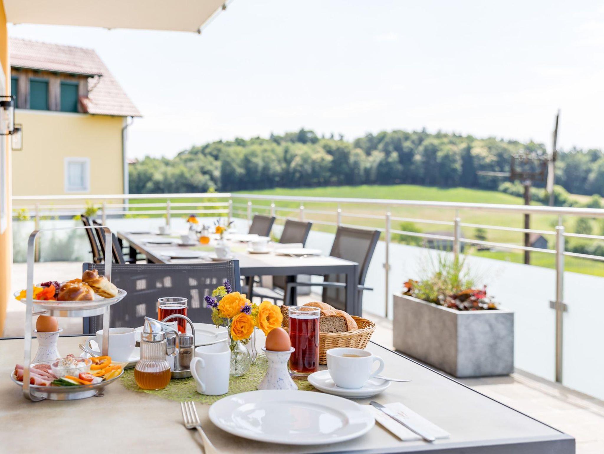 Genießen Sie dieses liebevoll eingerichtete 25 m² große Doppelzimmer inkl. Terrasse mit einer traumhaften Aussicht. Hier können Sie in die Ferne bis nach Slowenien blicken und dabei zur Ruhe finden.