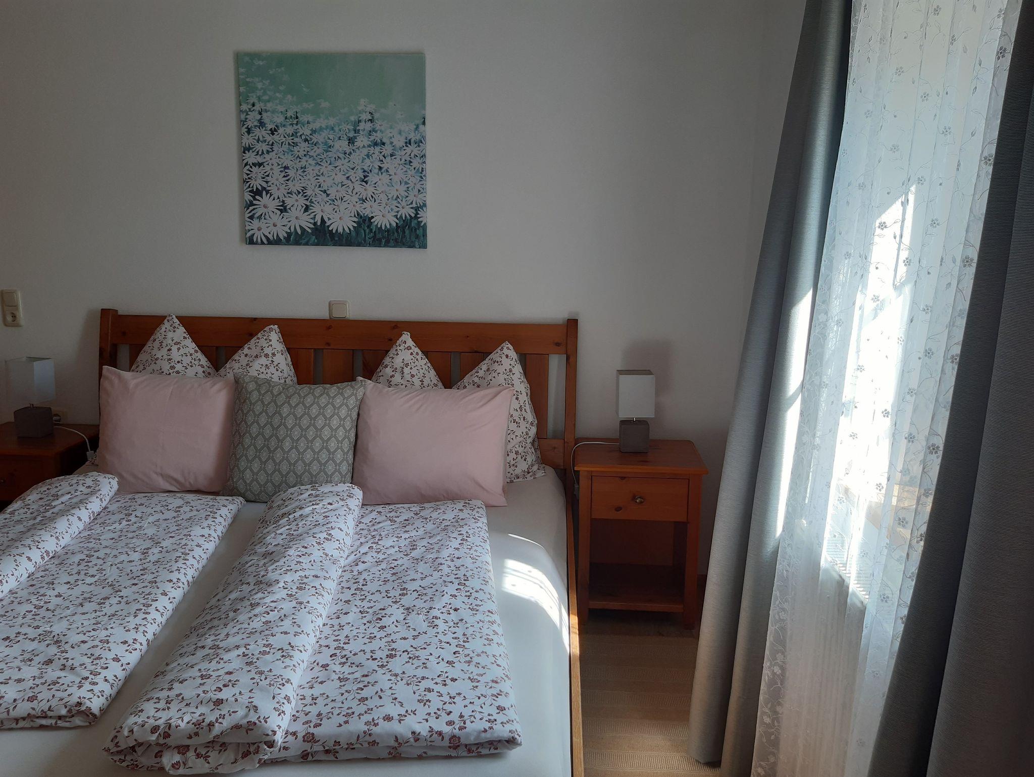 Ferienwohnung Freithofberg: Wohlfühlen und Wohnen auf 60m² im Obergeschoß für 1 bis 5 Personen am **** Nussbaumerhof - 2 Schlafzimmer mit je einem Doppelbett - 1 Zusatzbett möglich (komfortables ausziehbares Schlafsofa im Wohnbereich) - Bettwäsche ist Teil der Ausstattung - Schränke mit ausreichend Stauraum - Vorraum mit Garderobenschrank und großen Spiegel - Badezimmer mit großzügiger Dusche, Waschbecken und Föhn - Hand-und Duschtücher sind Teil der Ausstattung - vollausgestattete Küche mit E-Herd, Backrohr, Kühlschrank mit Gefrierfach, Filterkaffeemaschine oder Cremesso- Kapselkaffeemaschine, Wasserkocher, Eierkocher, Toaster, Mixer, Microwelle, Geschirr, Küchenpaket (mit Spülmittel, Küchenrolle, Kaffeefilter, Spültuch, Schwamm und Geschirrtücher) - Teebar - offener Wohn-Küche-Essbereich - Esstisch mit gemütlicher Eckbank - Flachbildschirm - Radio - kostenloses W-LAN - Gitterbett auf Anfrage gratis - Parkplatz neben dem Haus - Im liebevoll angelegten Garten kann man gut entspannen und schöne Grillabende verbringen. Haustiere sind gegen Aufpreis herzlich Willkommen.
