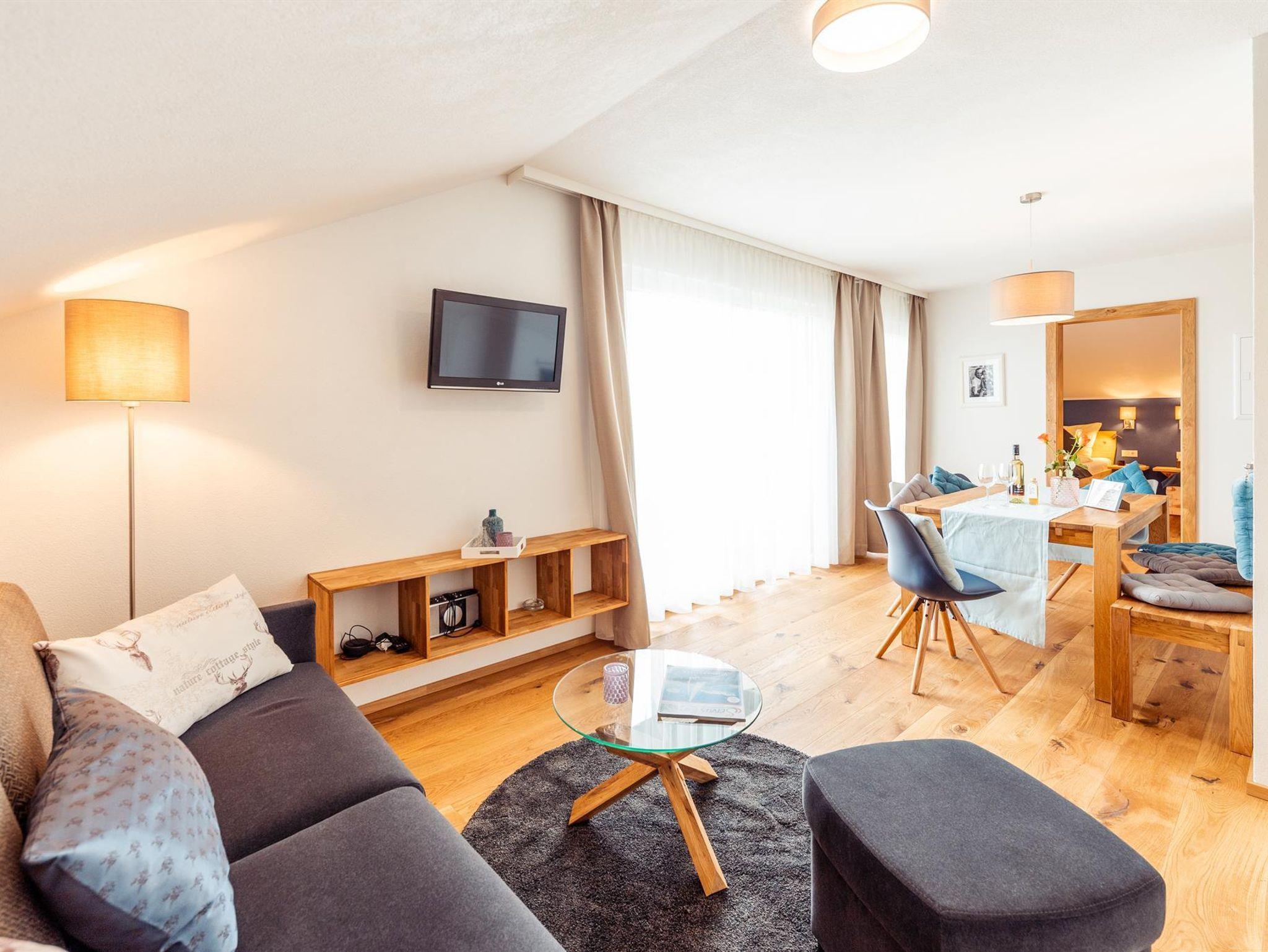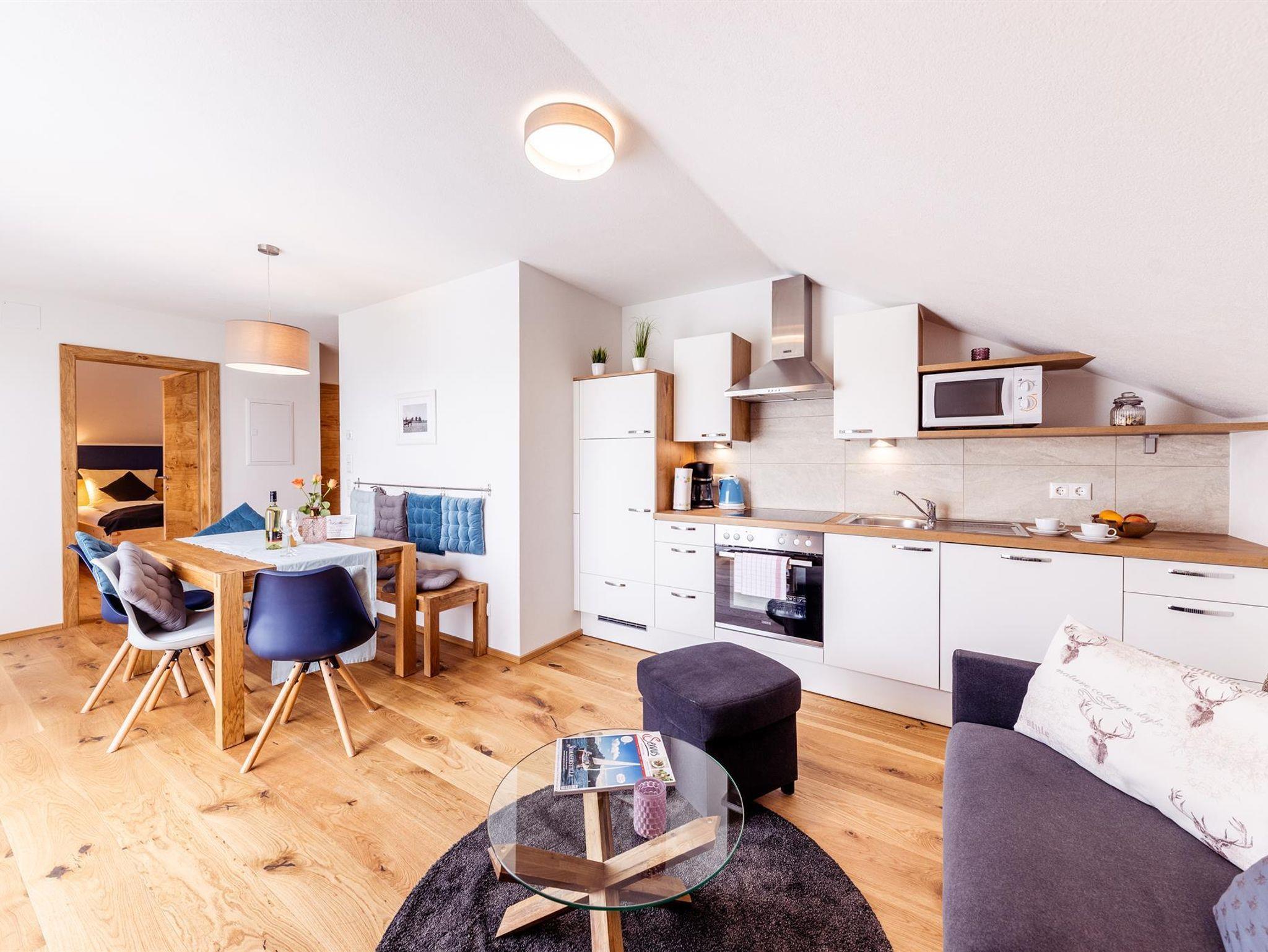 Unsere Apartment Sonnegger See ist ideal für größere Familien mit bis zu 4 Kindern oder Freundesgruppen. Hier genießt ihr einen kleinen West-Balkon sowie einen hellen Wohn-Essbereich mit einer großen Ausziehcouch, zwei separate Schlafzimmer mit zusätzlich Platz für ein Gitterbett. Überdies ist die Küche voll ausgestattet. In den Schlafzimmern finden sie Zirben-Vollholzmöbel.