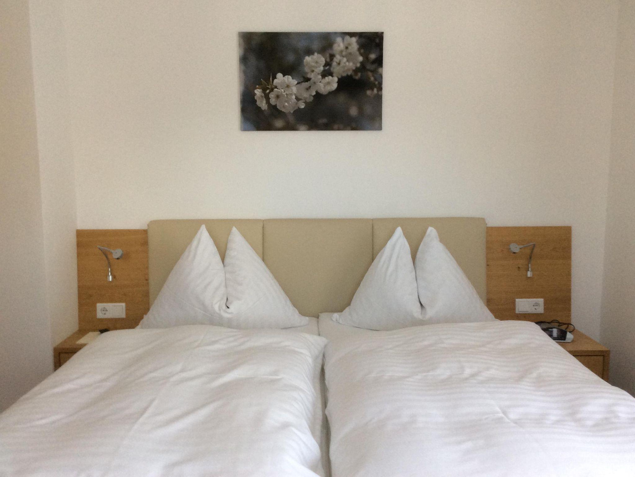 Modern eingerichtetes Doppelzimmer mit Dusche/WC, Sitzecke, Flachbildschirm mit Kabel-TV, freies W-Lan, Radiowecker, Fön, Balkon.