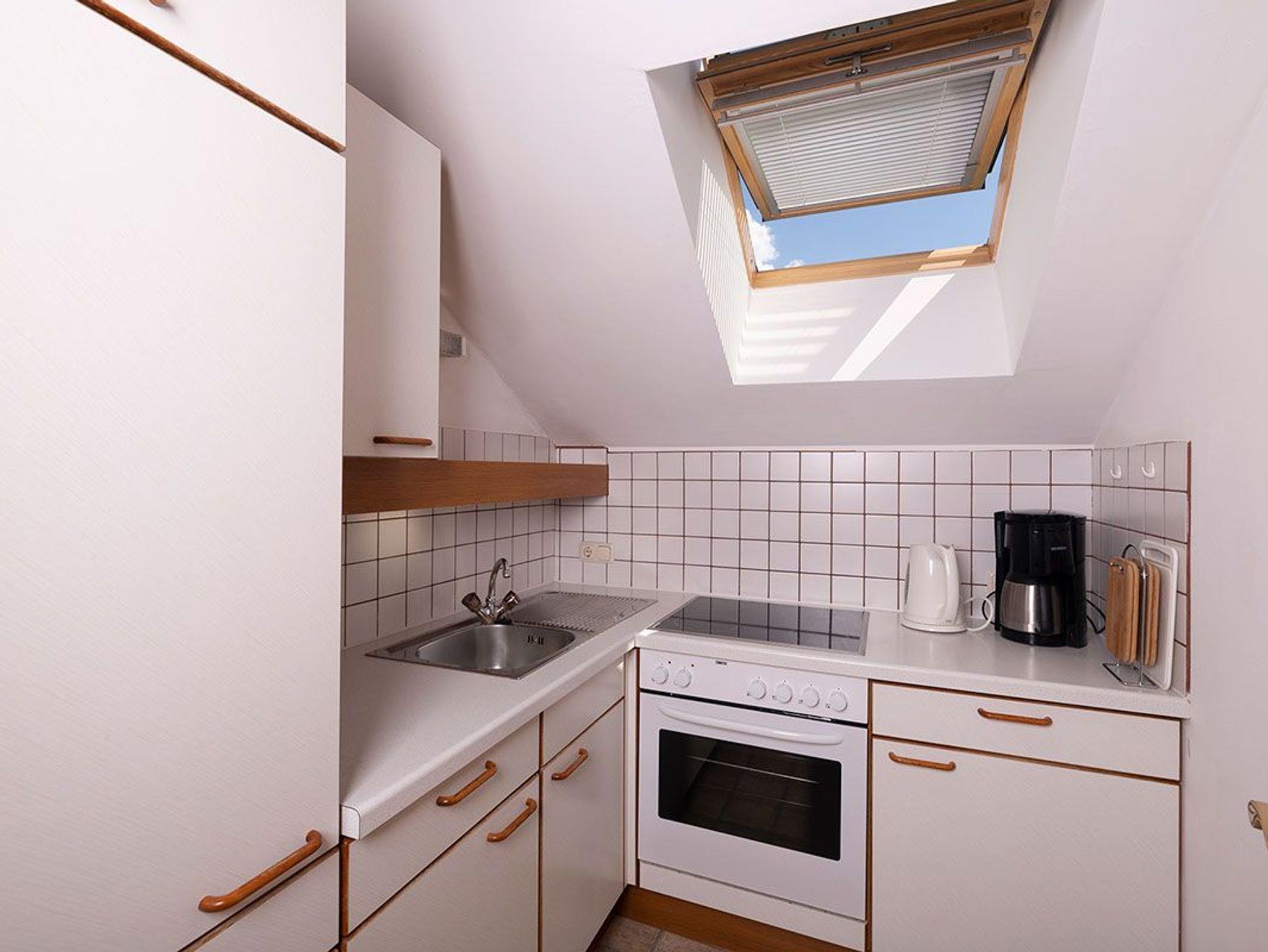 Das Apartment befindet sich im obersten Stockwerk der Altroit und ist mit Dusche, separatem WC, komplett eingerichteter Küche, einer Sitzgelegenheit, einer Wohnlandschaft mit Sat-Tv und einem separaten Schlafzimmer ausgestattet.
