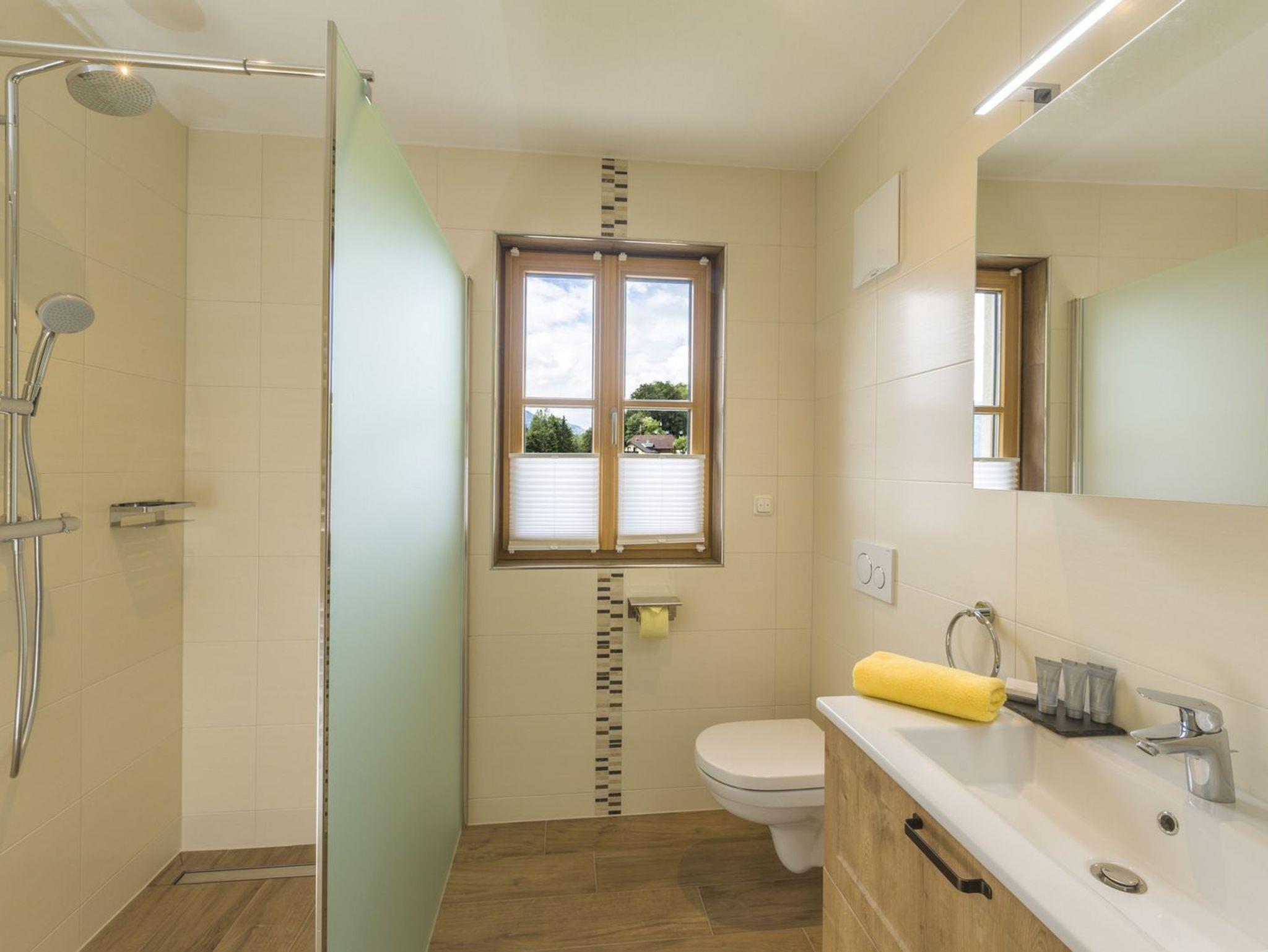 Das Apartment befindet sich im ersten Stockwerk des Gästehauses und wurde mit Altholz-Elementen gestaltet ? eine Mischung aus Tradition und Moderne. Es verfügt über ein separates Zimmer mit Ausziehcouch. Das exklusive Badezimmer wurde mit Walk-In-Dusche, Touch-Radio und WC eingerichtet. Im Apartment ?Schwarzensee? finden Sie außerdem eine komplett eingerichtete Küche inklusive Geschirrspüler, ein Wohnzimmer mit Wohnlandschaft, eine Sitzecke, einen Elektrokamin und HD-Flachbildferseher vor. Nächtigen werden Sie im gemütlichen Boxspringbett, von dem aus Sie das Treiben am See beobachten können.