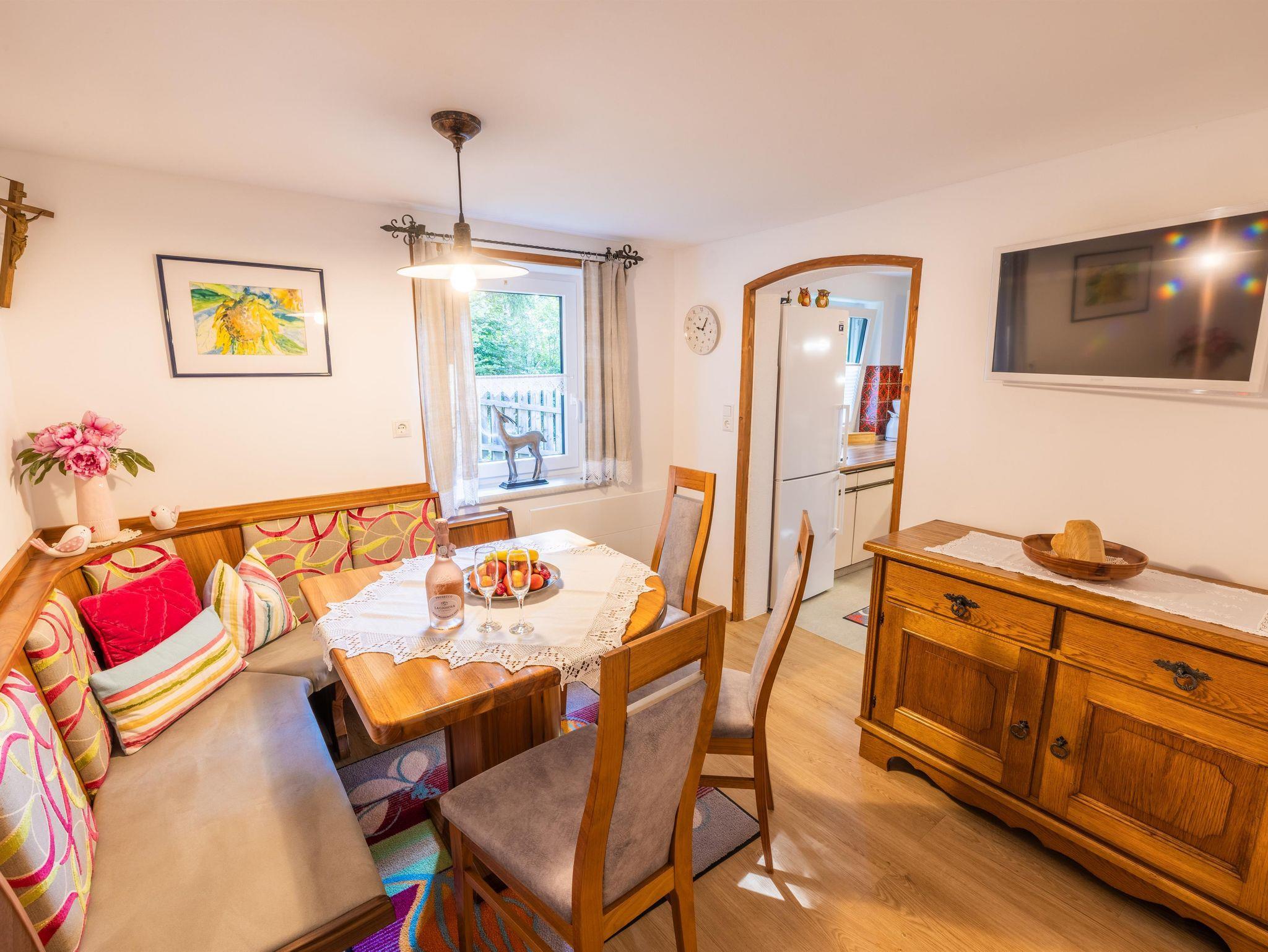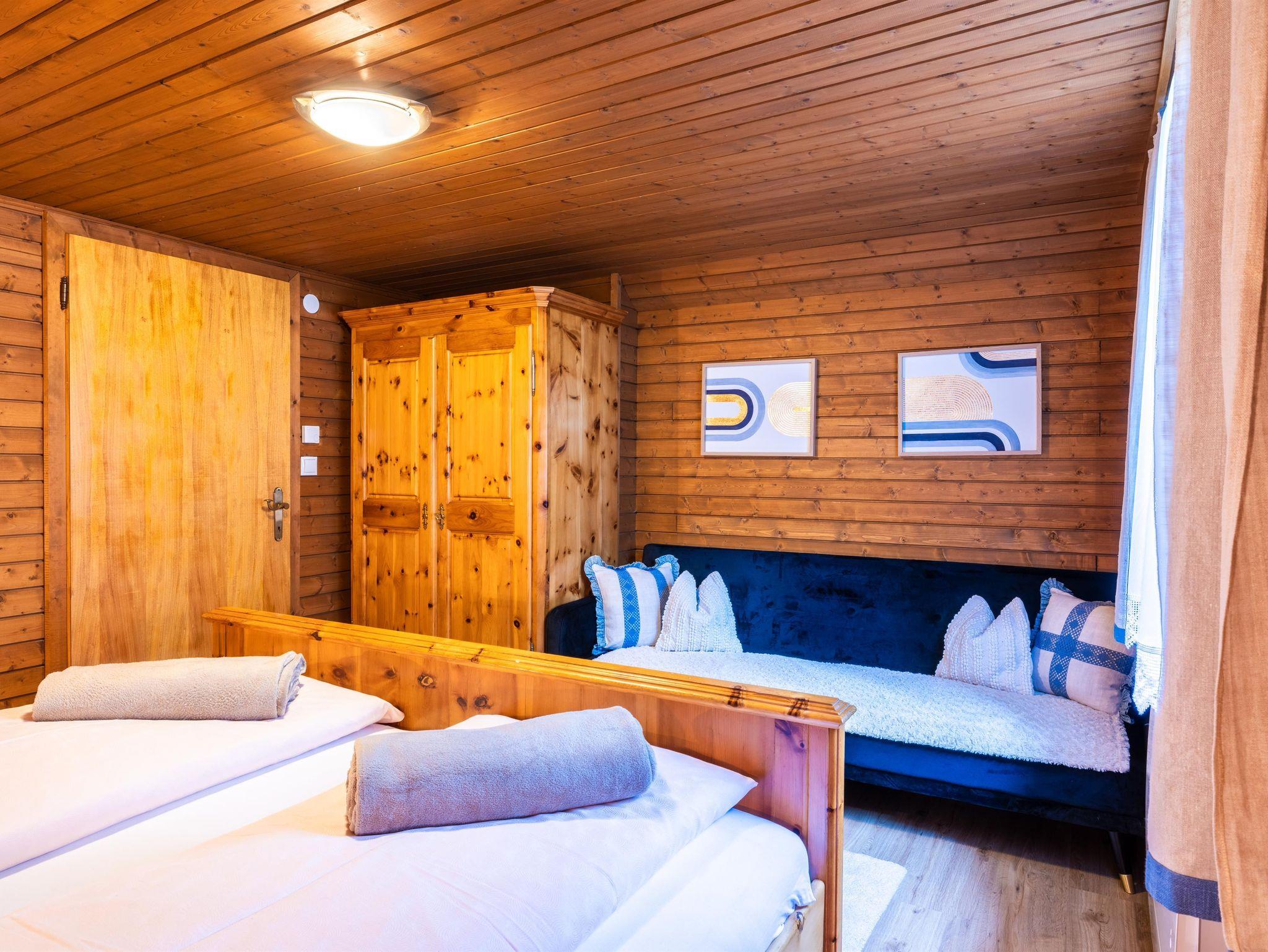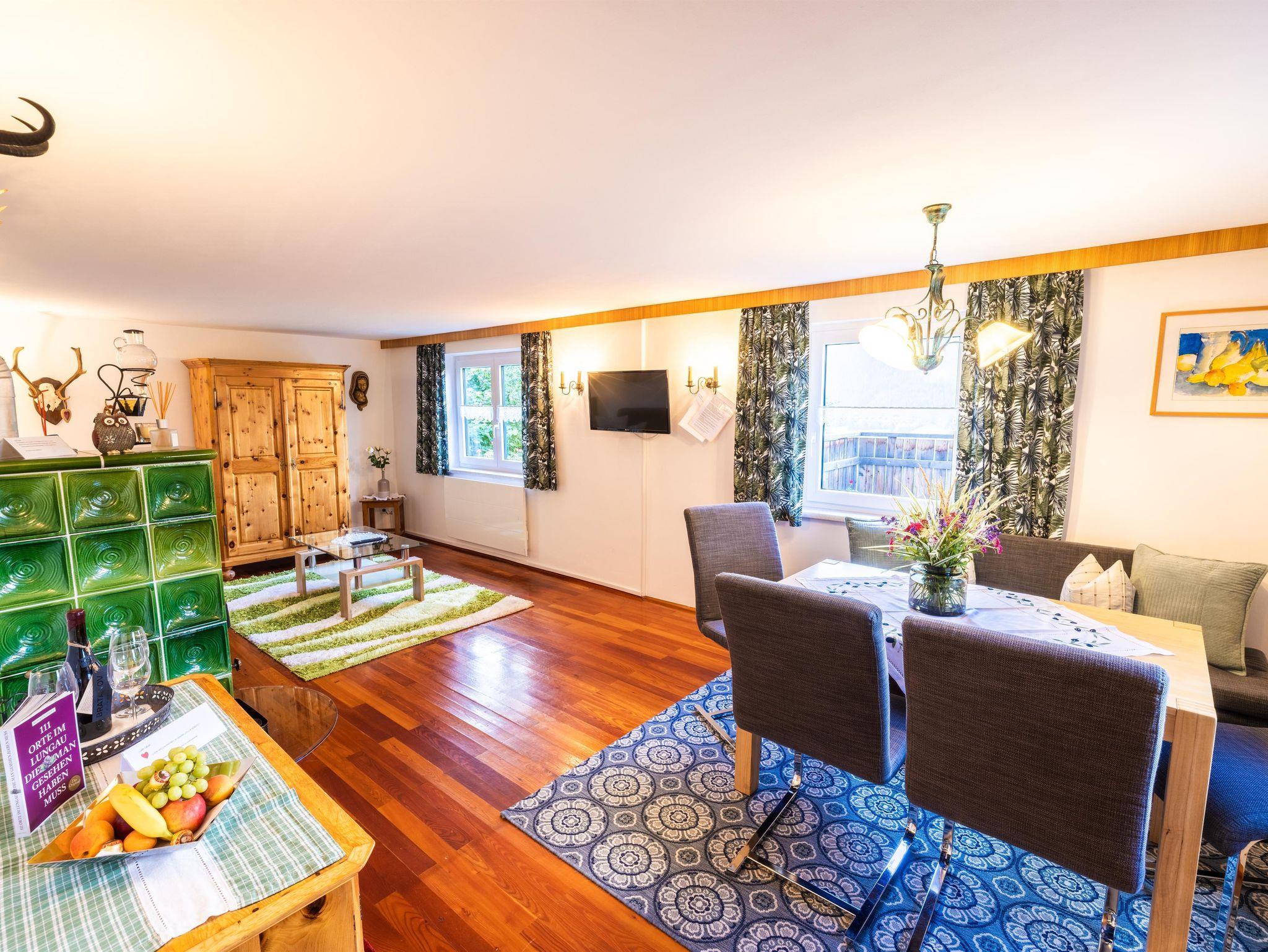 Es bietet Platz für 4 Personen, verfügt über eine komplett eingerichtete Küche mit separatem Esszimmer, zwei Schlafzimmer mit Doppelbetten, ein neues Badezimmer mit Dusche + WC, sowie ein gemütliches Wohnzimmer mit Kachelofen.