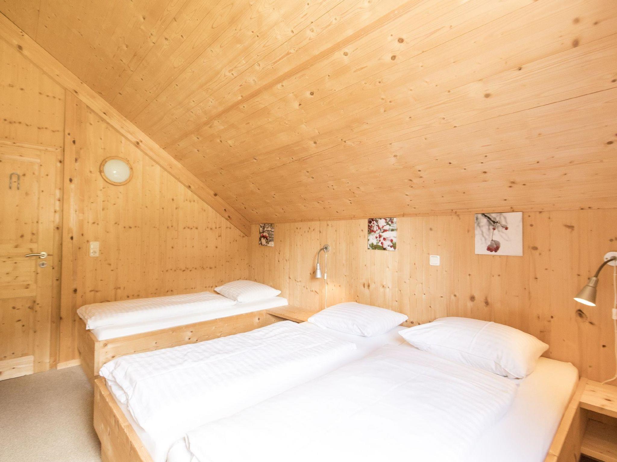 " 139 mit 4 Schlafzimmern & Sprudelbad", 5-room chalet 100 m2. Bright, partly with sloping ceilings, wooden furniture furnishings: open living/dining room with dining table and satellite TV (flat screen). 3 double bedrooms. 1 room with 3 beds. Open kitchen (oven, dishwasher, 4 ceramic glass hob hotplates, kettle, microwave, electric coffee machine). Bath/WC, shower/WC, 2 sep. WC's. Balcony terrace. Terrace furniture. Beautiful view of the countryside. Facilities: Internet (WiFi, free). Please note: non-smokers only. Smoke alarm. The property is one of a type of property or apartment. The chalet has an outdoor hot tub!