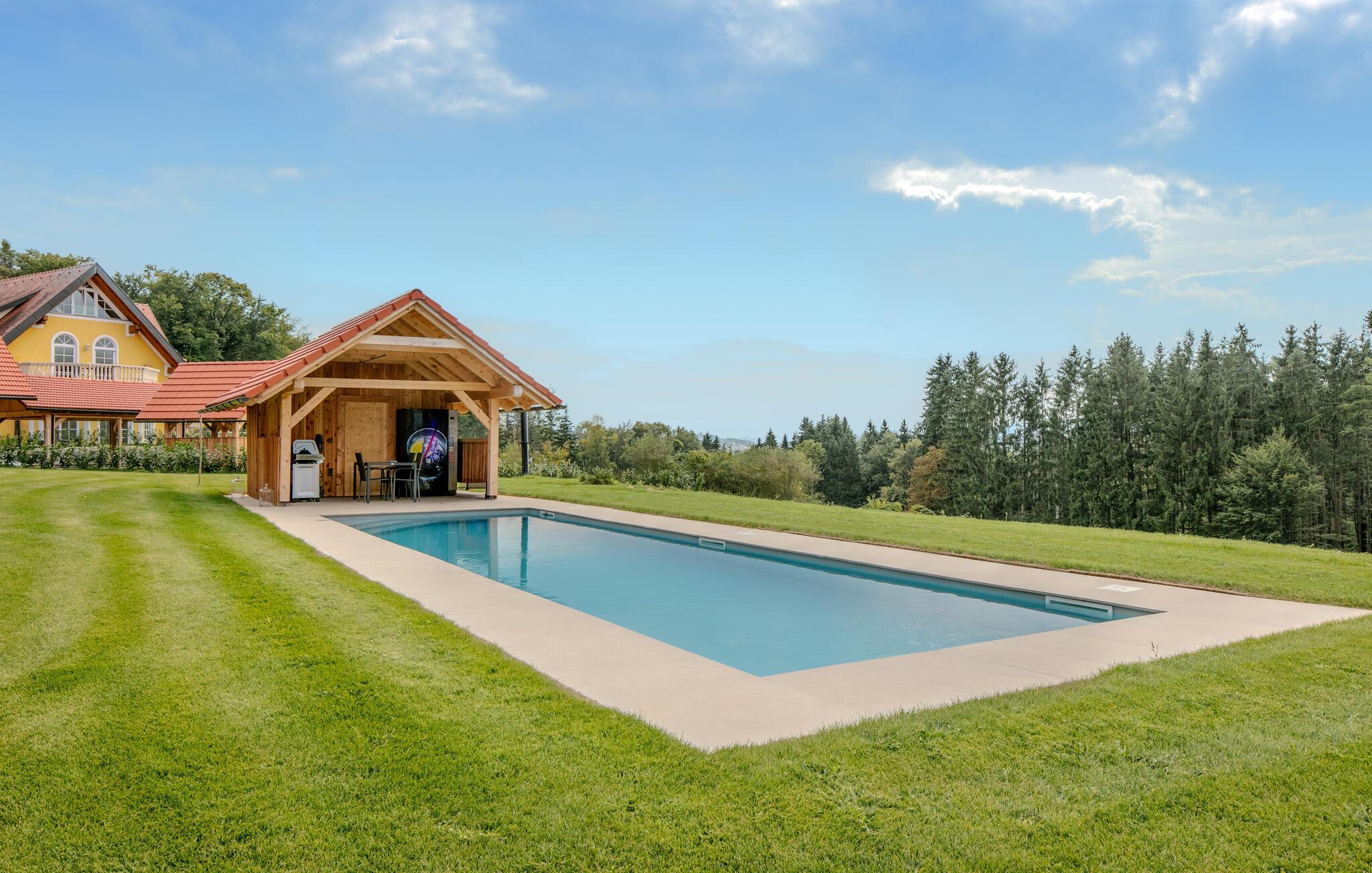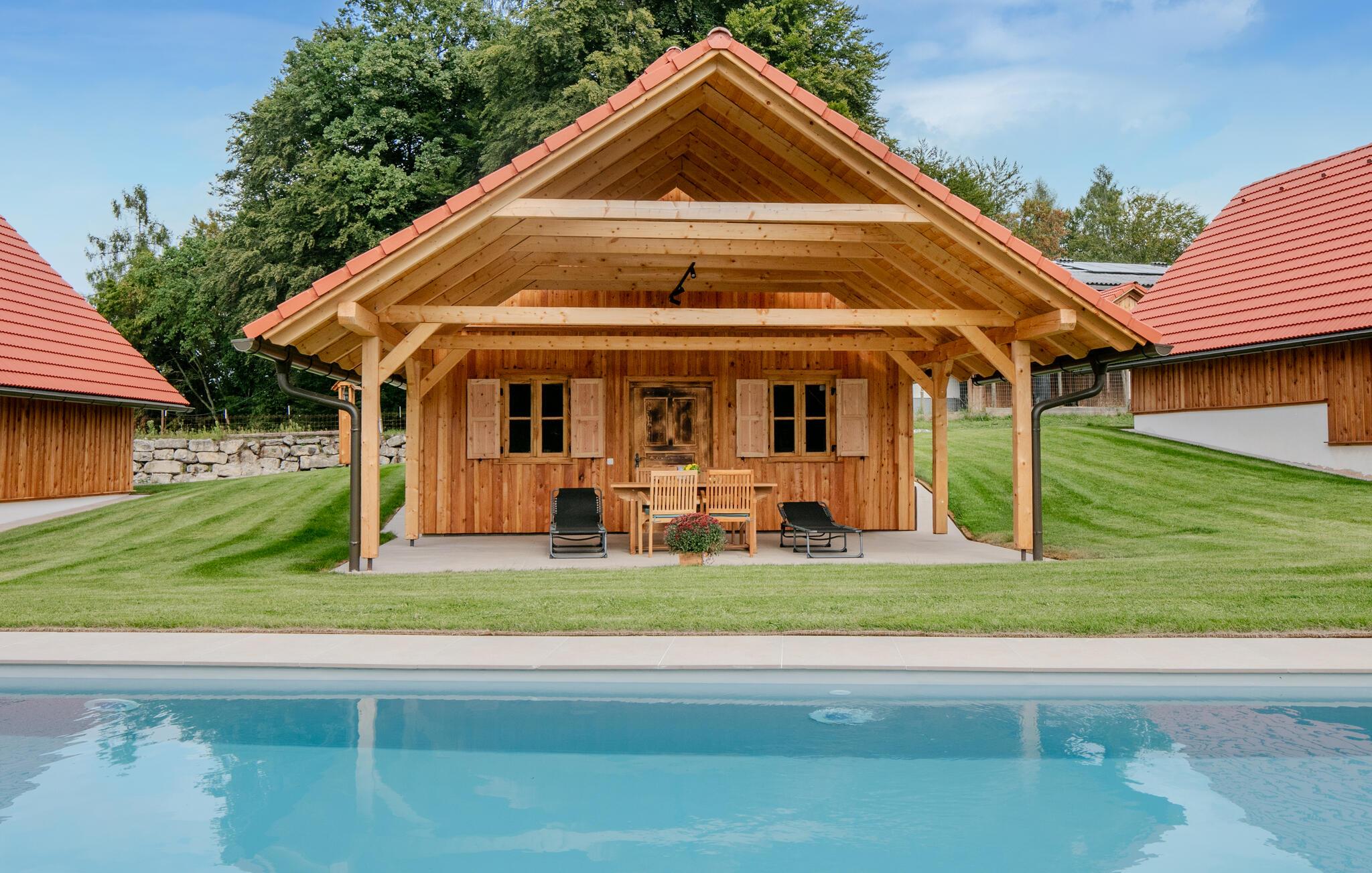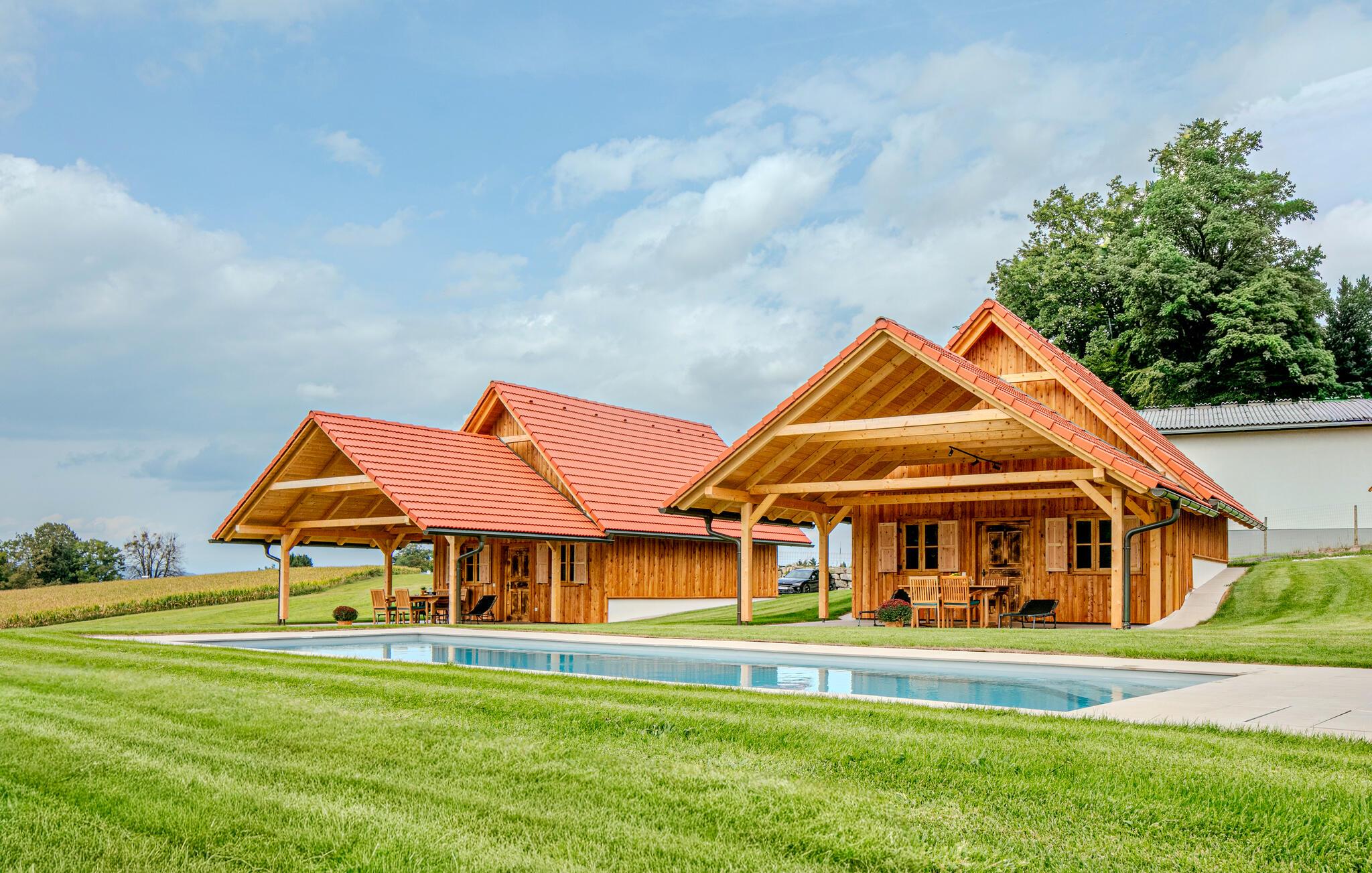Tag en dukkert i den forfriskende fælles pool, spil vandpolo eller svøm blot et par afslappende baner. Nyd naturens ro på terrassen med en kop kaffe eller en god bog. Om aftenen kan I grille bøffer, pølser eller friske grøntsager på den fælles grill, og afslutte dagen med et glas vin i hyggeligt selskab.
