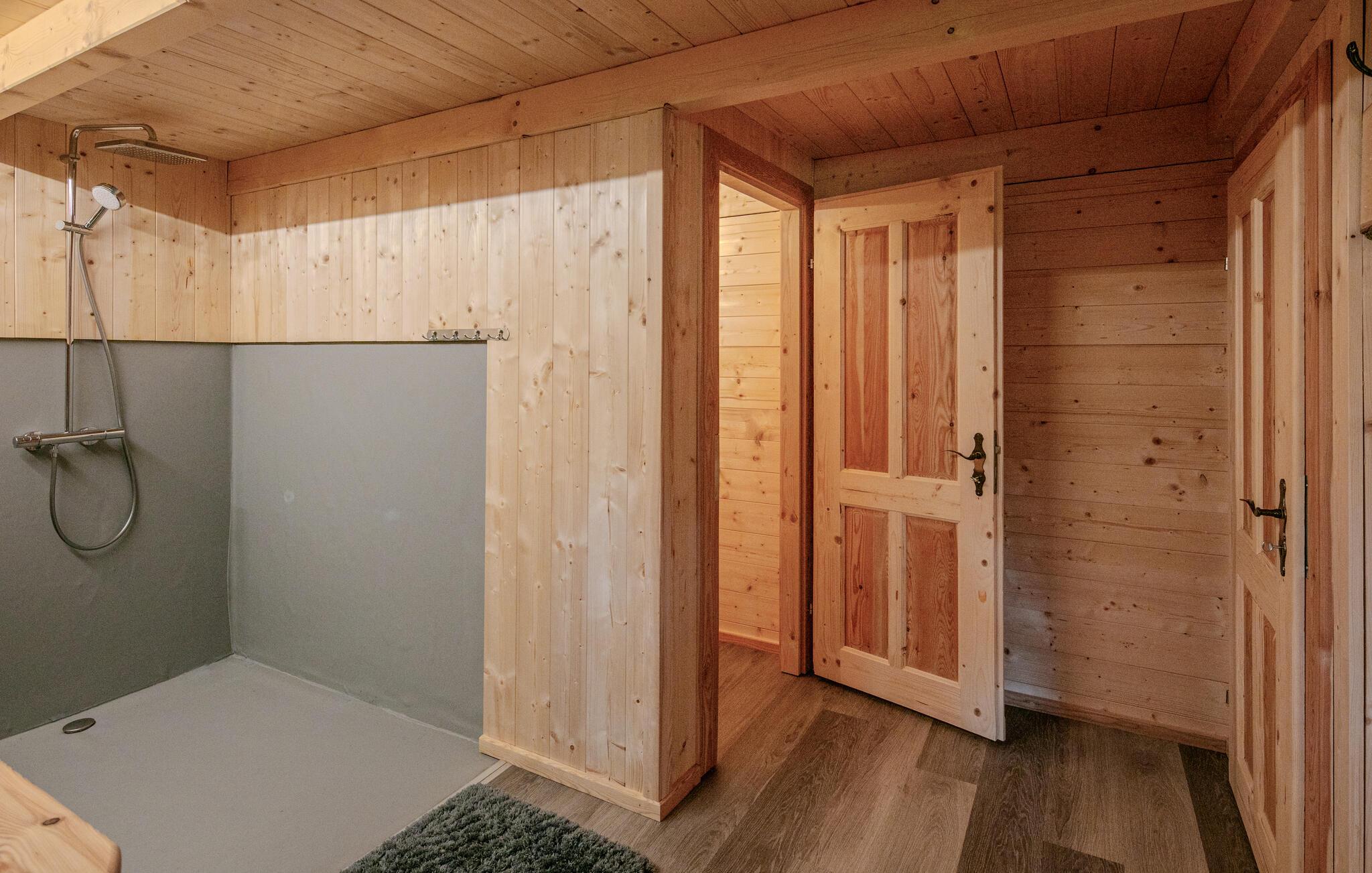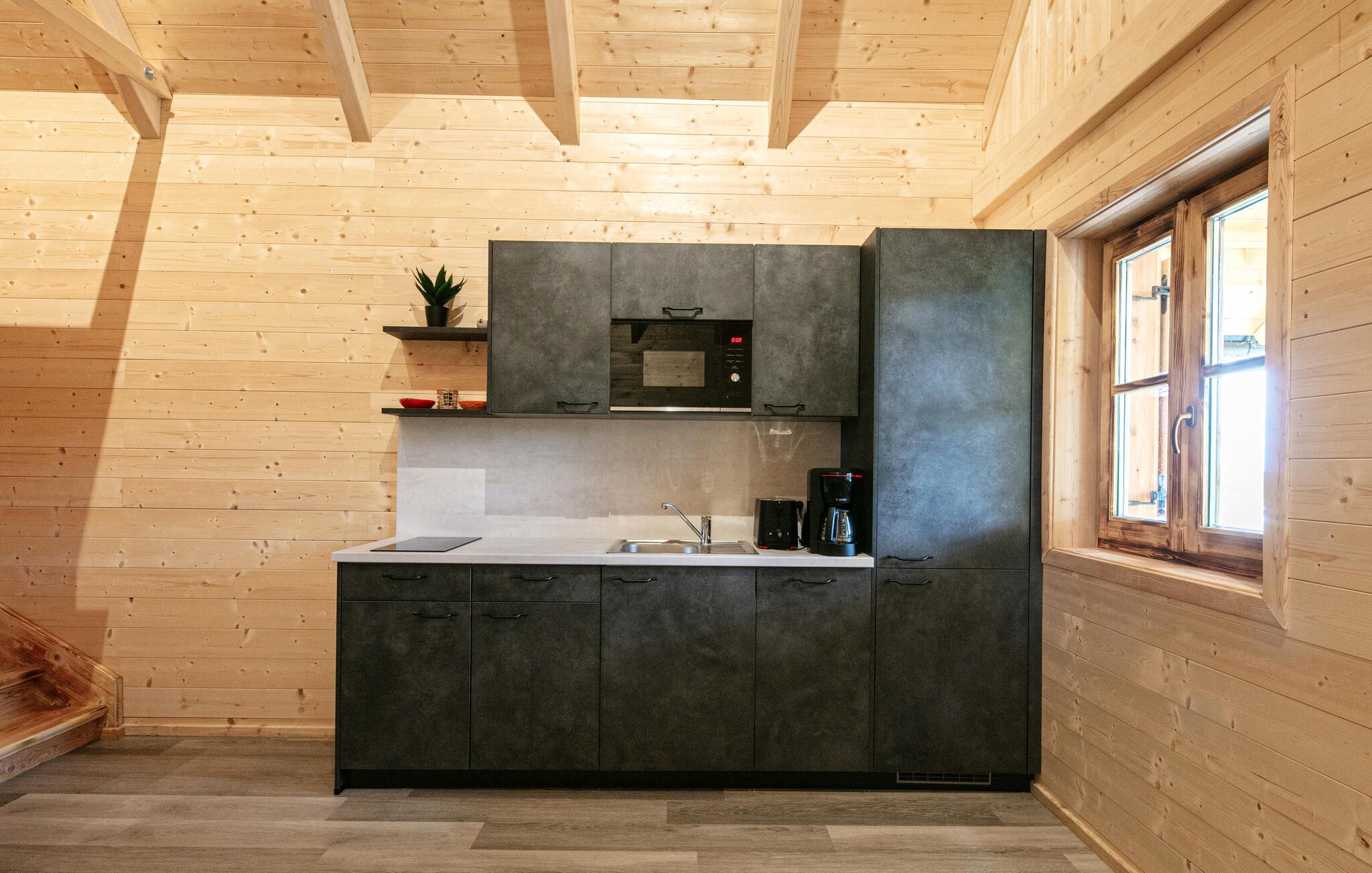 Dette hus kombinerer moderne komfort med rustik charme og skaber en atmosfære, hvor I kan koble fra hverdagen. Lyst træ, et rustikt spisebord og et funktionelt køkken sikrer en hyggelig atmosfære. Uanset om I lytter til musik, streamer en serie eller laver mad sammen – her sætter I tempoet.