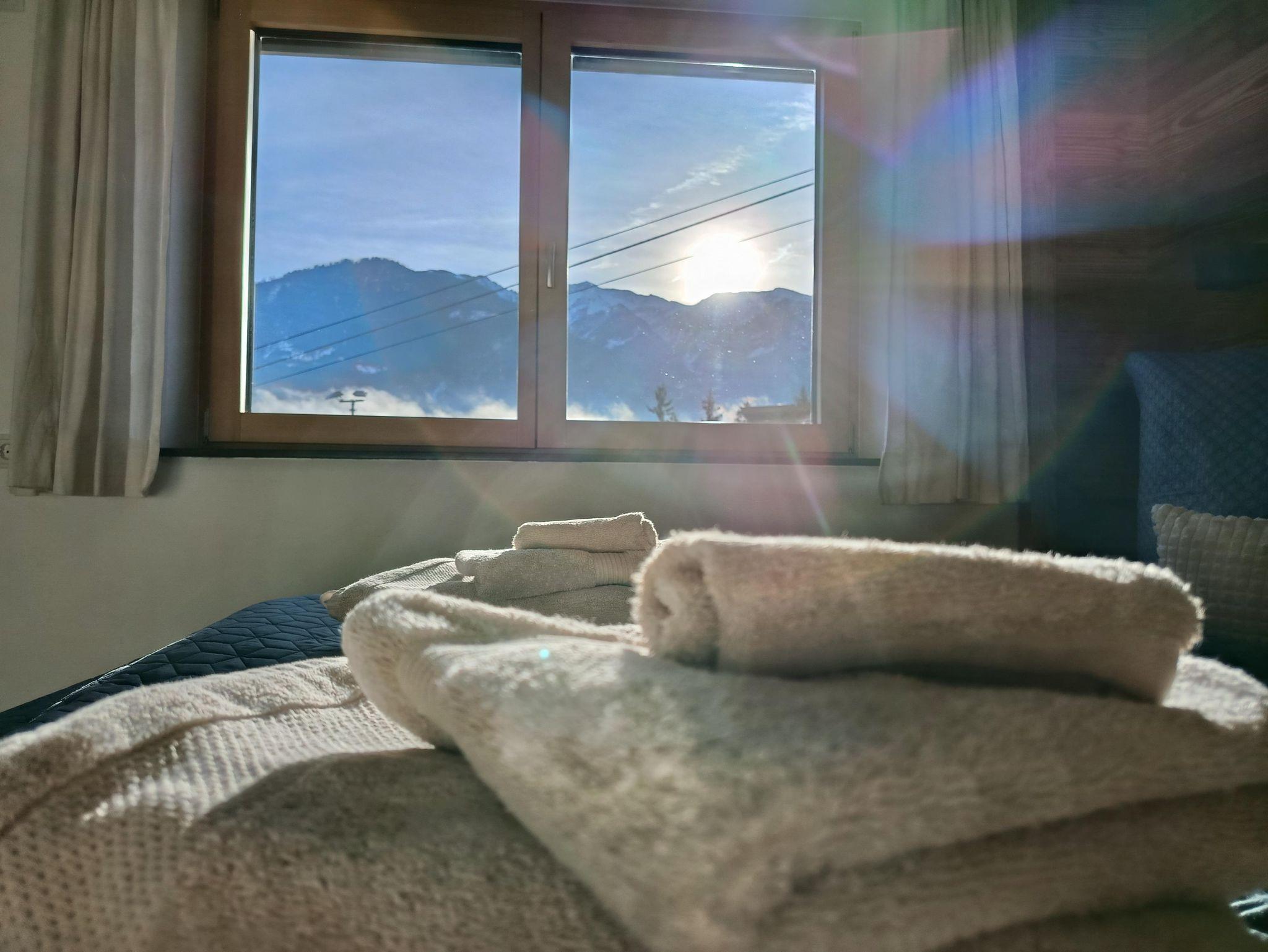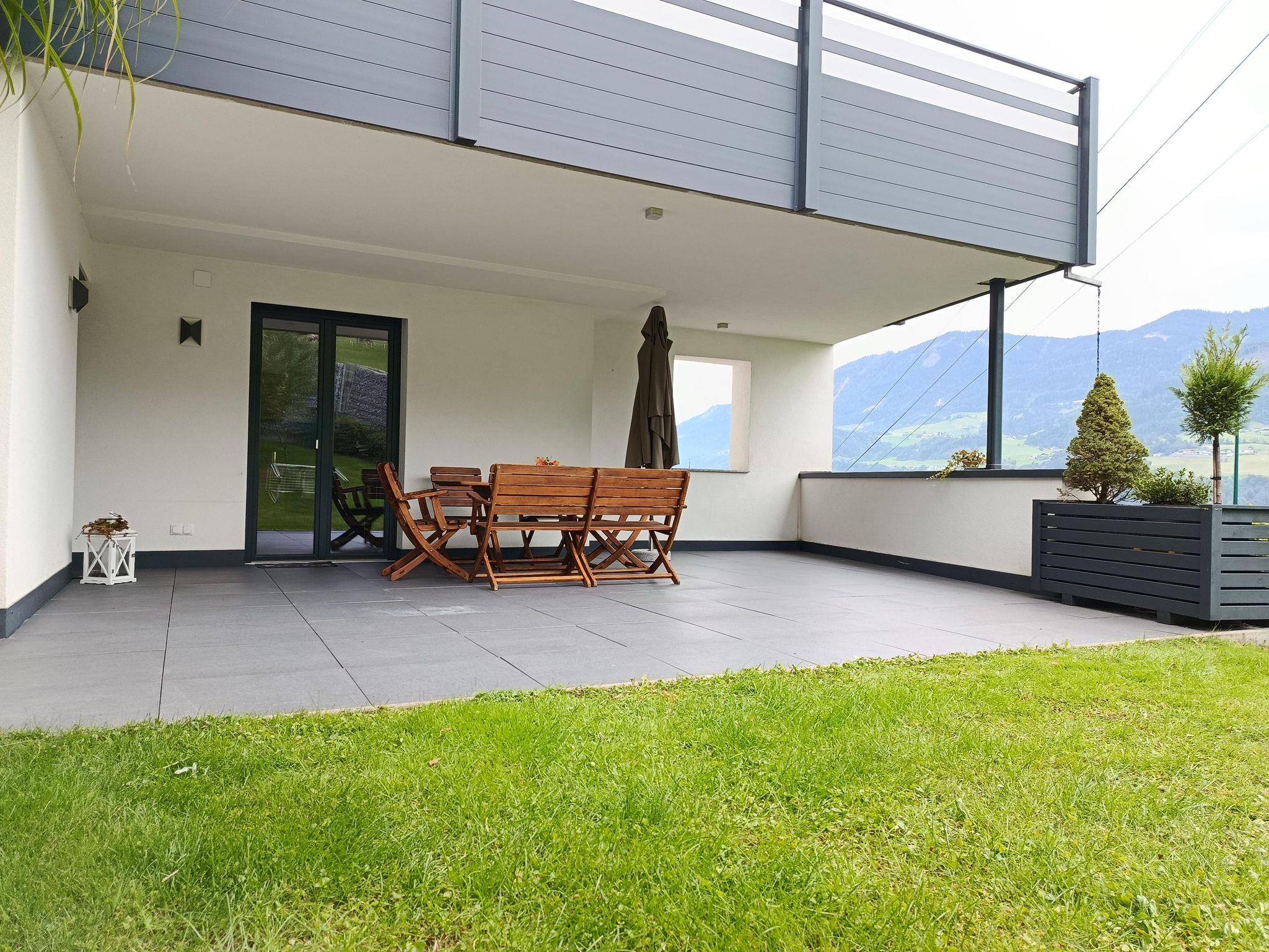 Besonders hervorzuheben ist die großzügige Terrasse, die zum Entspannen und Verweilen einlädt. Genießen Sie den atemberaubenden Blick auf die umliegenden Berge, während Sie in der Sonne entspannen oder abends bei einem Glas Wein den Sonnenuntergang beobachten.