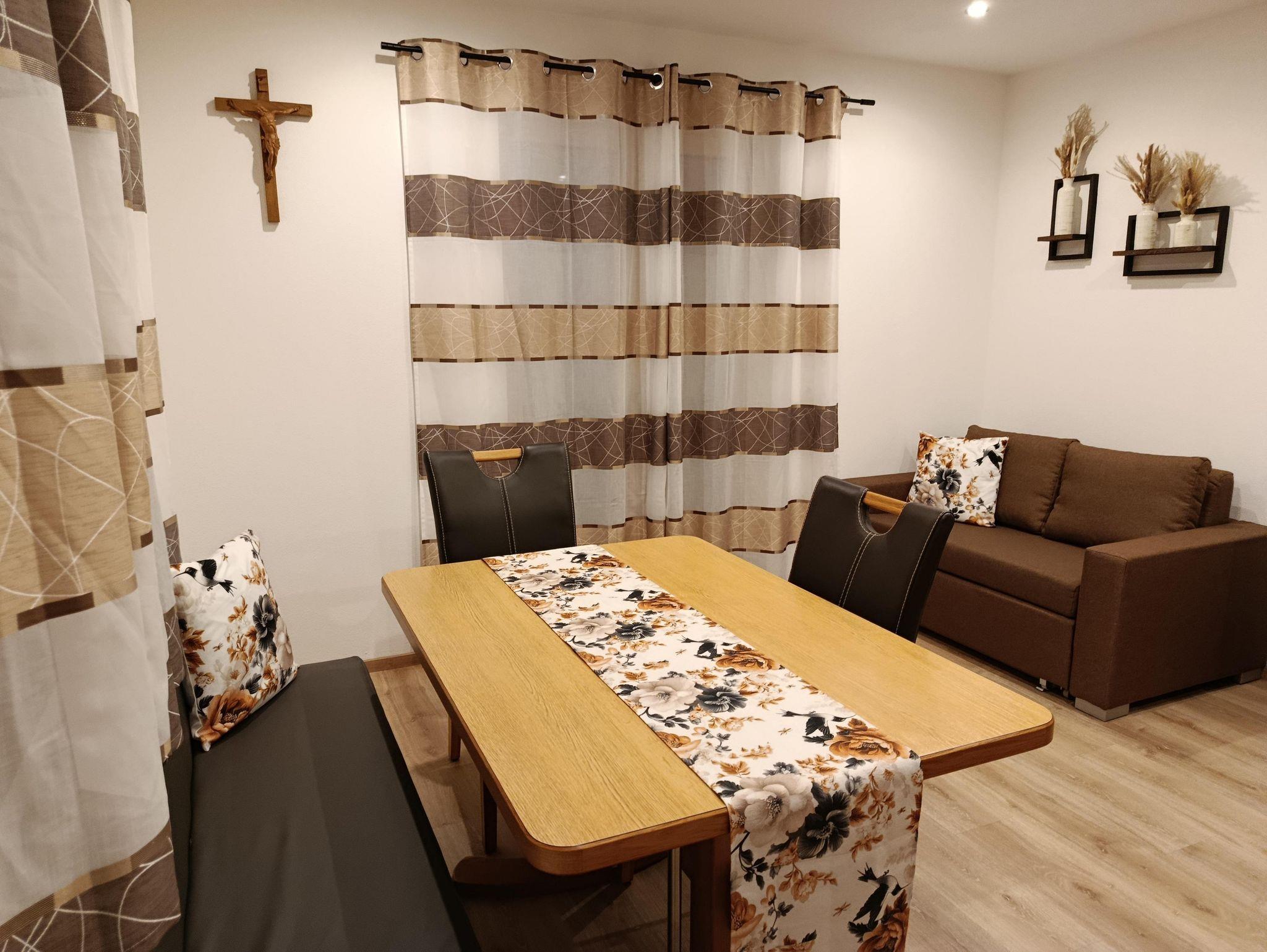 Die moderne und voll ausgestattete Wohnung bietet Platz für bis zu sechs Personen und verfügt über zwei gemütliche Schlafzimmer, ein modernes Badezimmer mit Dusche, ein separates WC und eine komplett eingerichtete Küche.