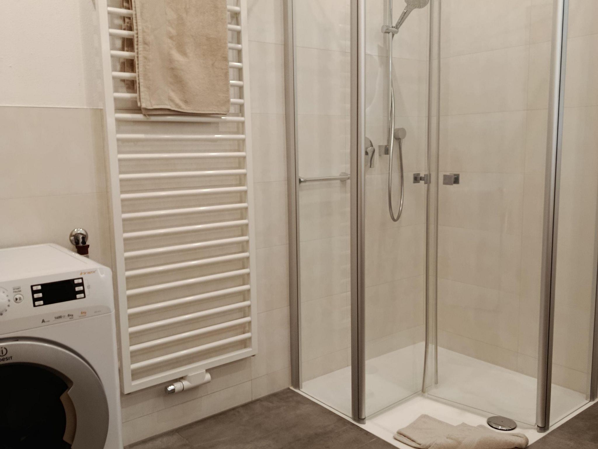Die vollausgestattete Küche umfasst eine moderne Kaffeemaschine, die es Ihnen ermöglicht, frisch gebrühten Kaffee zu genießen – der perfekte Start in den Tag! Das Badezimmer ist mit einer Dusche sowie einer Waschmaschine ausgestattet. Zusätzlich gibt es ein separates WC für noch mehr Komfort.
