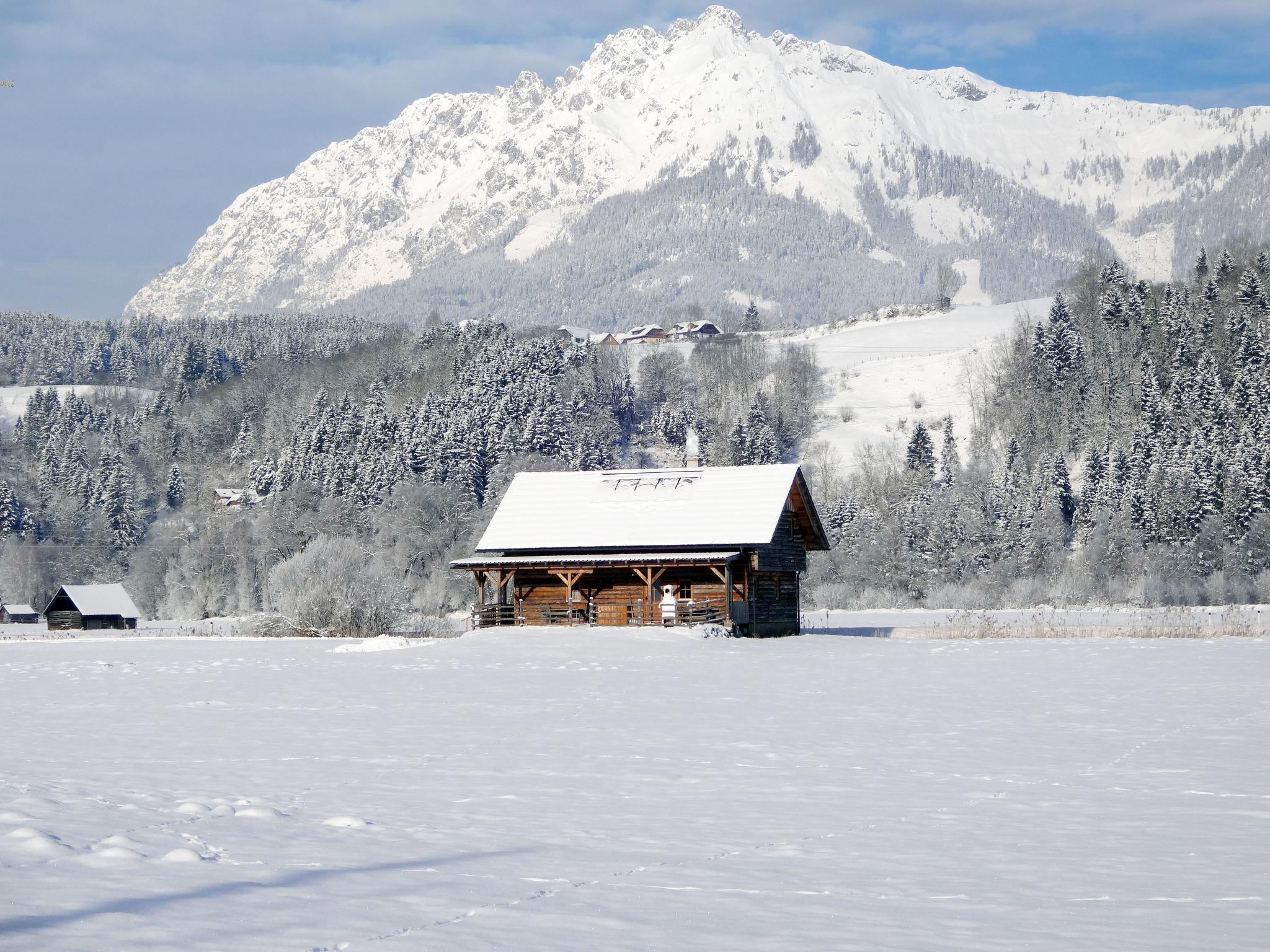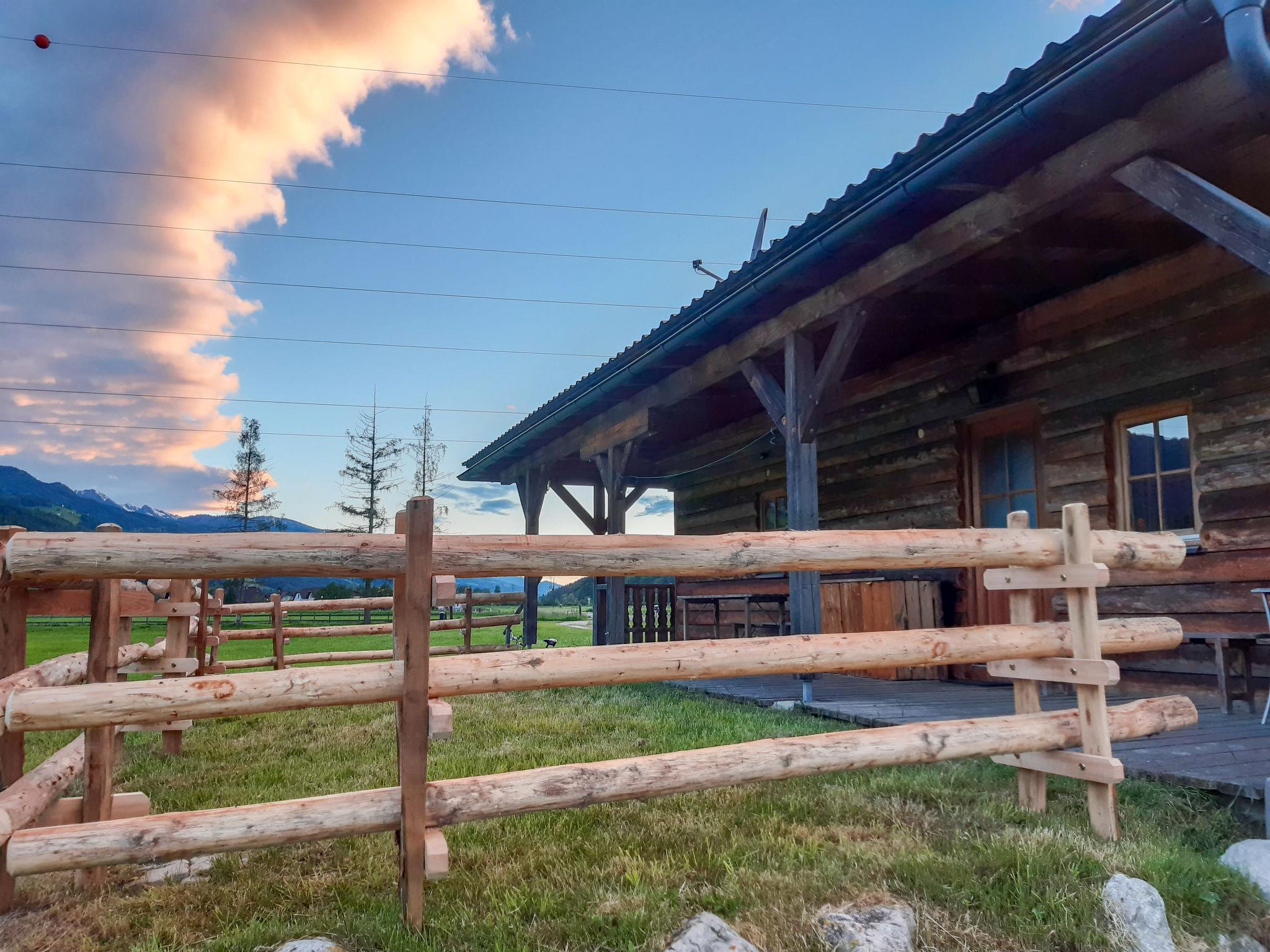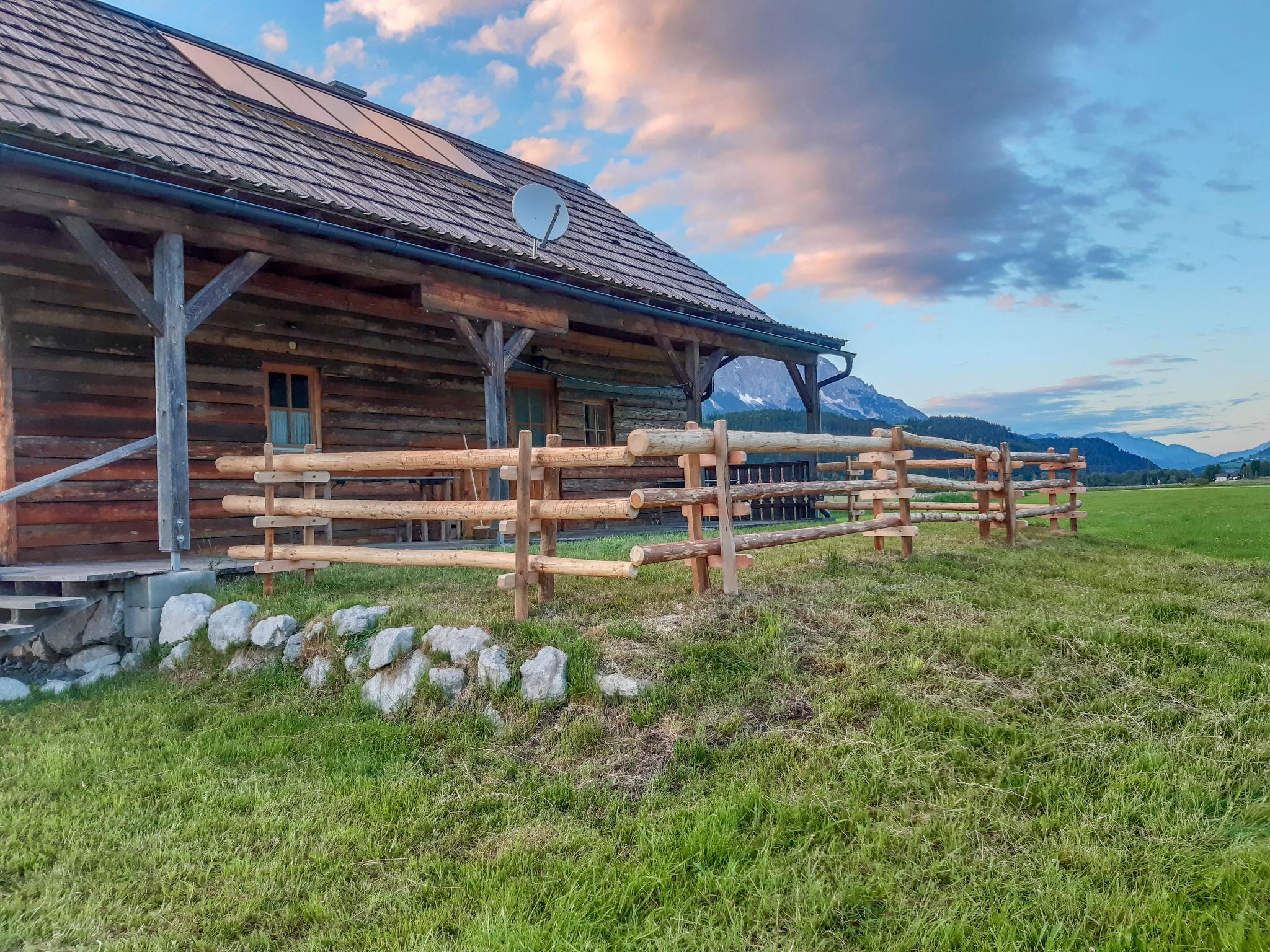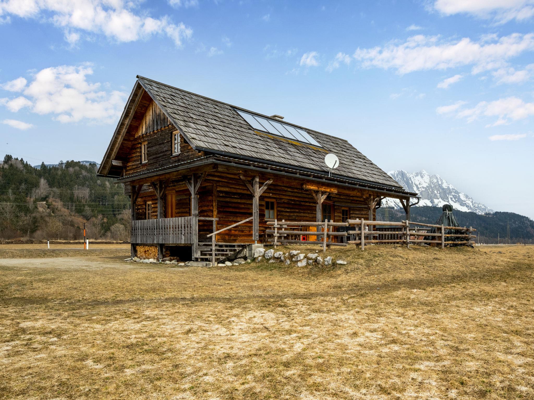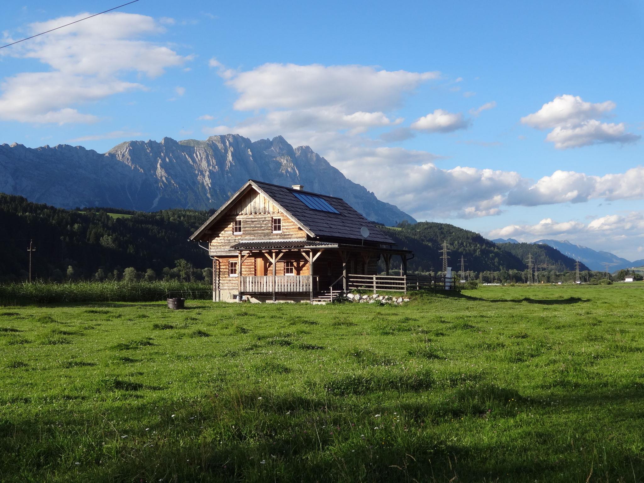 Cosy, rustic chalet "Steiners Blockhütte", surrounded by meadows. 500 m from the centre of Stein an der Enns, on the outskirts, 4.5 km from the centre of Öblarn, 23 km from the centre of Schladming, in a secluded, sunny position, 11 km from the lake, 11 km from the skiing area, in the countryside. Private: natural state property 3 ha with meadow. In the house: storage room for skis. Bread roll service. Parking on the premises. Shop 500 m, restaurant 1.3 km, bakery 1 km, café 1 km, bus stop 800 m, railway station "Stein an der Enns" 1 km, outdoor swimming pool 5 km, indoor swimming pool 5 km, bathing lake "Aich" 11 km. Mountain railway 11 km, ski lift 11 km, slopes 11 km. Well-known ski regions can easily be reached: Hauser Kaibling 15 km, Galsterberg/Kalteck 8 km. Local sale of farm products.